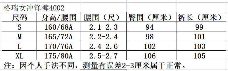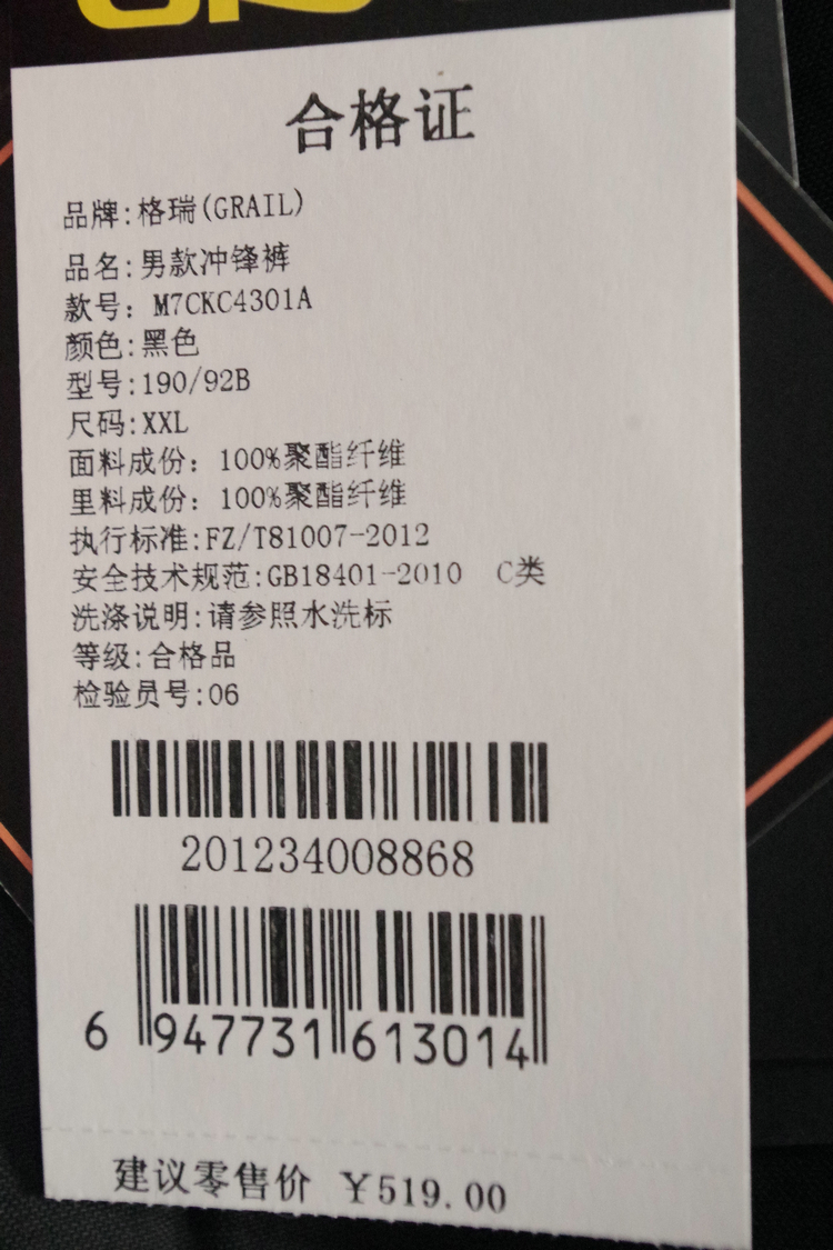 ***下为国内知名品牌格瑞男款冲锋裤4301,高端防水透气面料,内衬反绒布,适合秋冬穿着。精细做工,尺码偏大一码。