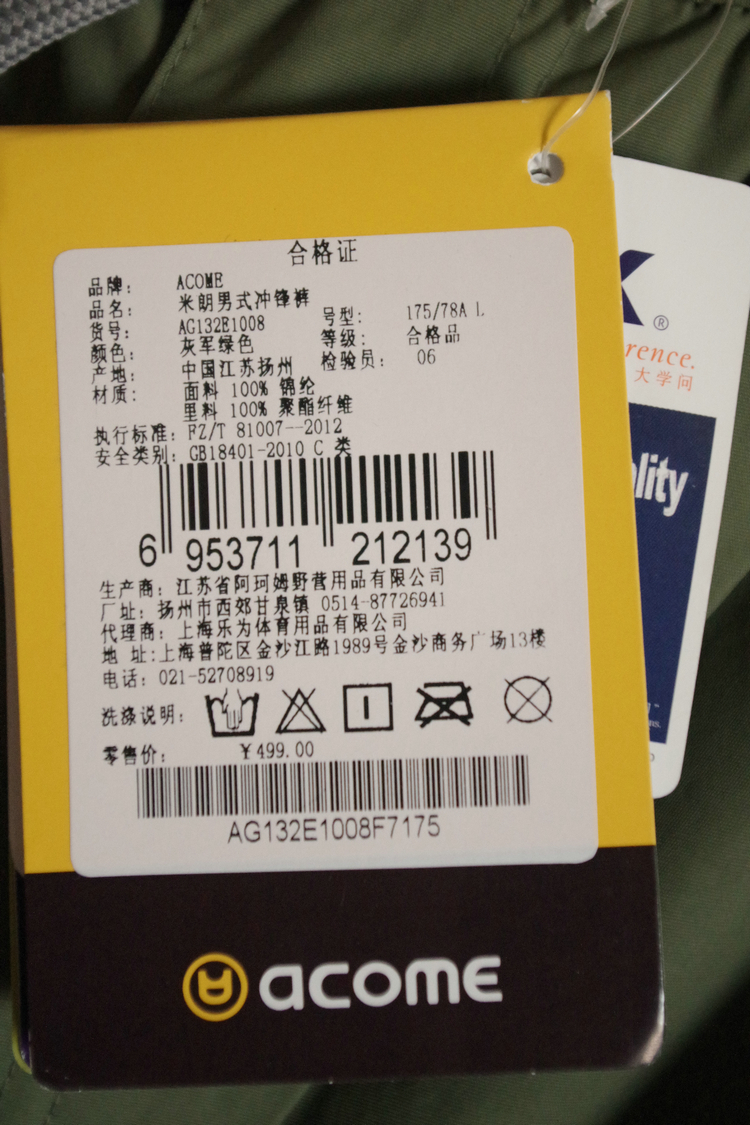 ***下为国内知名品牌阿珂姆女款冲锋裤劳拉,为上款的情侣款,高端防水透气面料,YKK主拉链,系带设计,内衬薄布,,4个拉链口袋。做工超好。宽松直筒裤,尺码偏大一码。轻微瑕疵。