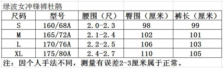 3XL(180/86A)腰围2.3-2.6尺    臀围112厘米   裤长104厘米