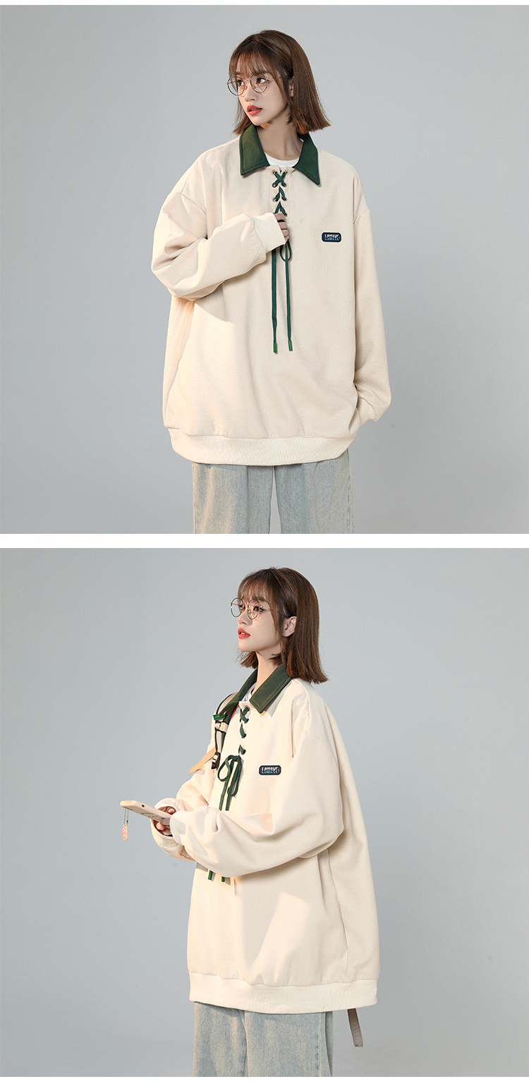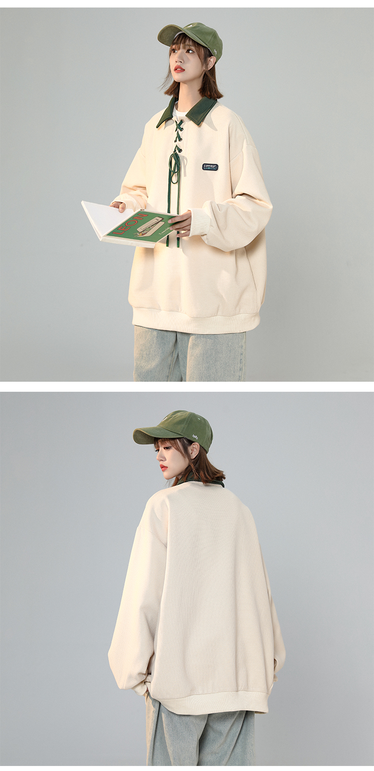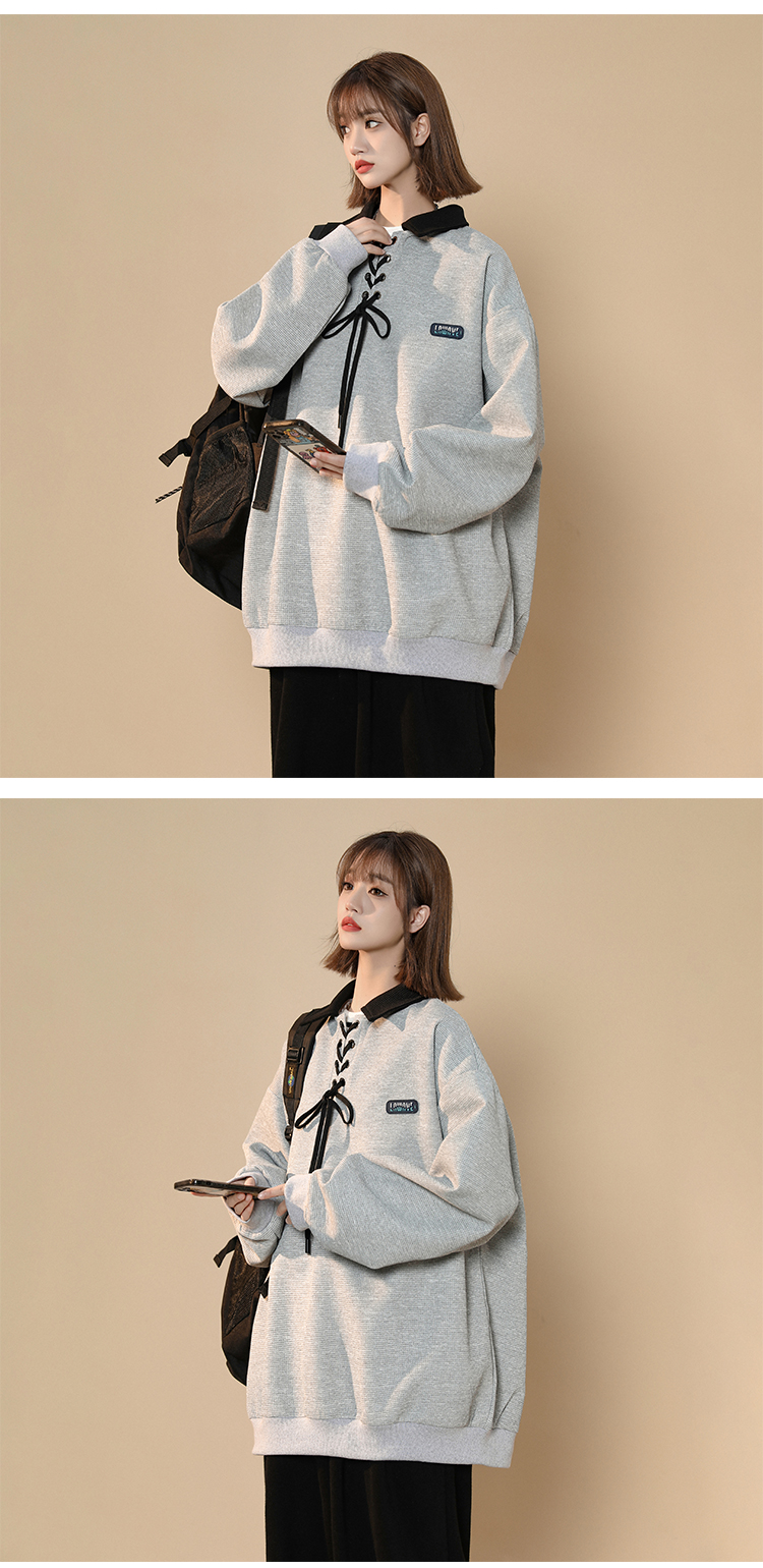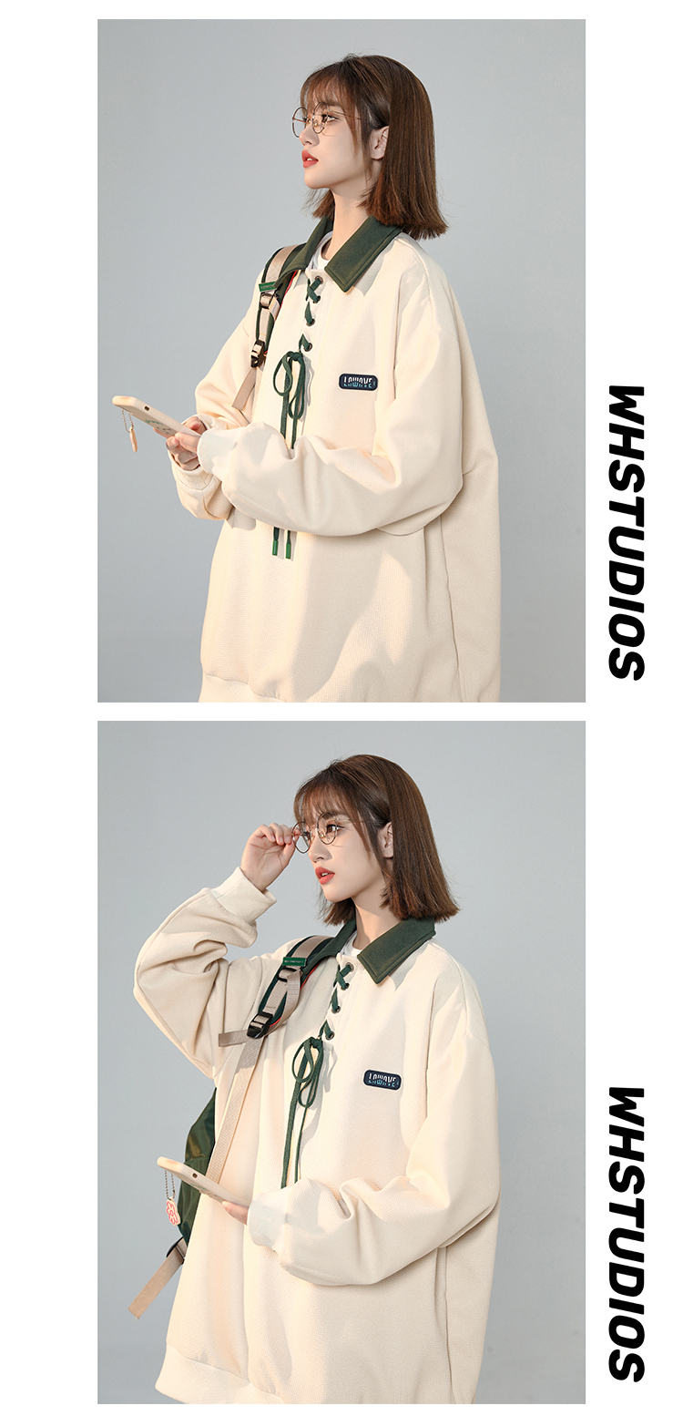 美式復古polo領衛衣女春季設計感小眾日系綁帶上衣2023新正肩外套