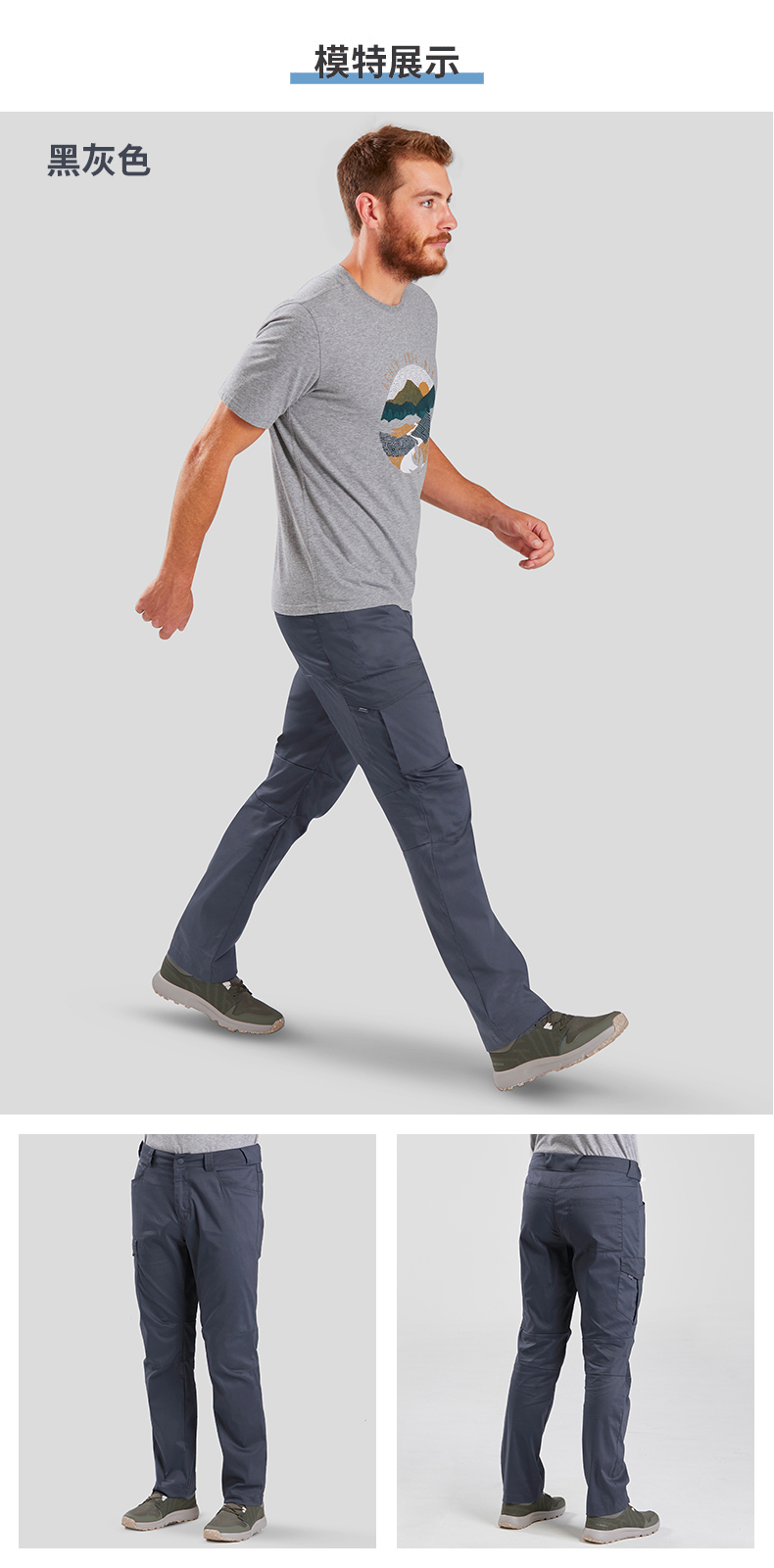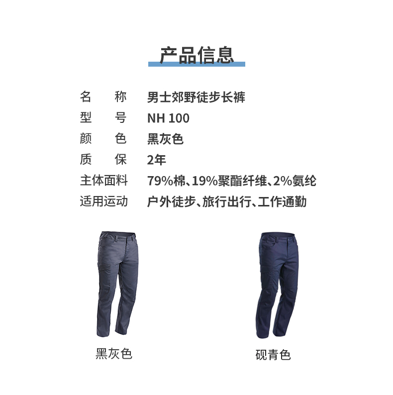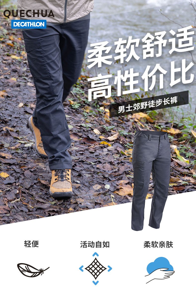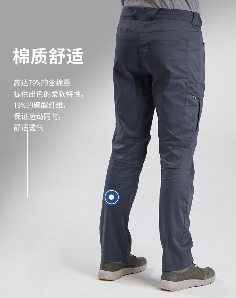 迪卡儂官方旗艦店褲子男戶外休閒褲透氣彈力速乾棉長褲工裝褲ODT2