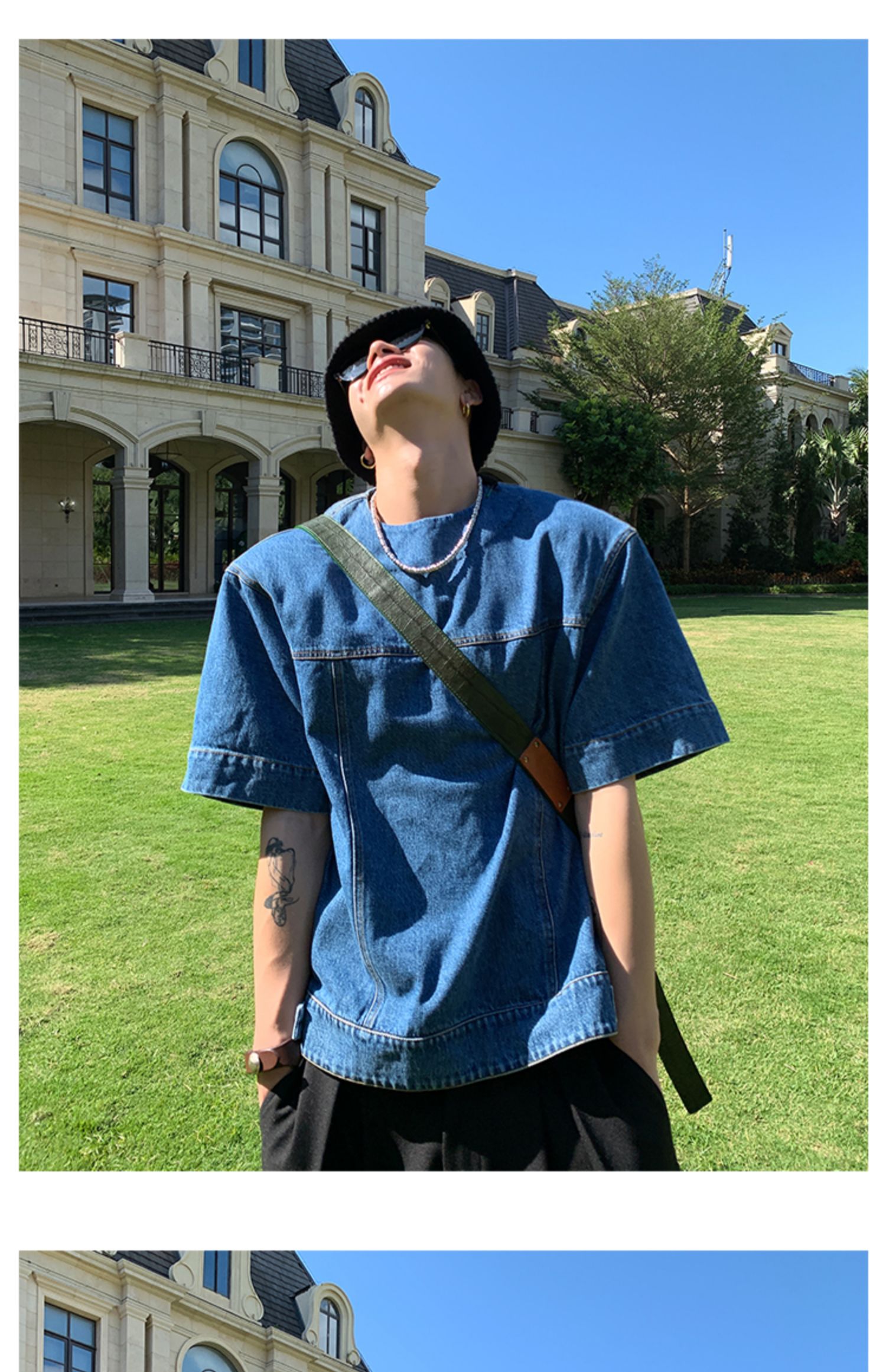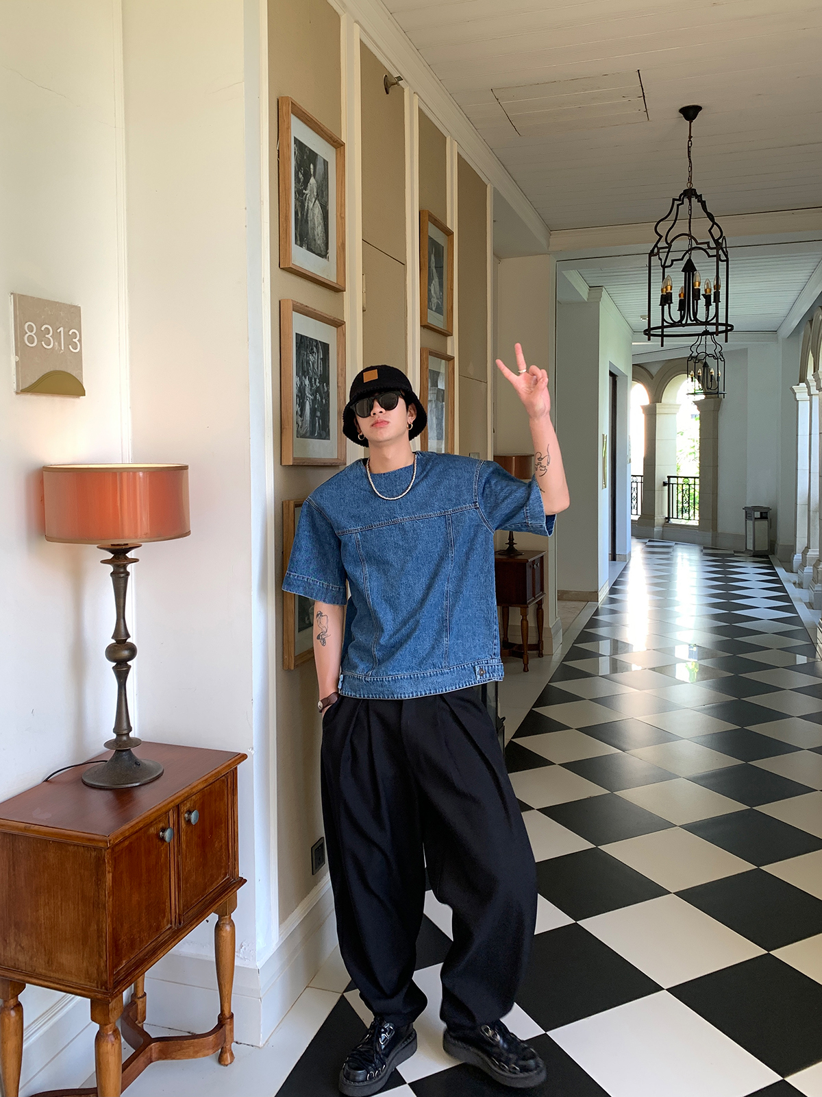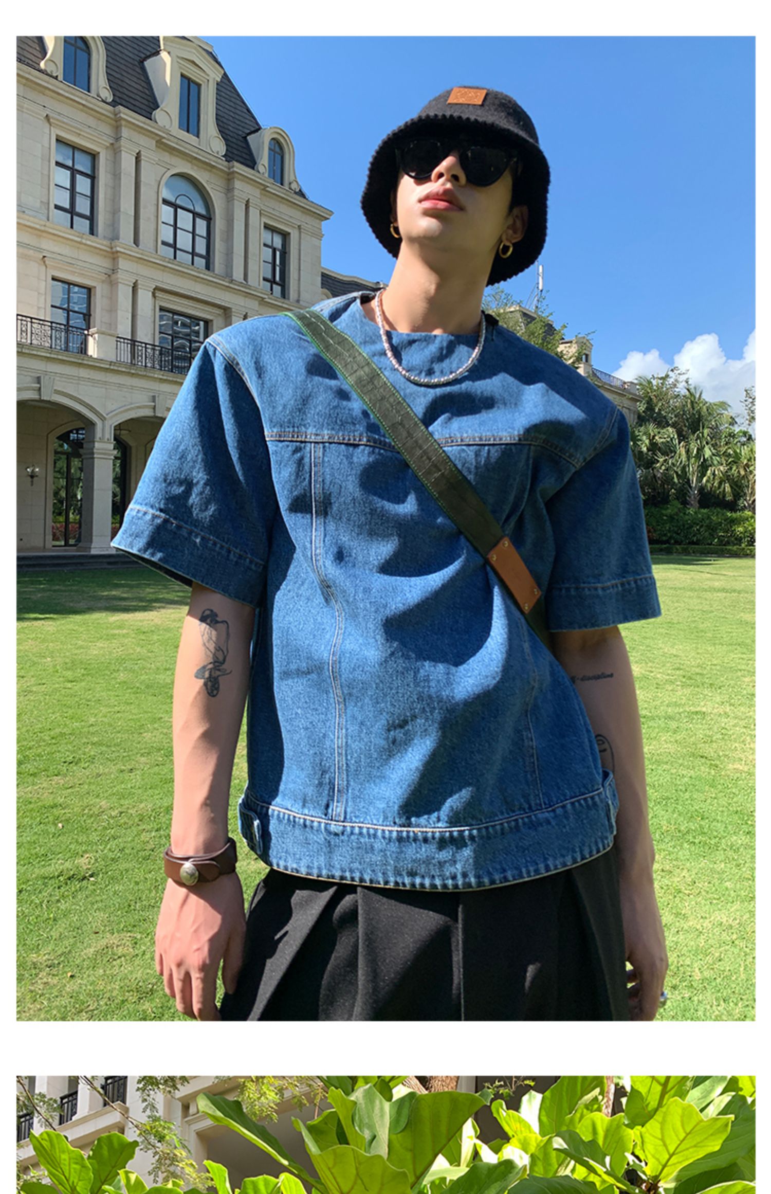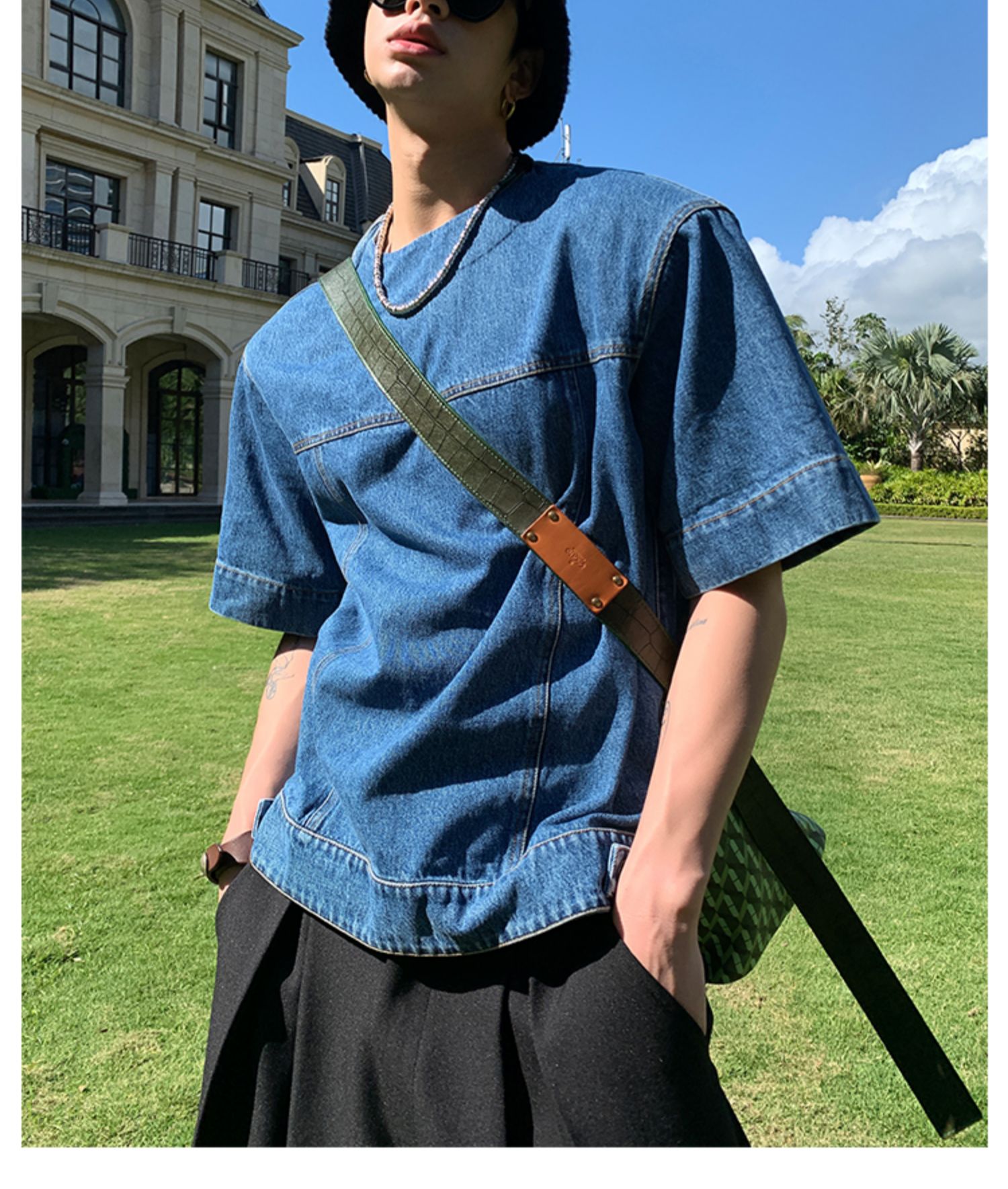 ESC MAN STUDIO/自制 春夏衣櫃更新單品 高級感短袖T恤牛仔上衣