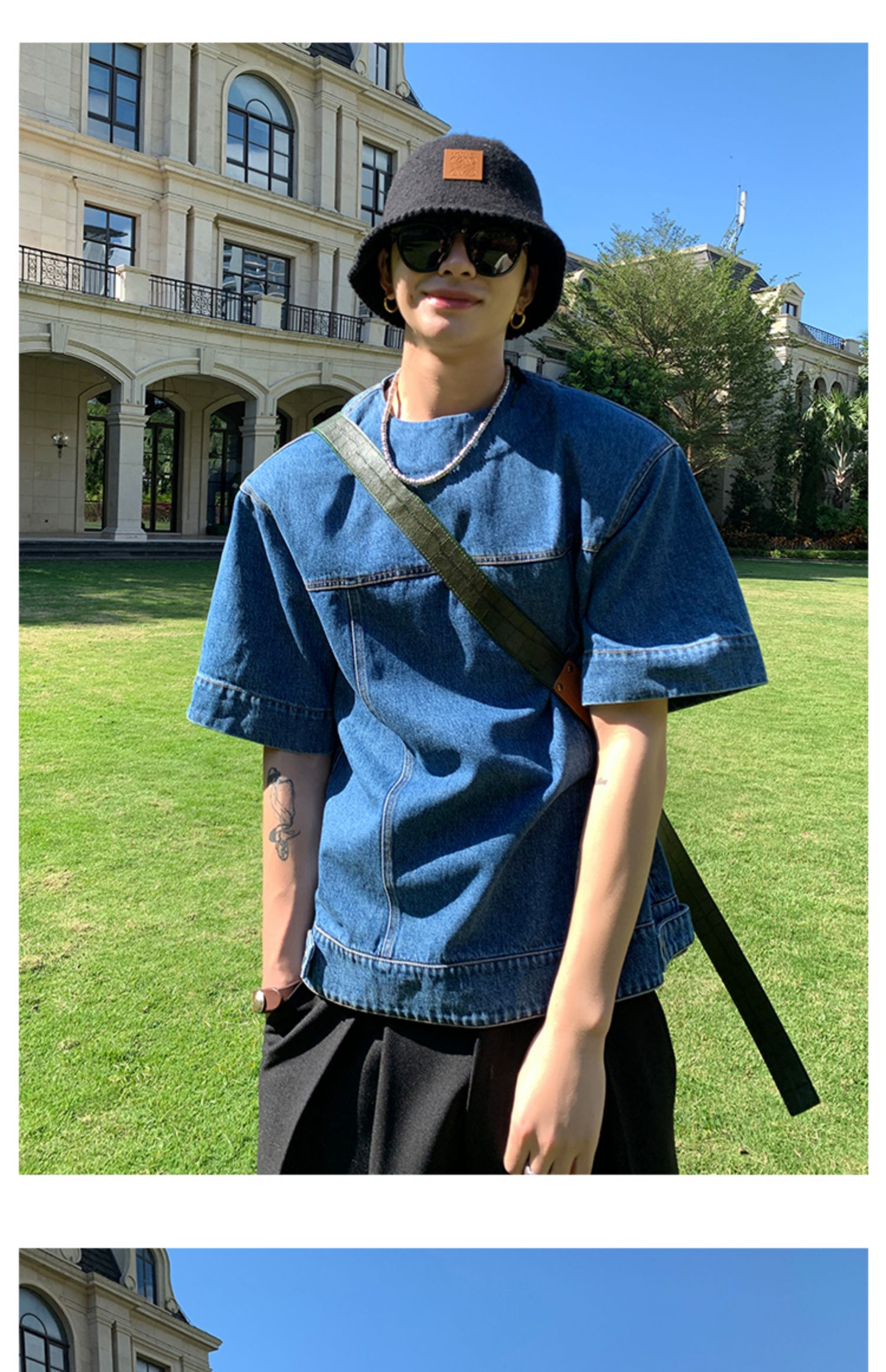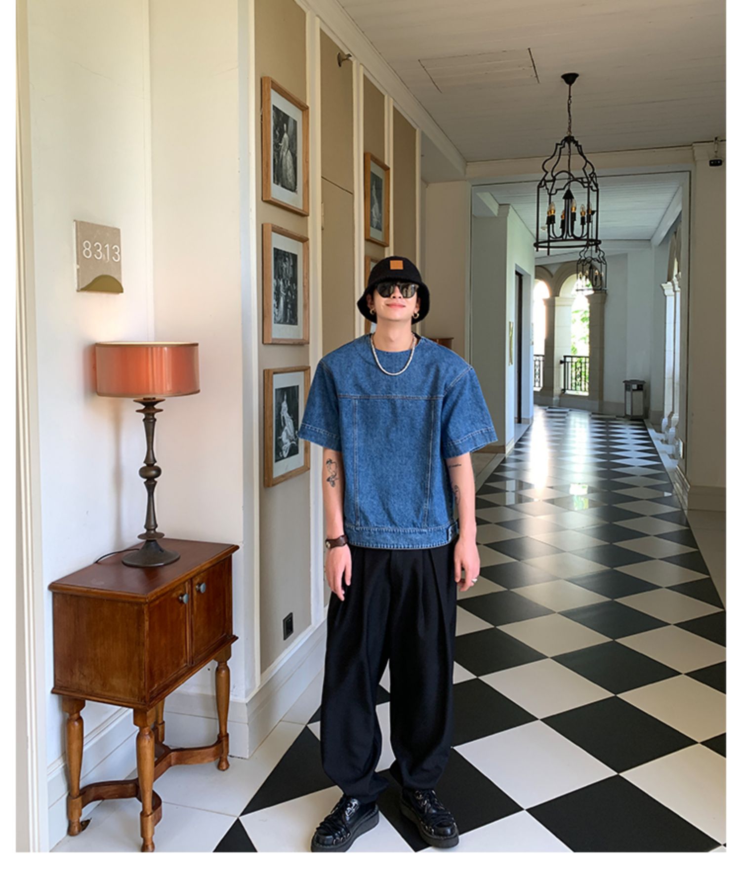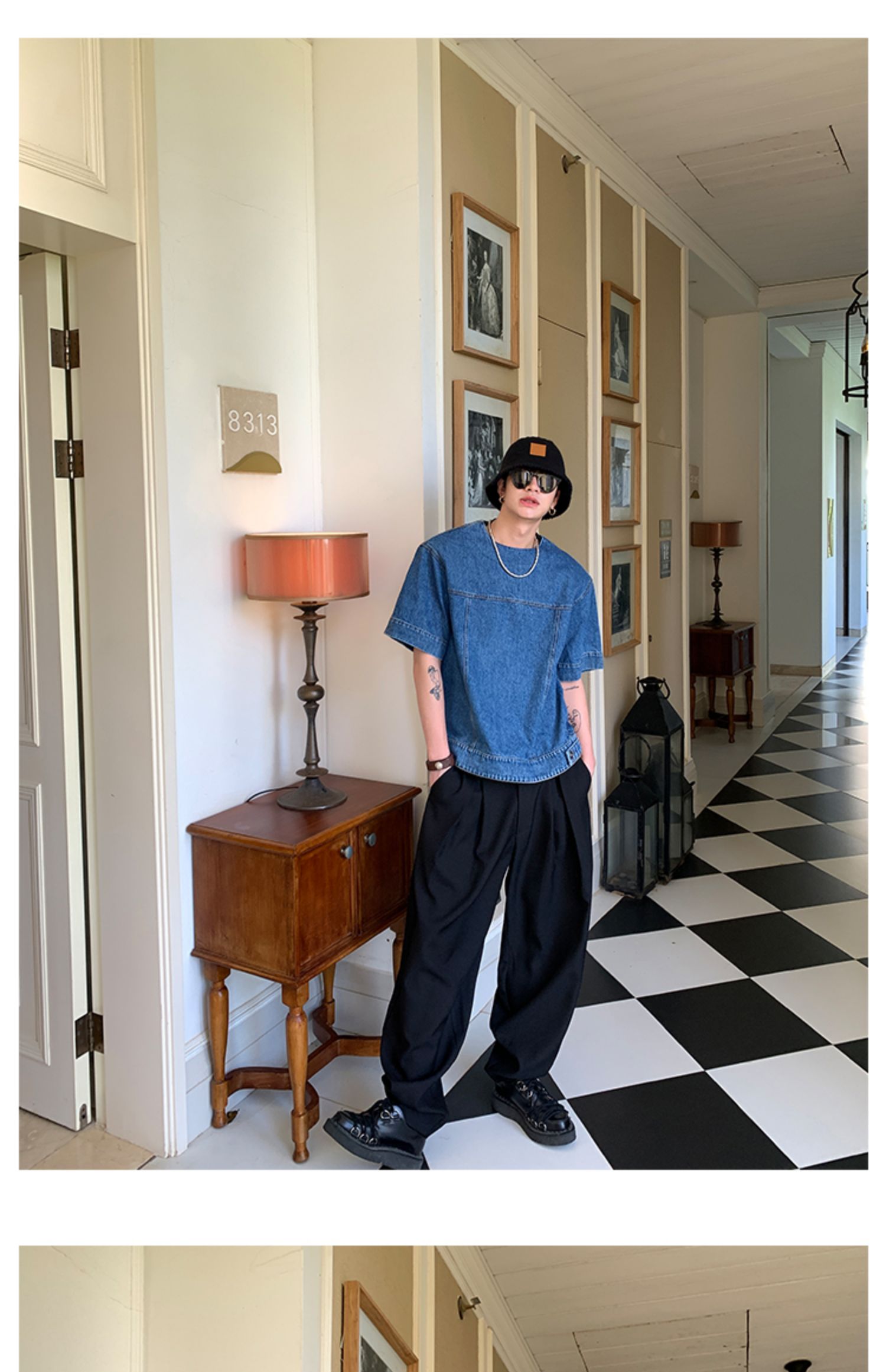 ESC MAN STUDIO/自制 春夏衣櫃更新單品 高級感短袖T恤牛仔上衣