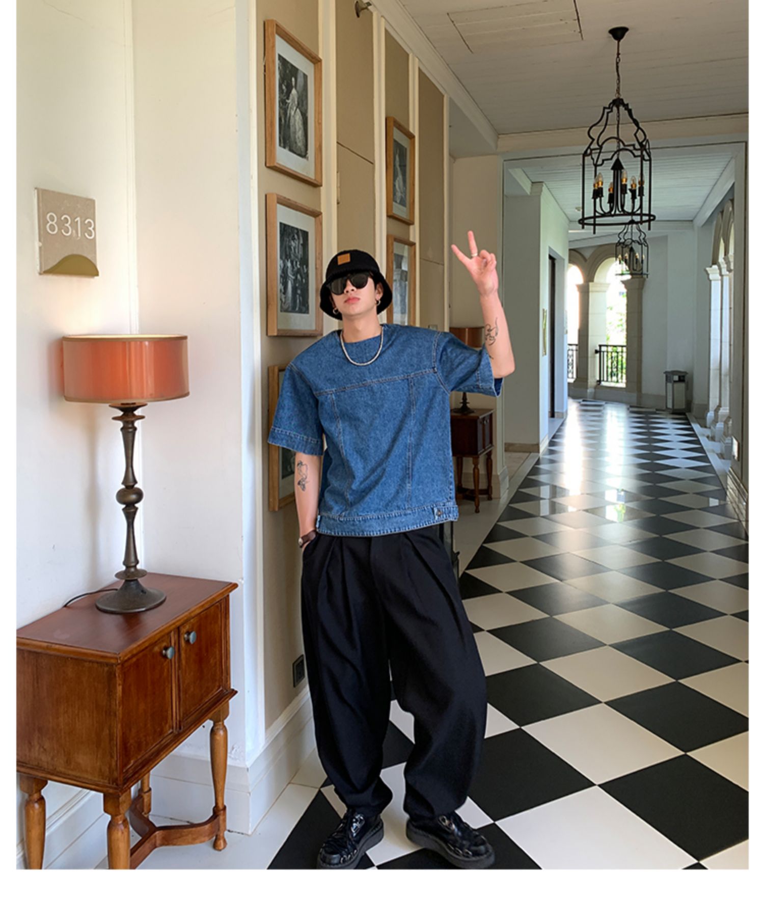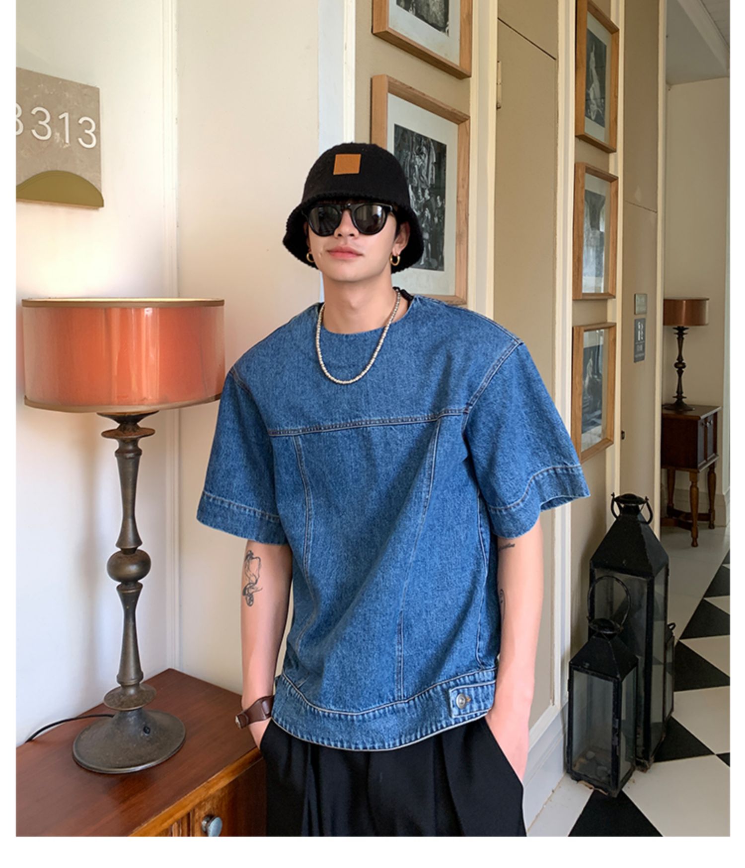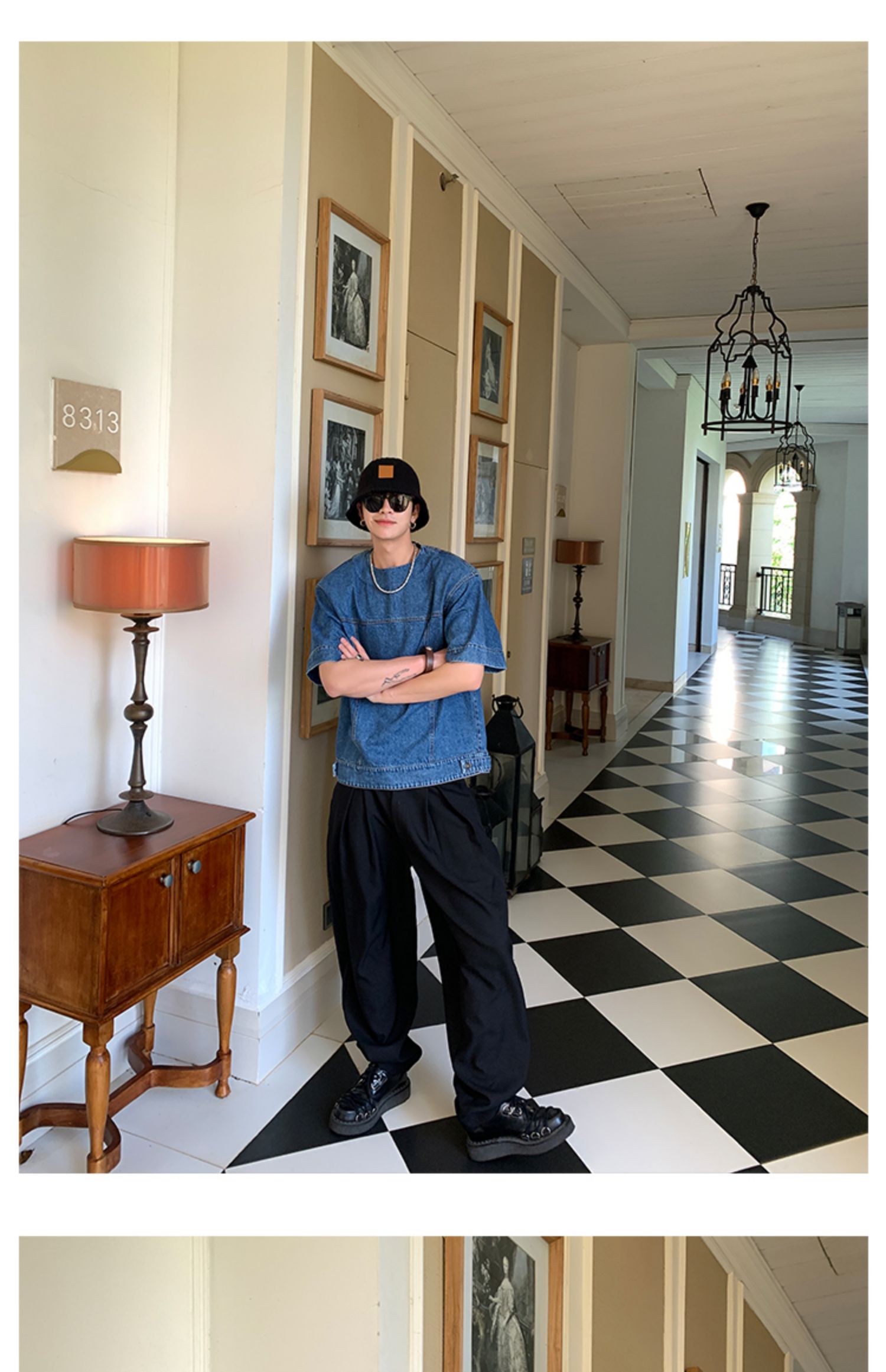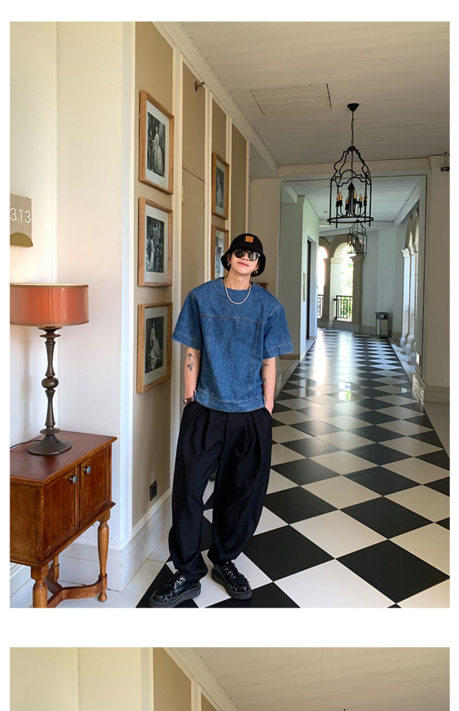 ESC MAN STUDIO/自制 春夏衣櫃更新單品 高級感短袖T恤牛仔上衣