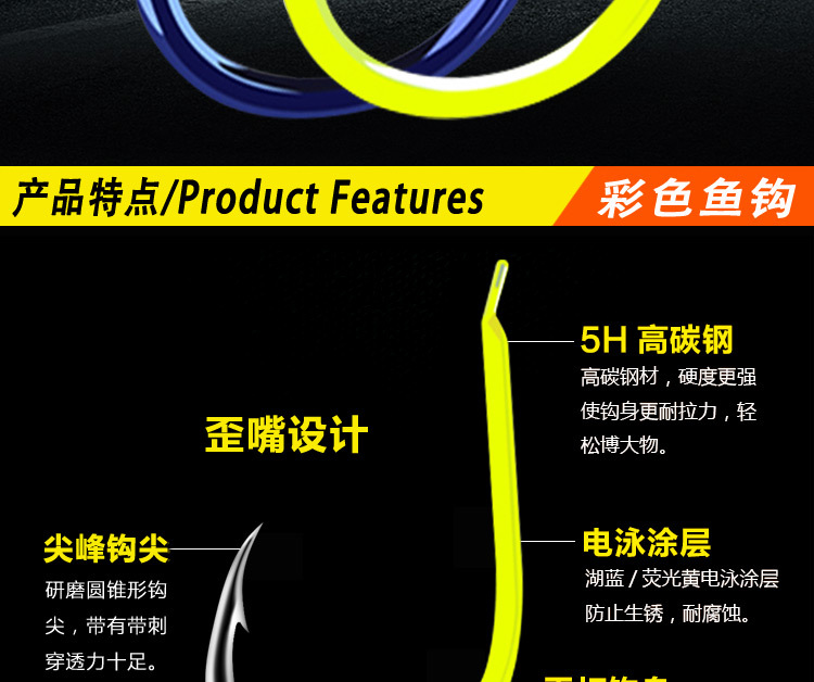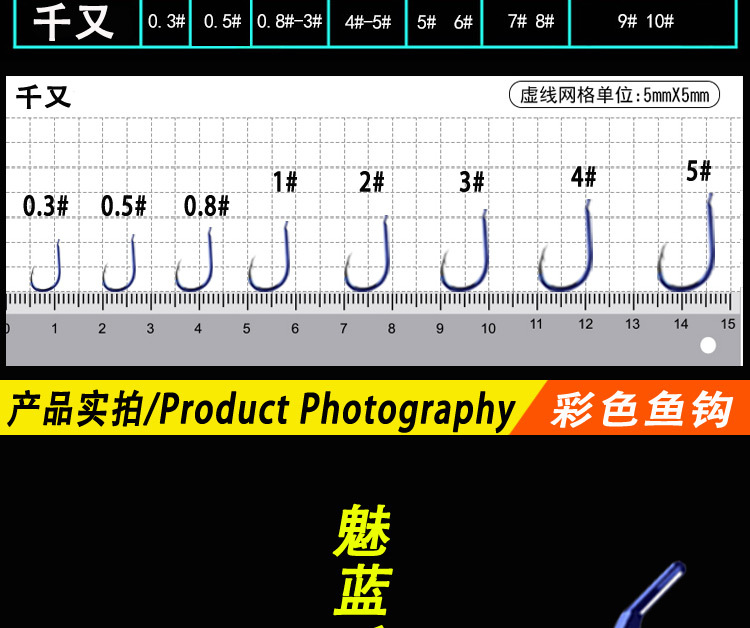 彩色千又魅蓝荧光黄千又有倒刺鲫鱼鲤鱼伊豆伊势尼歪嘴散装鱼钩