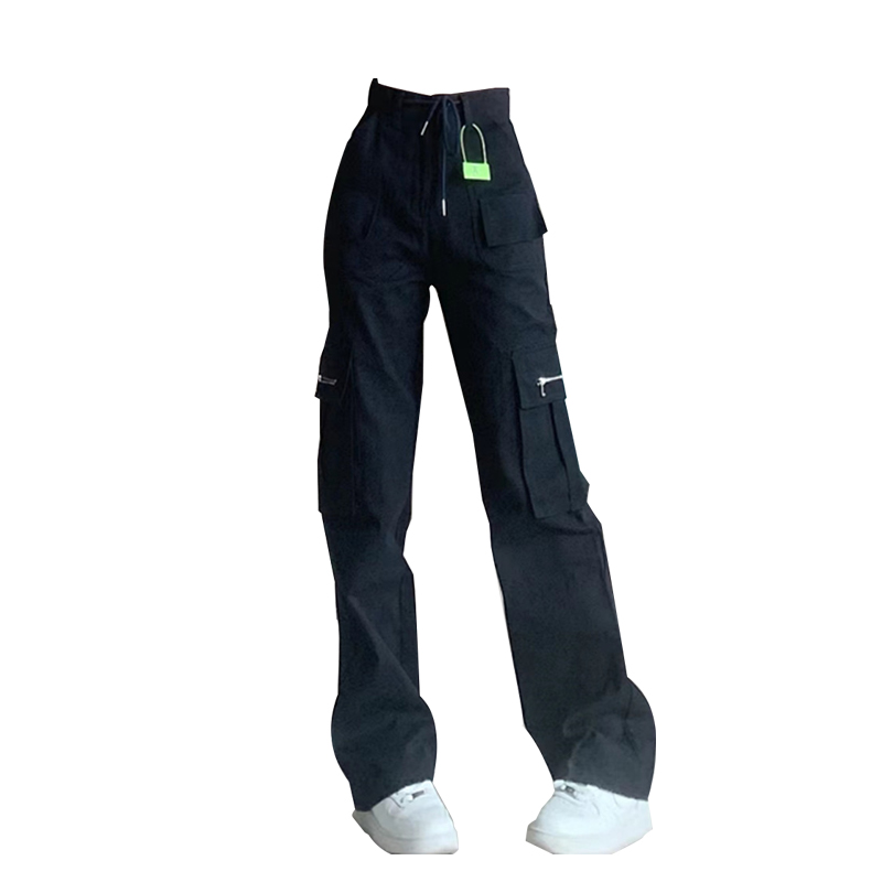 休閒百搭美式工裝褲2023年新款夏季薄款高腰直筒窄版闊腿牛仔褲女