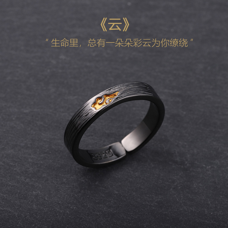 DAMAI 《祥雲》戒指ins潮男輕奢食指戒黑色小眾簡約原創設計戒指