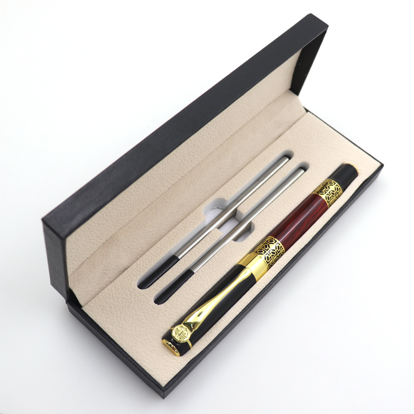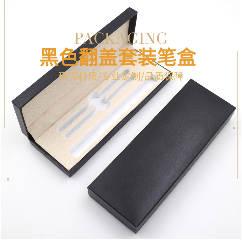 黑色翻盖套装签字笔盒广告钢笔盒可定logo金属包装盒现货礼品盒