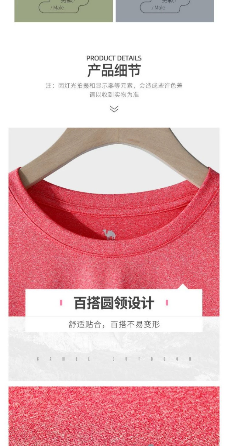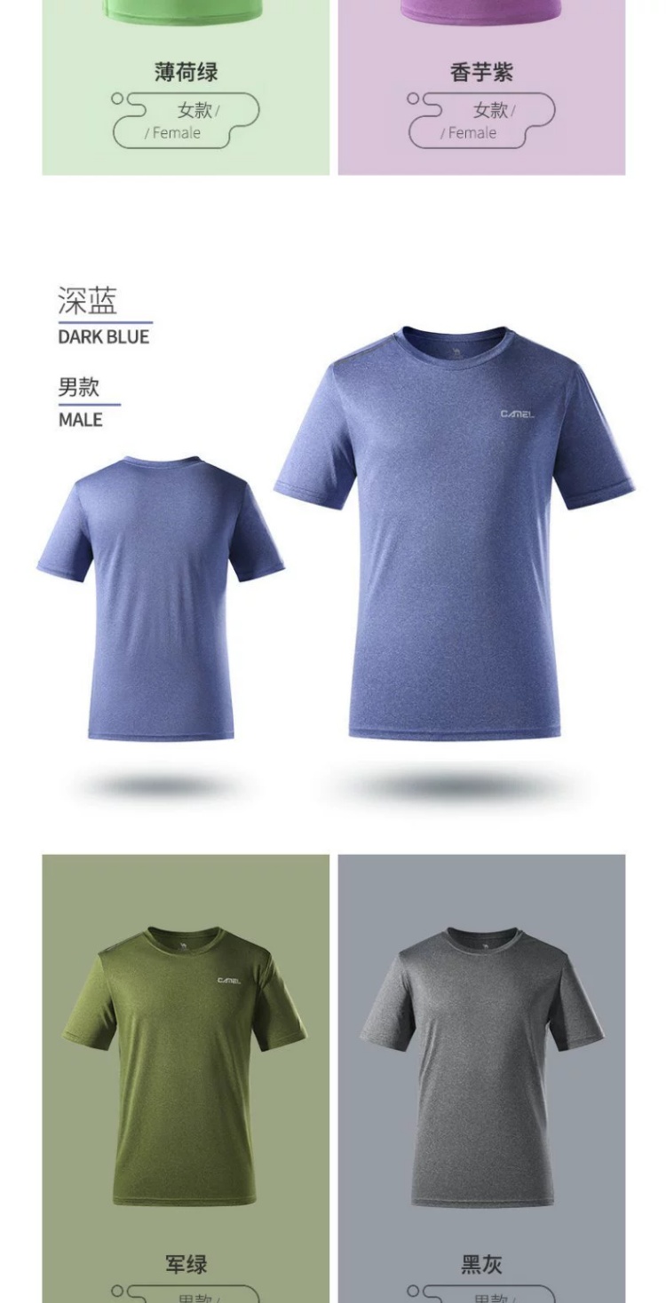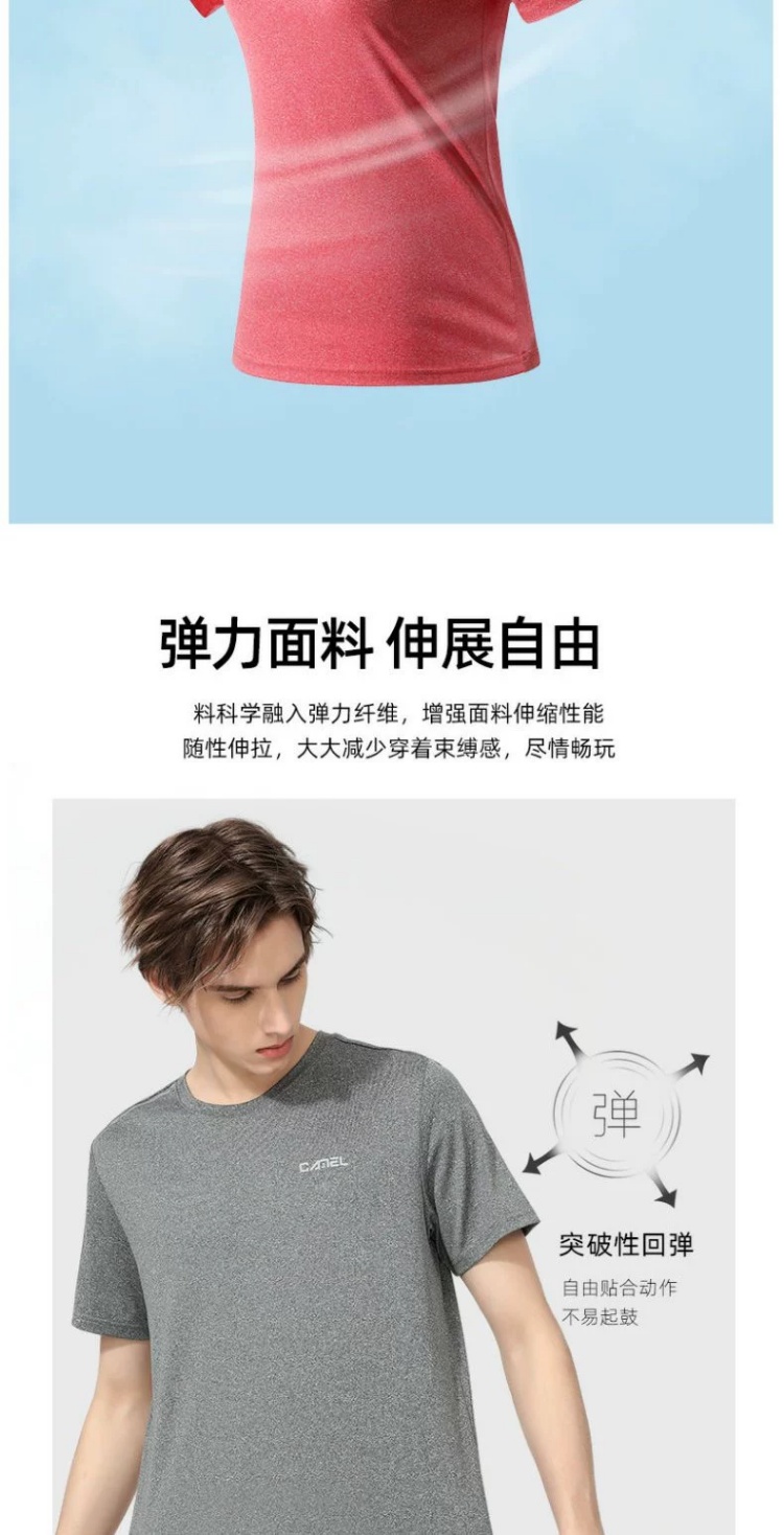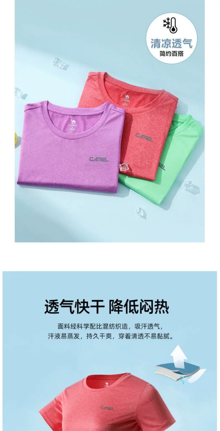 駱駝戶外速乾T恤短袖女夏薄款運動服瑜伽健身透氣跑步寬鬆男圓領