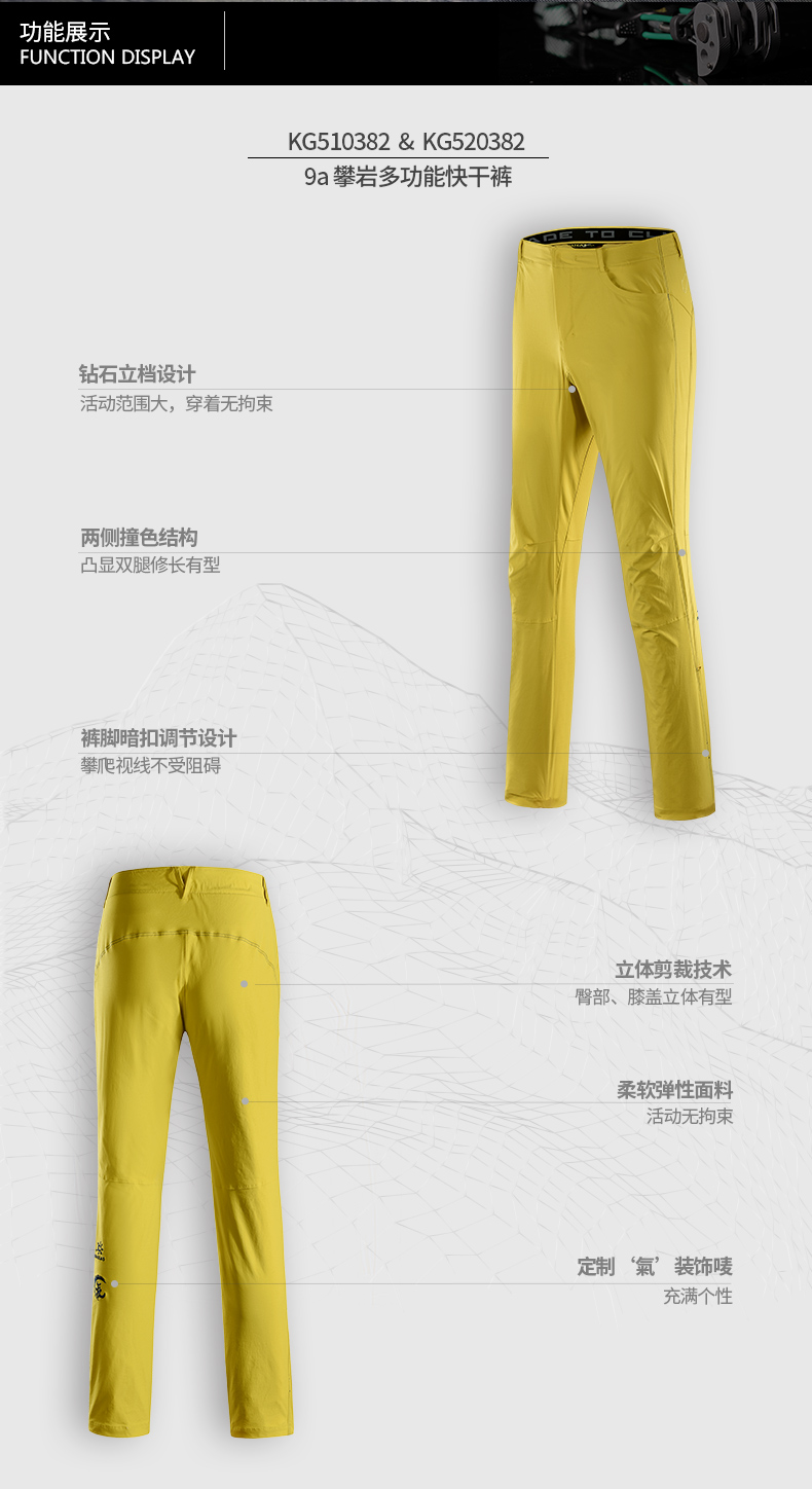 凱樂石戶外運動男女款徒步登山快乾透氣耐磨9A攀巖多功能速乾長褲