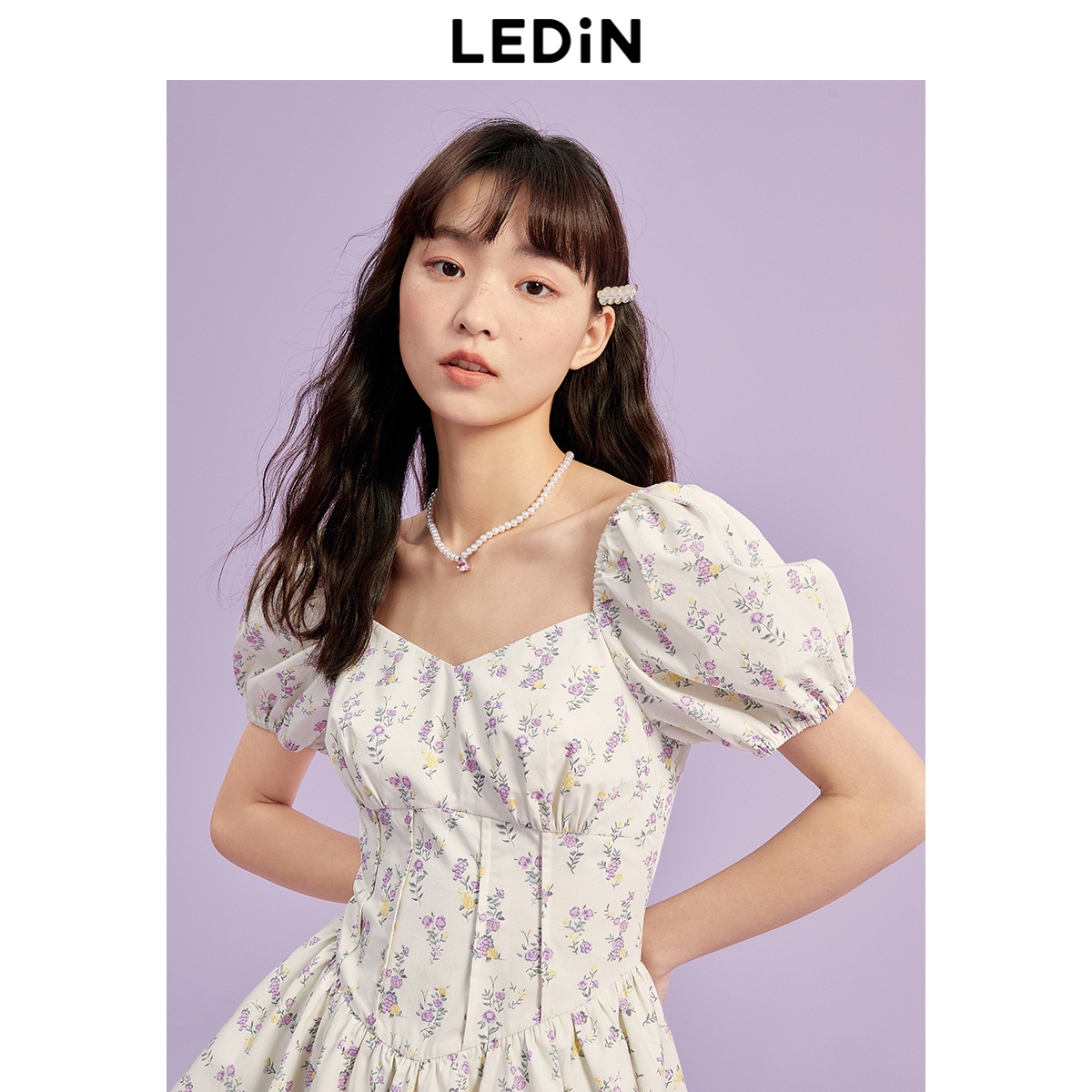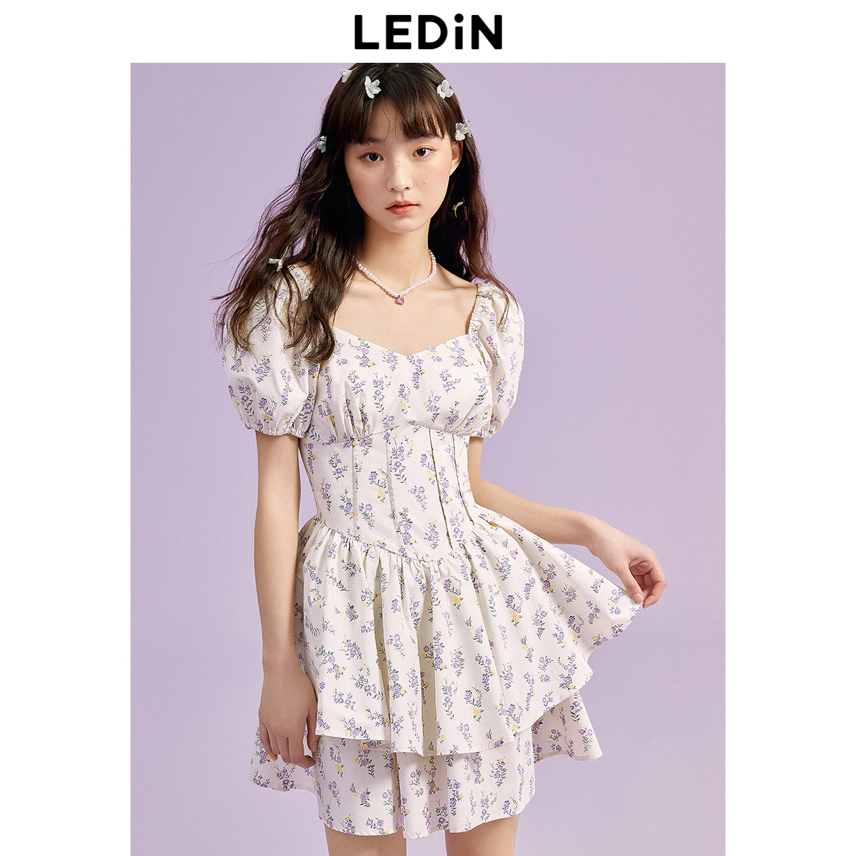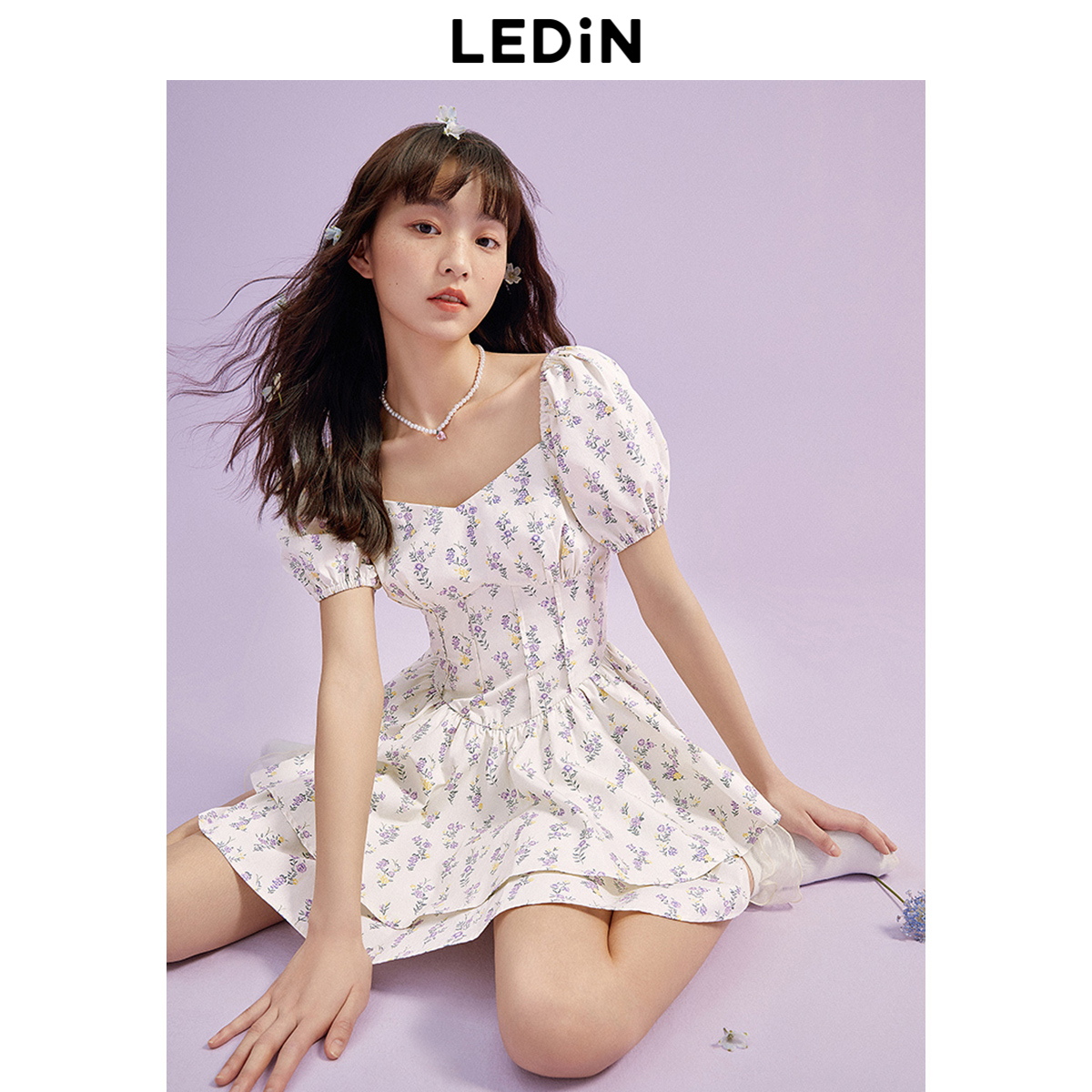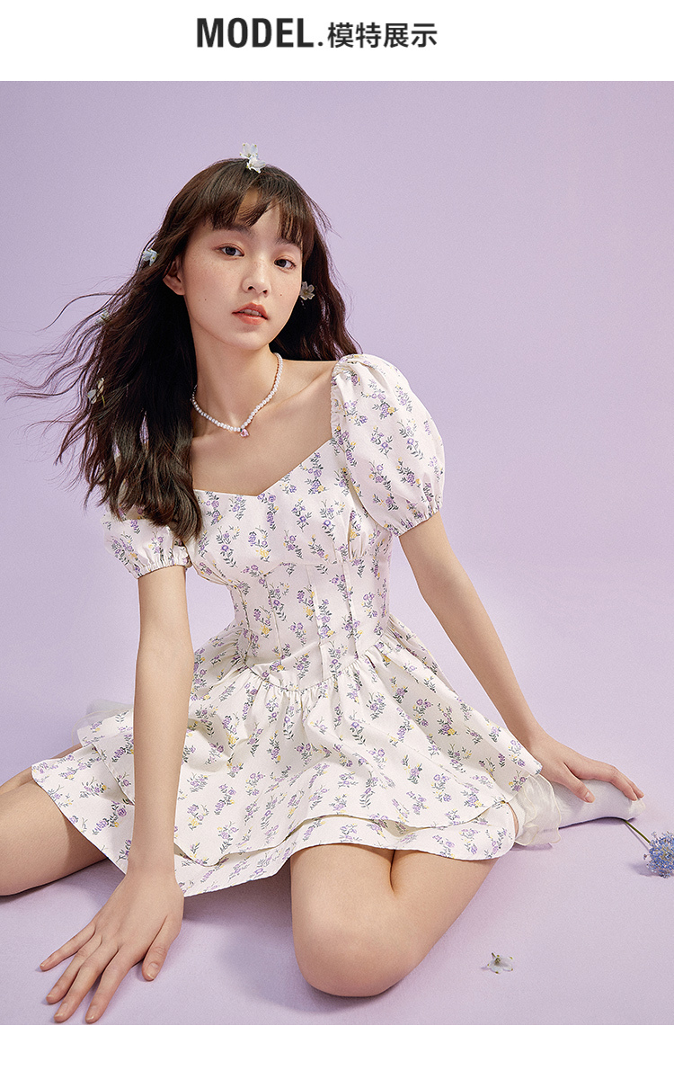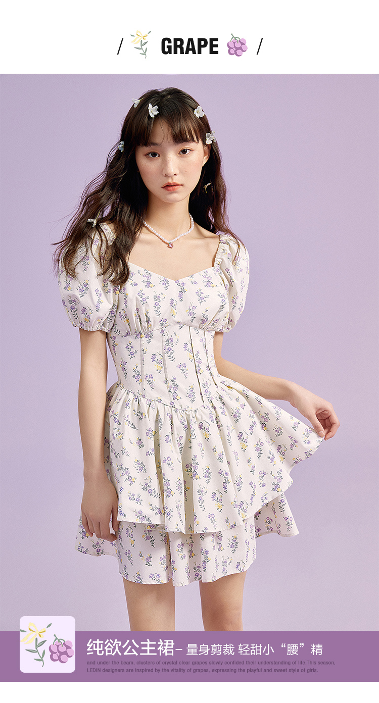 樂町芝芝萄萄洋裝夏季新款魚骨收腰初春法式茶歇碎花裙子吊帶裙