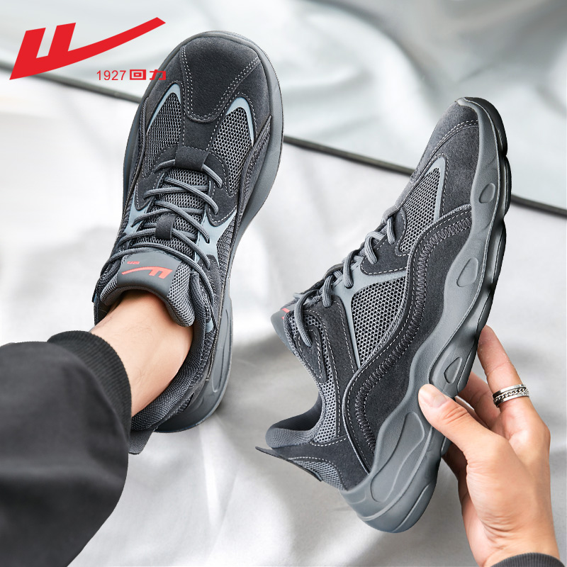 回力男鞋運動鞋男款2023新款夏季黑色休閒鞋子男士網面透氣跑步鞋