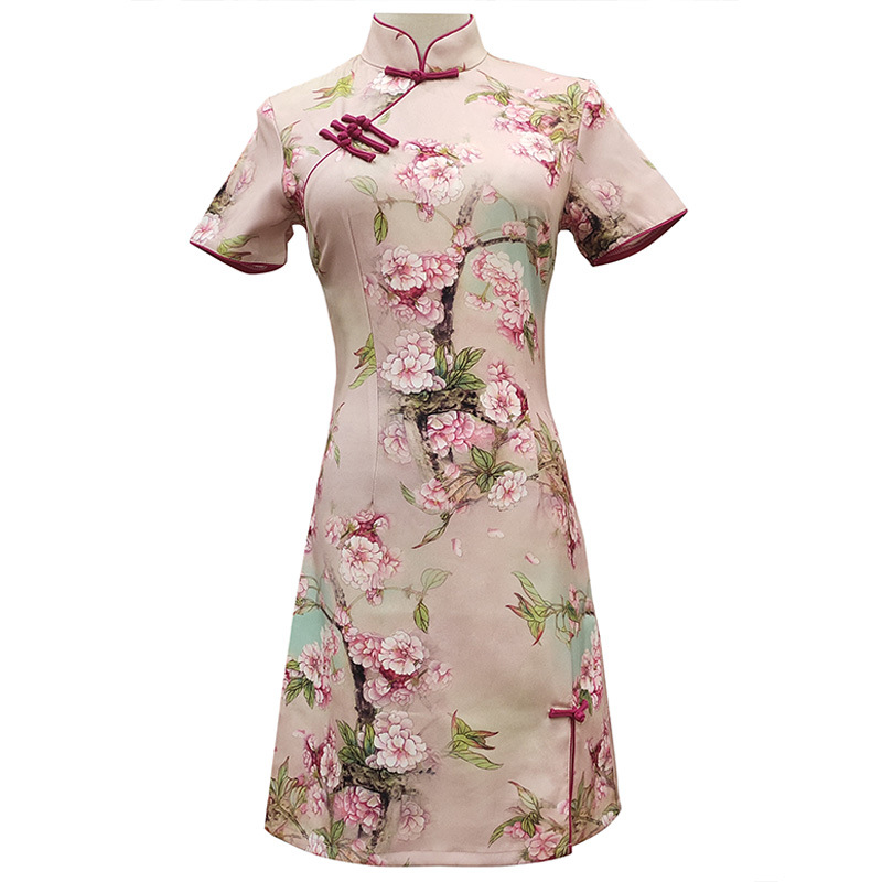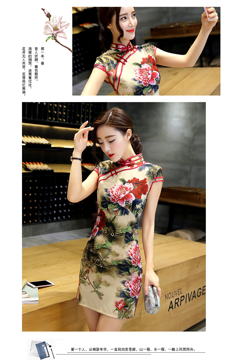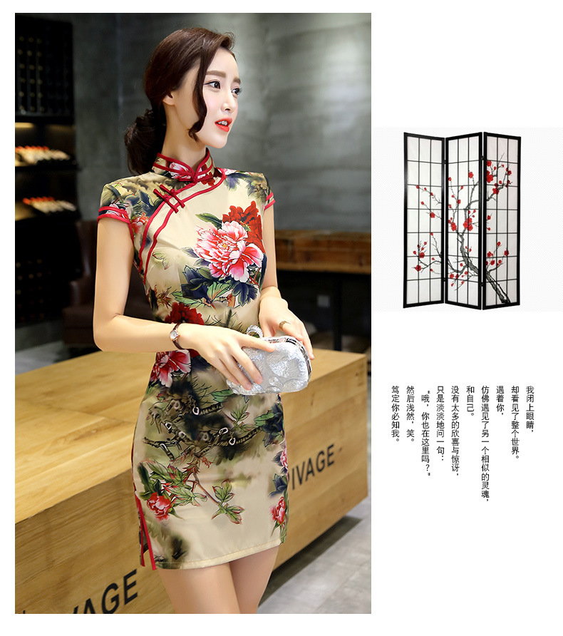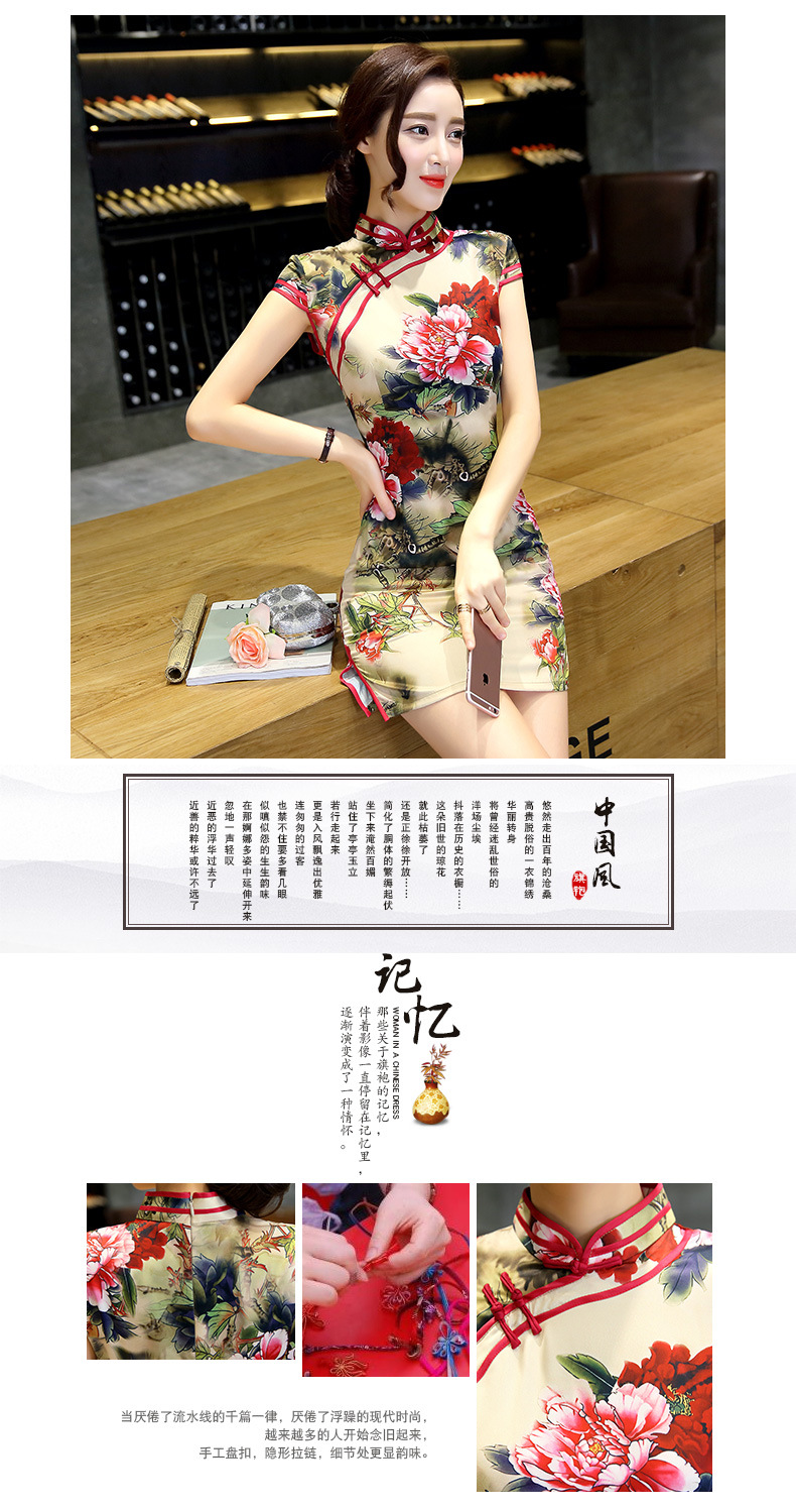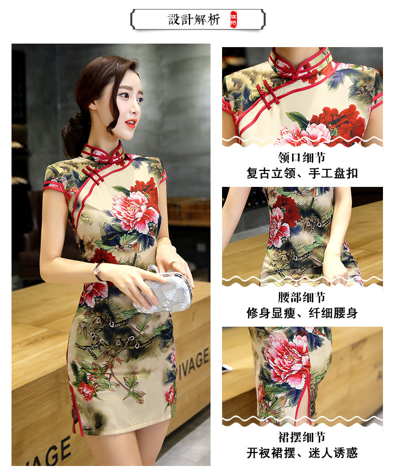短款丝绸旗袍新款改良气质中国风短裙时尚老上海修身日常旗袍