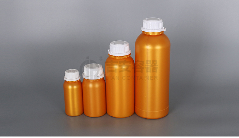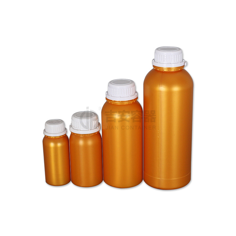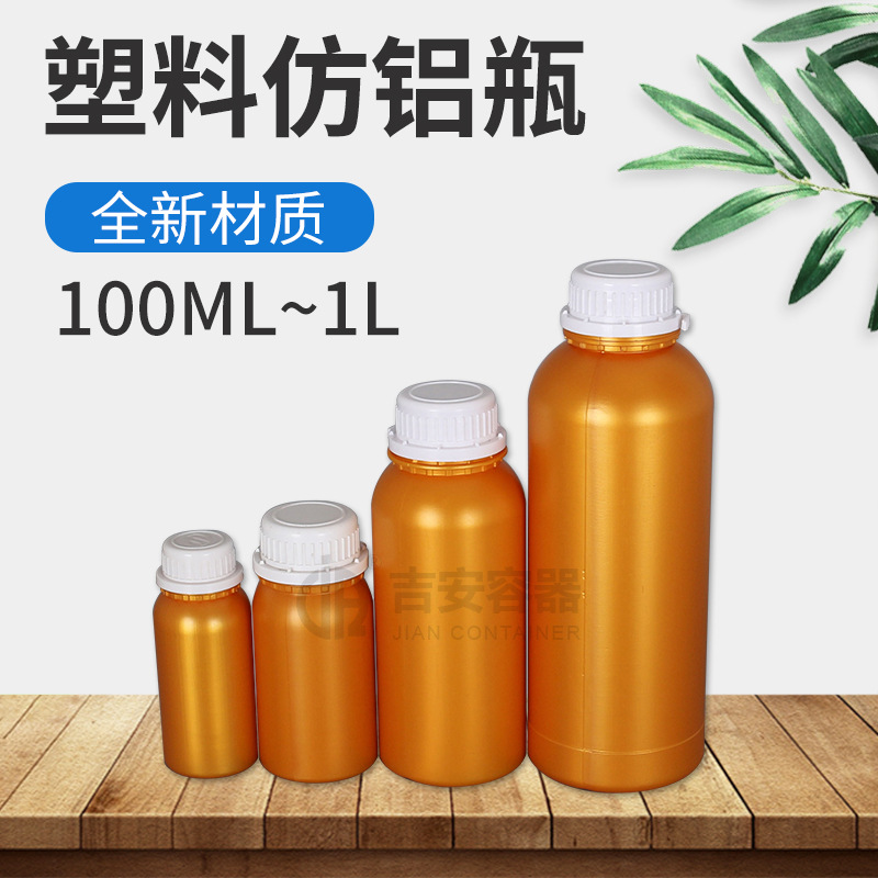 厂家批发100/200/500ml高阻隔瓶1KG塑料仿铝瓶1L金黄珠光瓶防盗盖