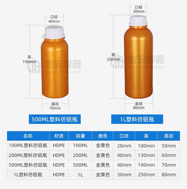 规格 1L塑料仿铝瓶,200ML塑料仿铝瓶,500ML塑料仿铝瓶,100ML塑料仿铝瓶