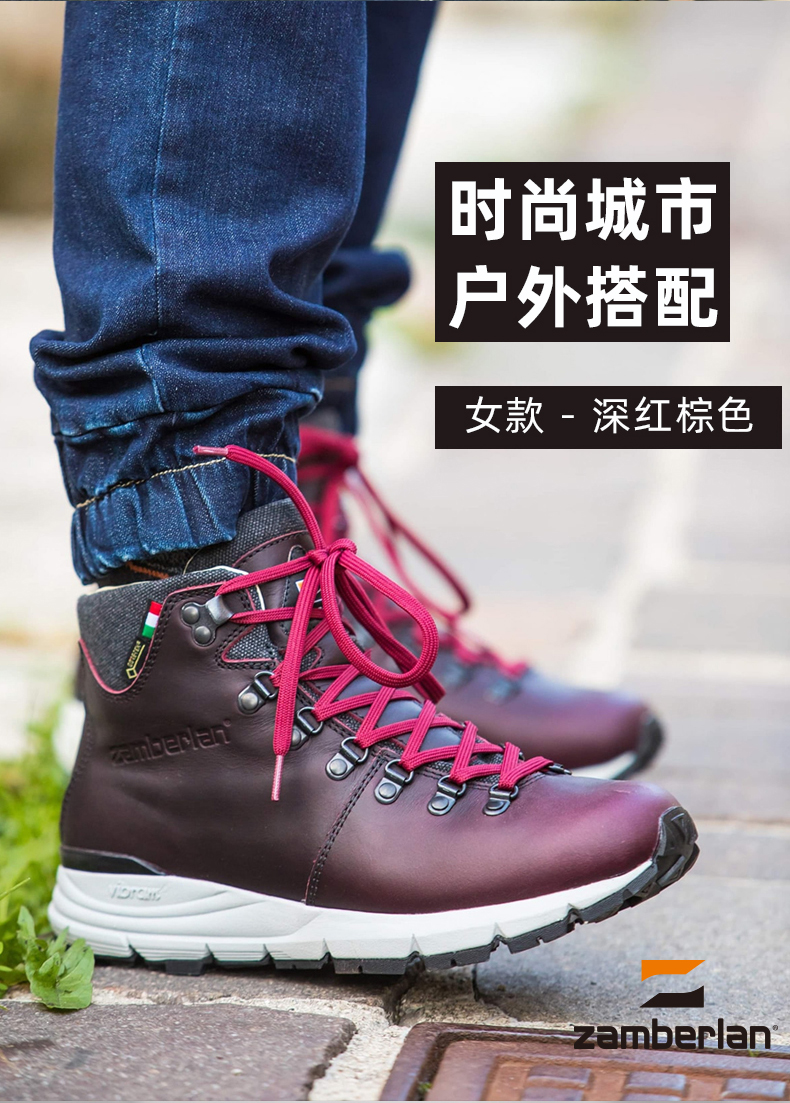 Zamberlan贊貝拉戶外徒步鞋女款康奈爾低幫休閒戶外鞋 322深紅棕