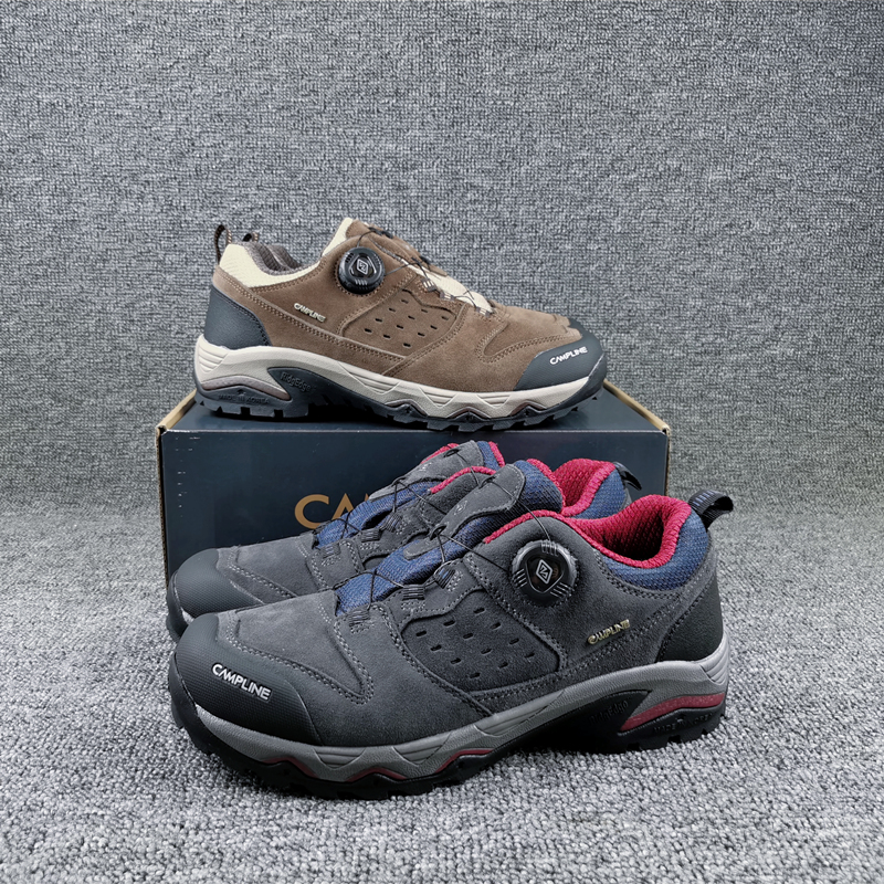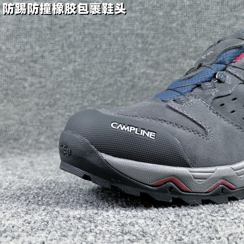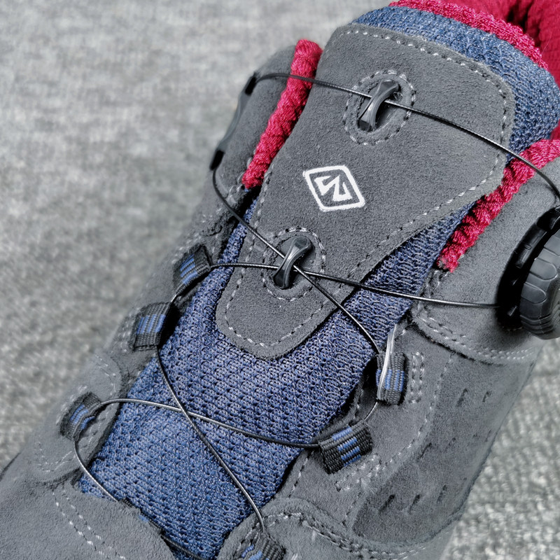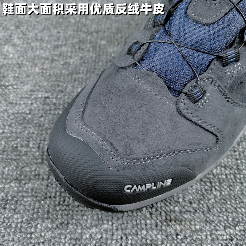 鞋面大面积采用反绒牛皮材质 旋钮系带 非常便捷