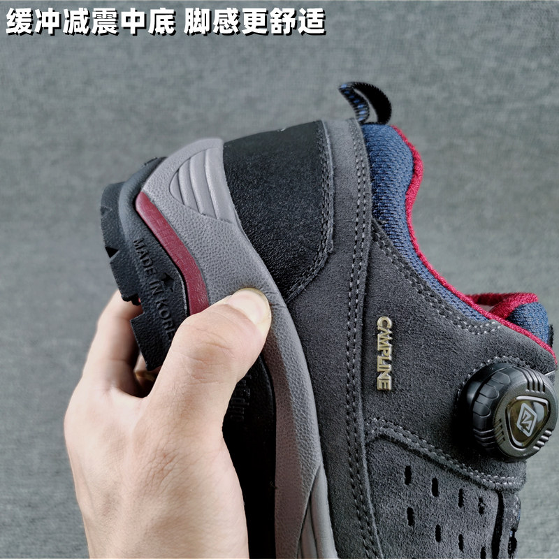 出口韓國反絨皮登山鞋男女旋鈕戶外徒步鞋減震耐磨山地防滑越野鞋
