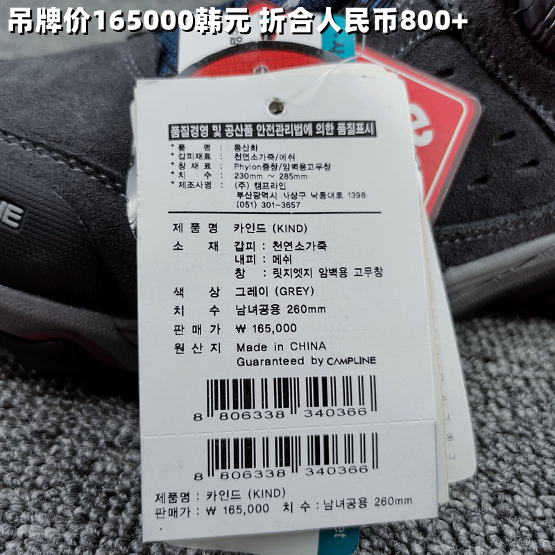 吊牌价格165000韩元 折合下来人民币差不多800+