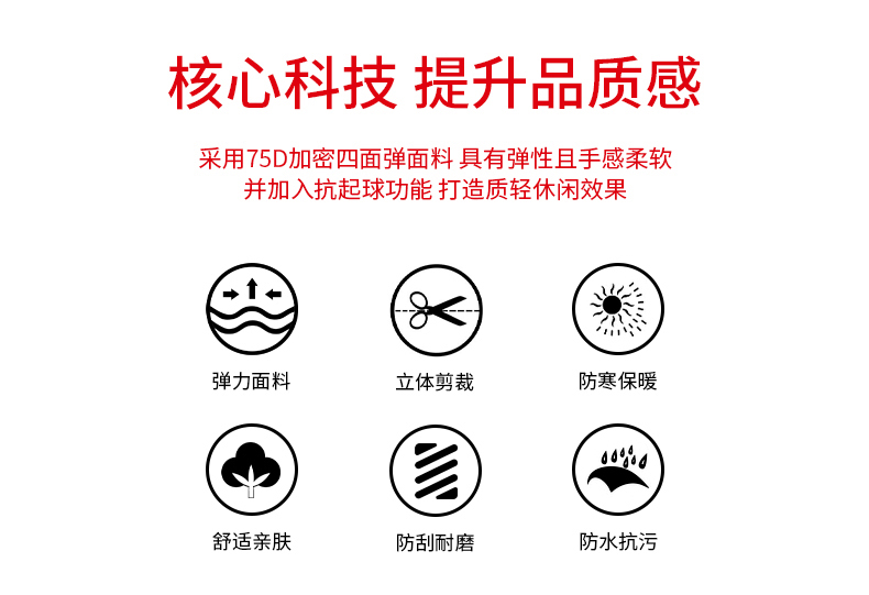 主要功能 防水,防風,透氣,耐磨,保暖,速乾