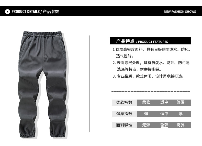 23春季新款兒童戶外防水透氣沙漠防風徒步登山褲中大童單層衝鋒褲