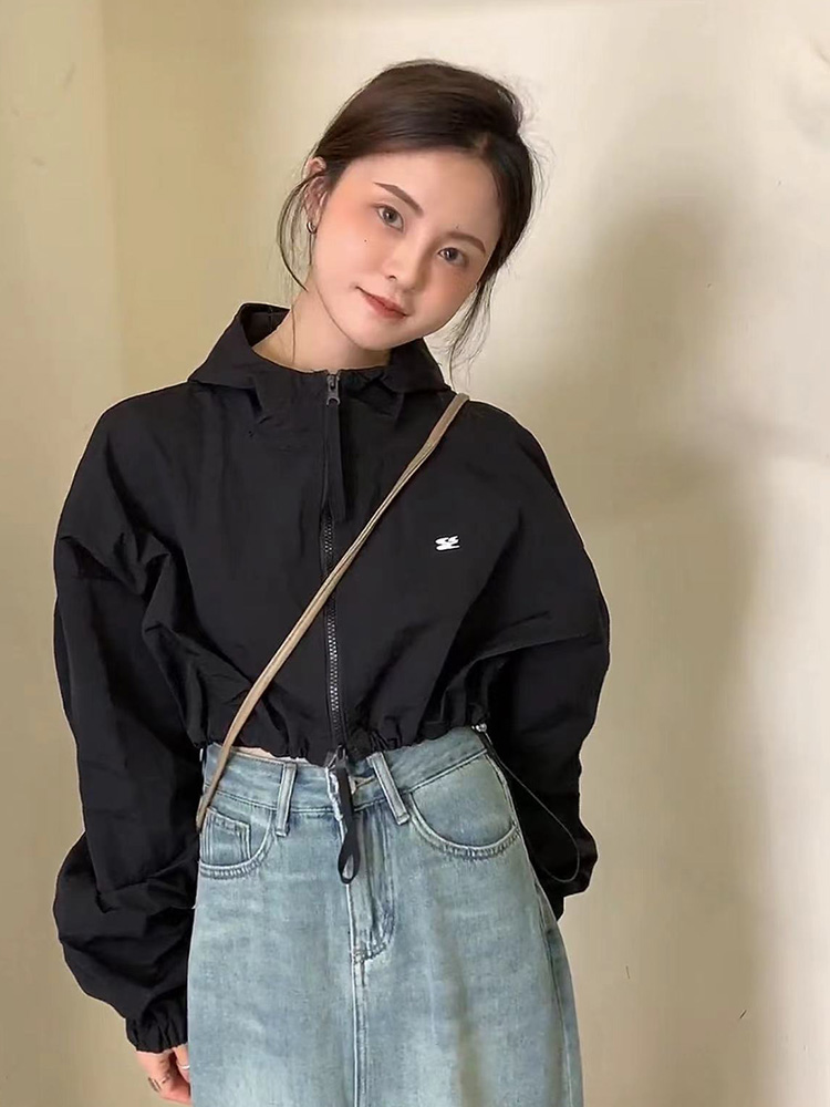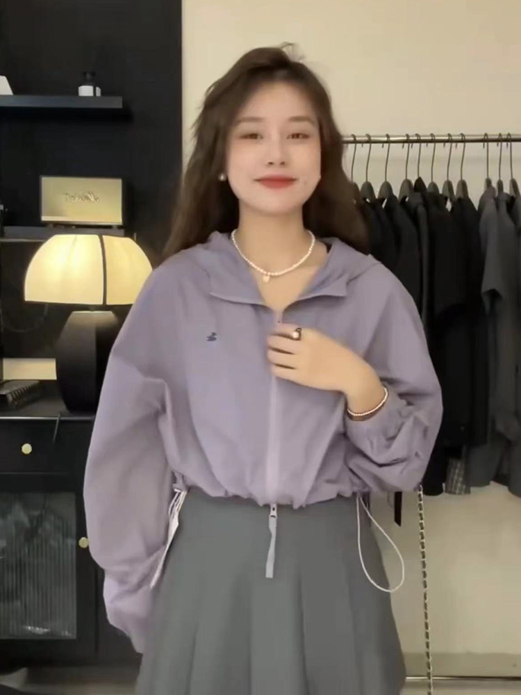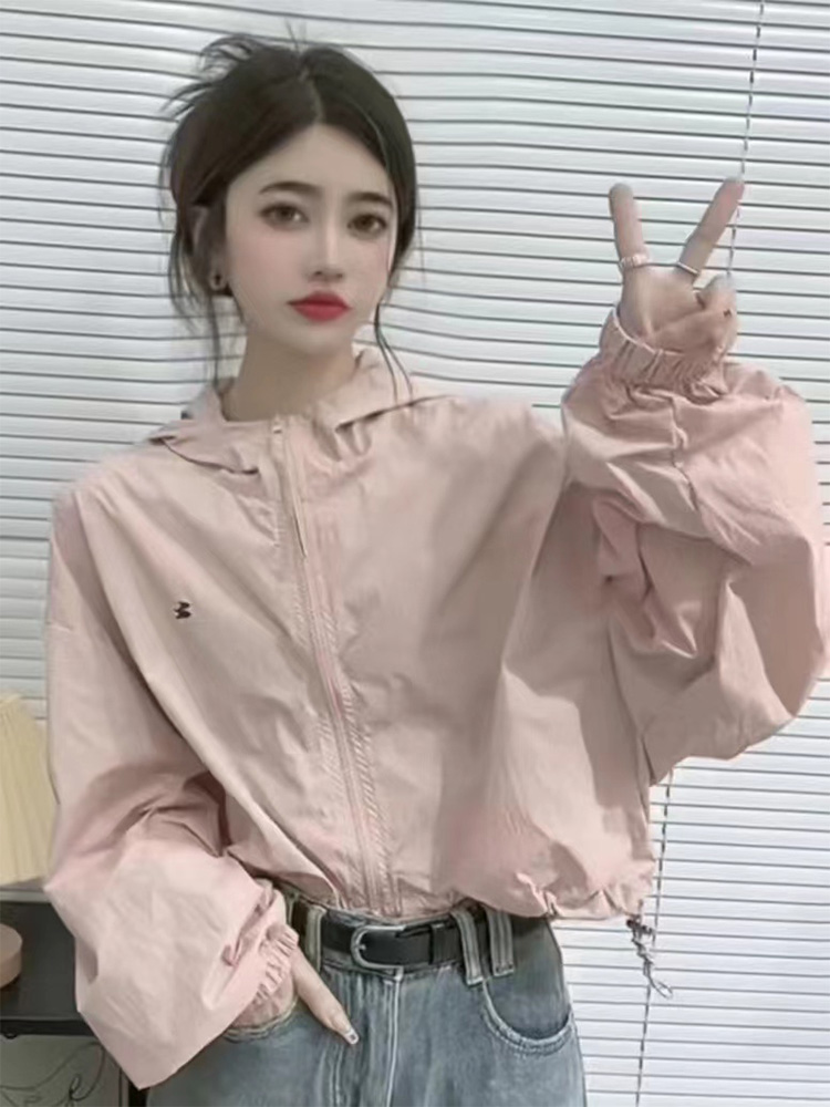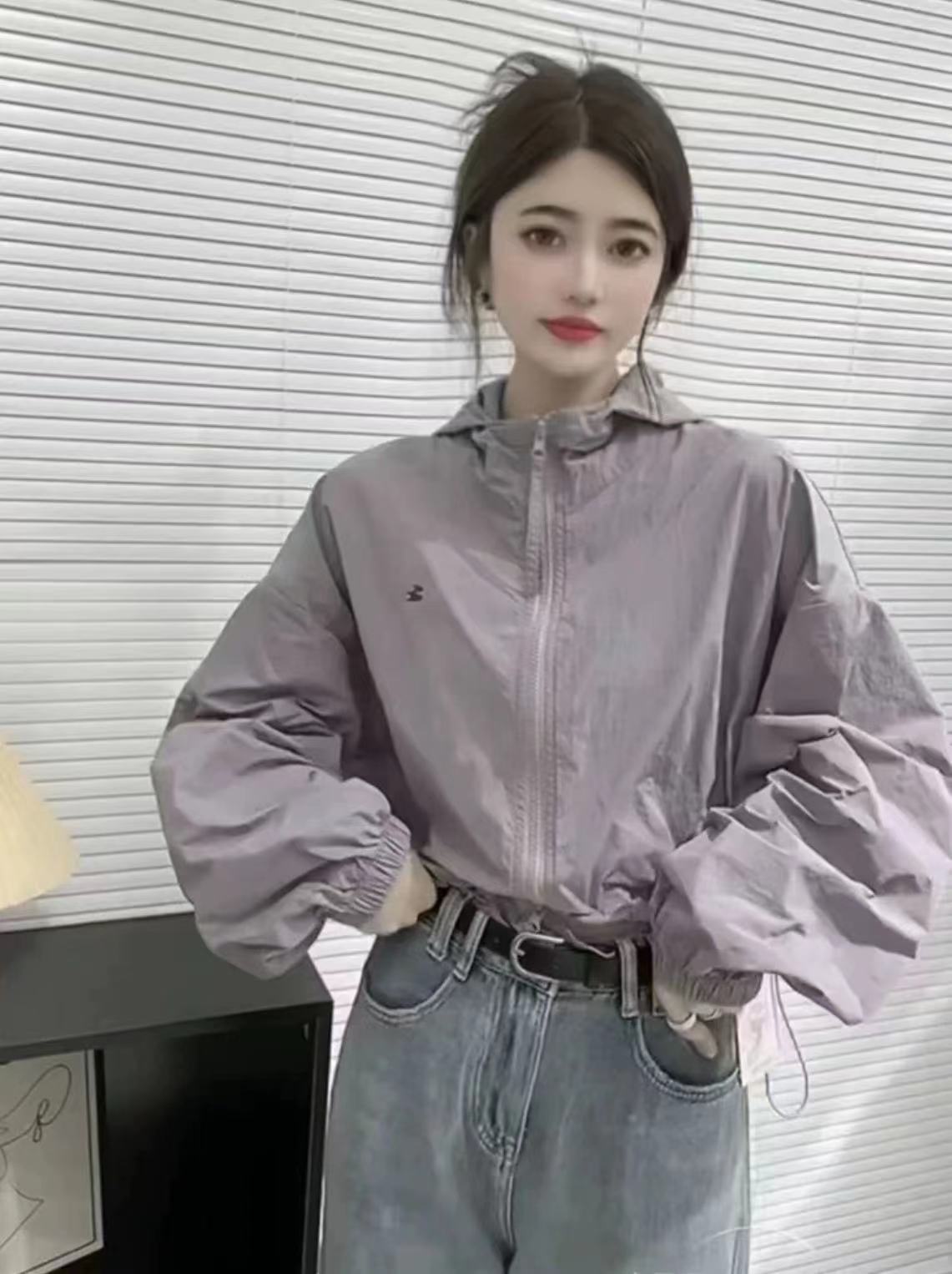 韓系短款防曬衣外套女2023夏季薄款高級感百搭抽繩休閒夾克上衣女