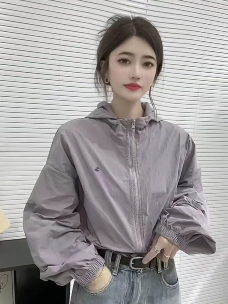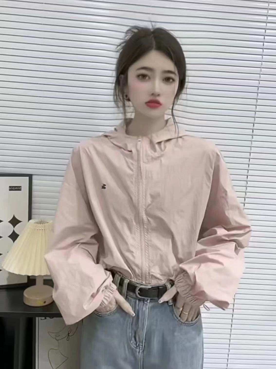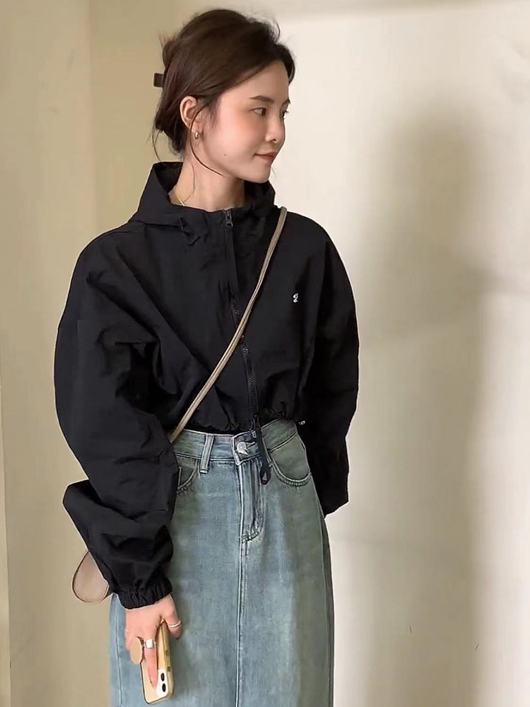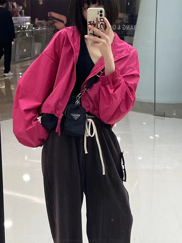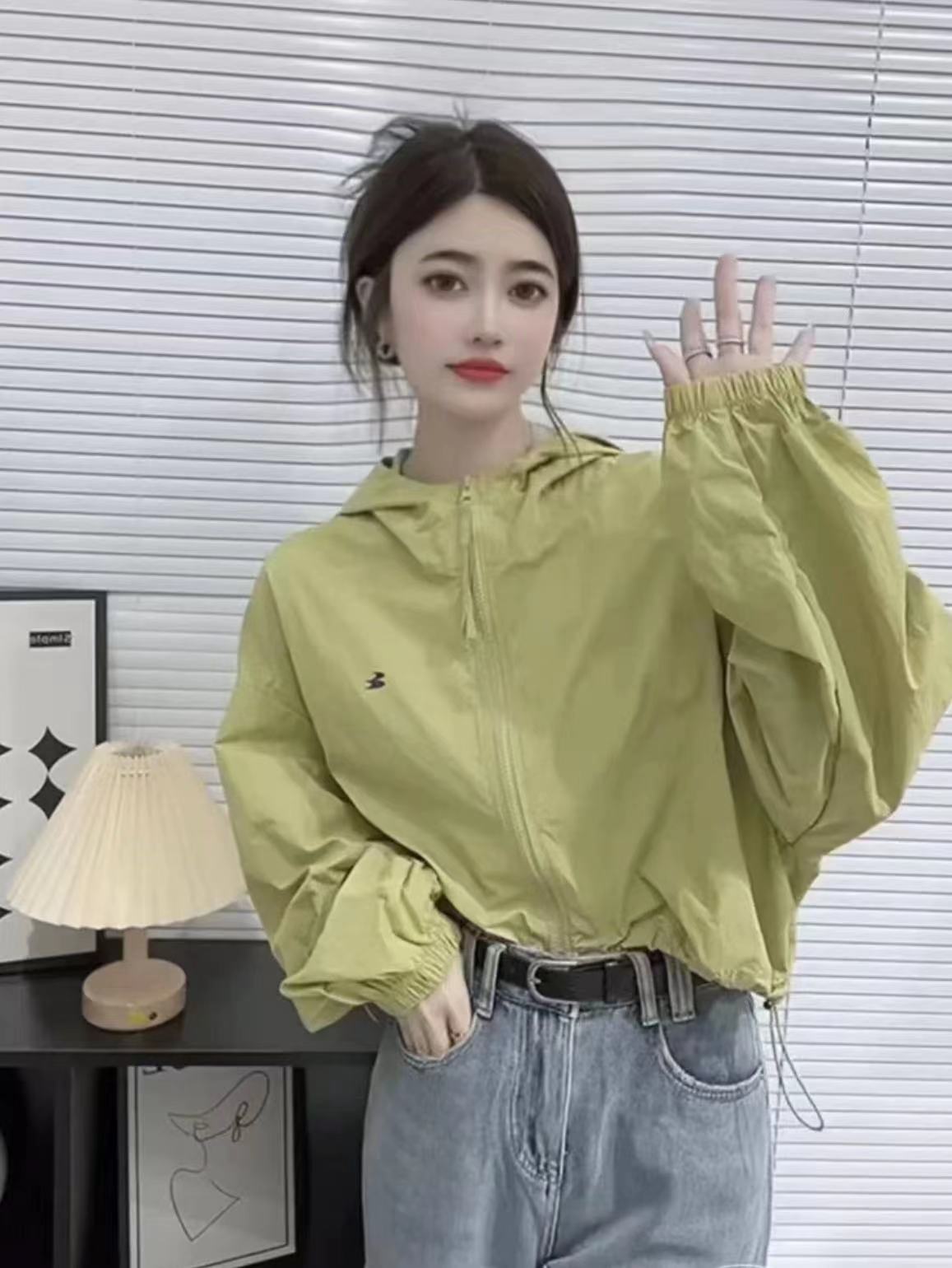 韓系短款防曬衣外套女2023夏季薄款高級感百搭抽繩休閒夾克上衣女