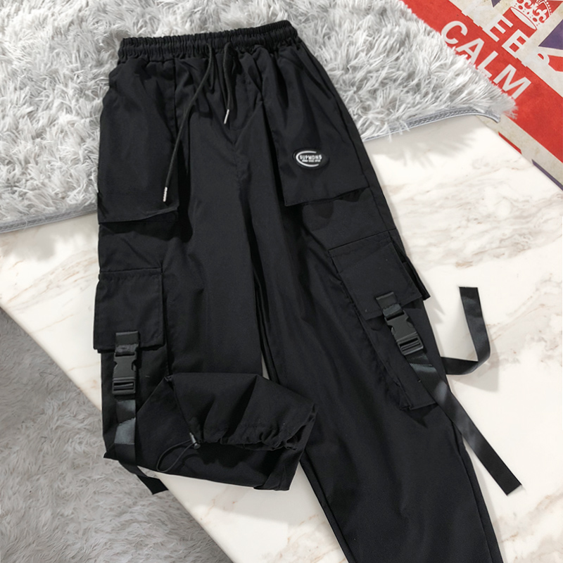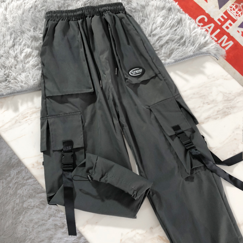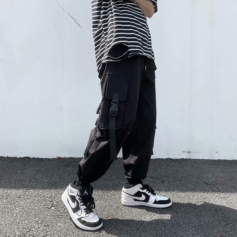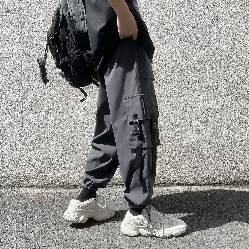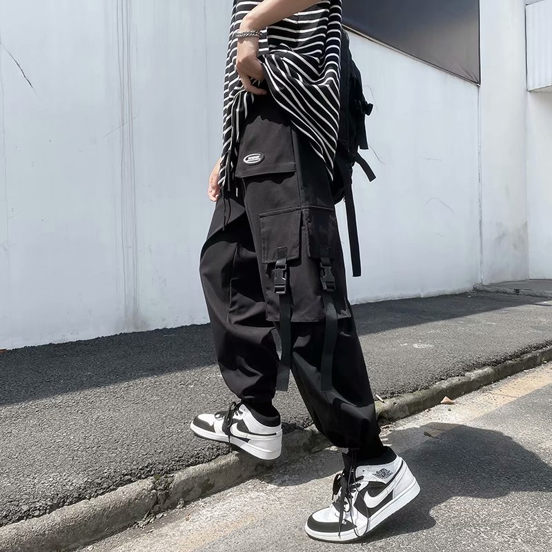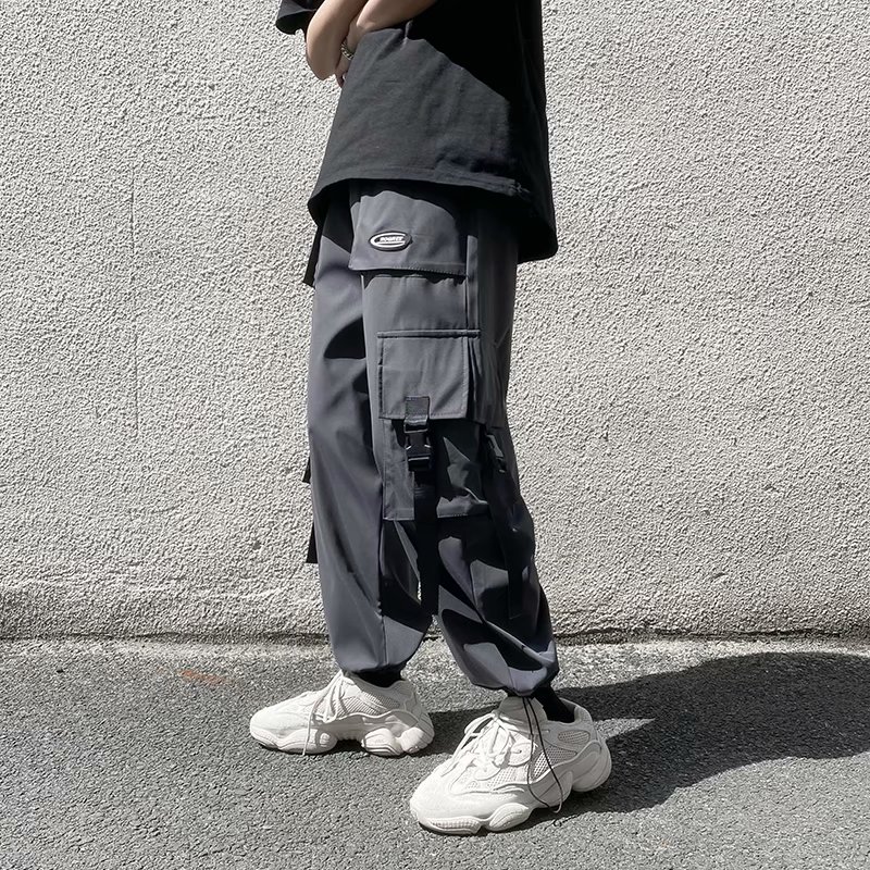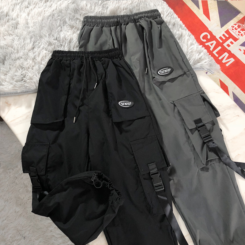 多口袋工裝休閒褲男褲2021年新款潮流寬鬆束口褲運動機能風傘兵褲