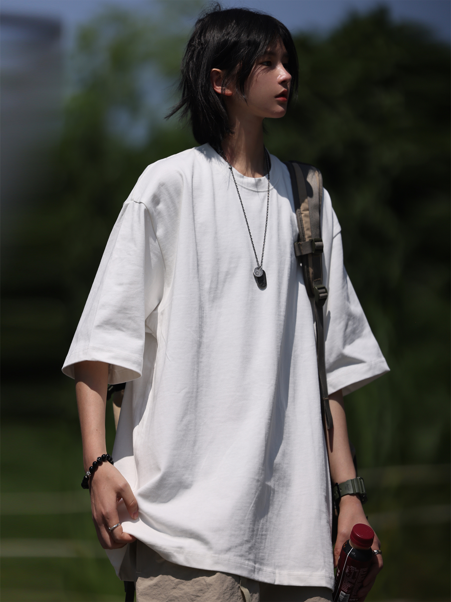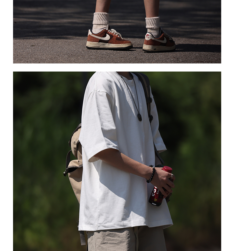 Nobodyknows夏季美式重磅320G純色基礎T恤短袖純棉男女寬鬆國潮
