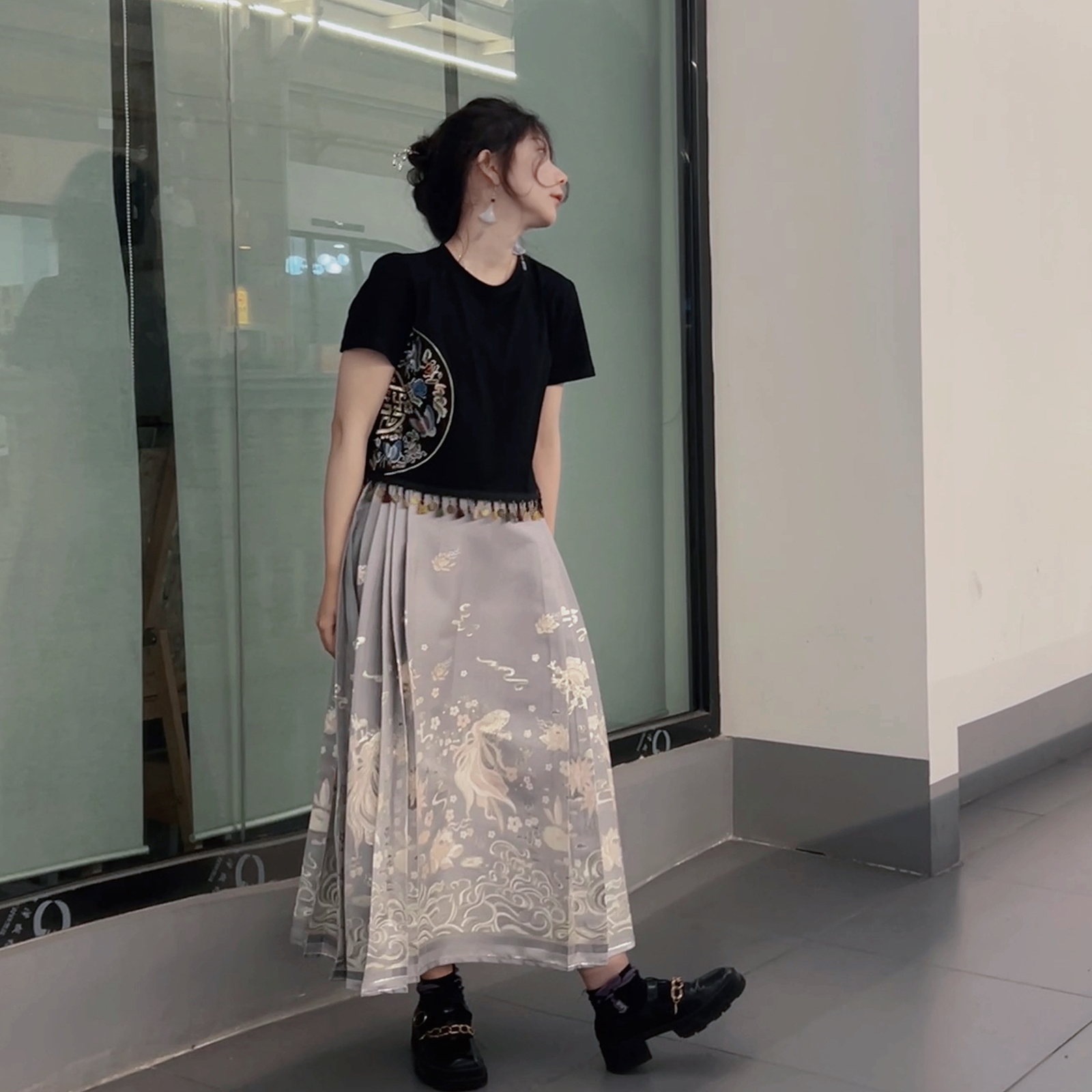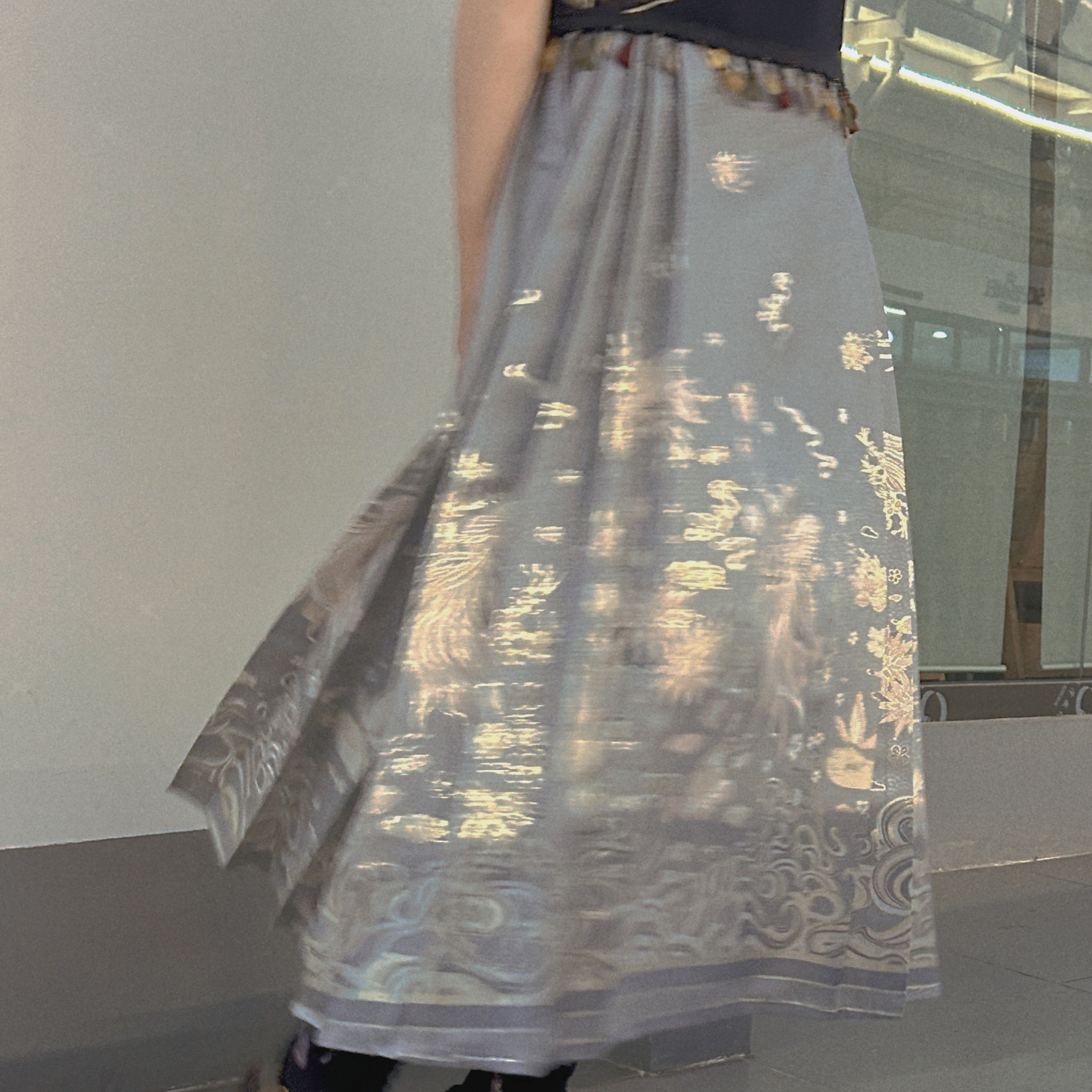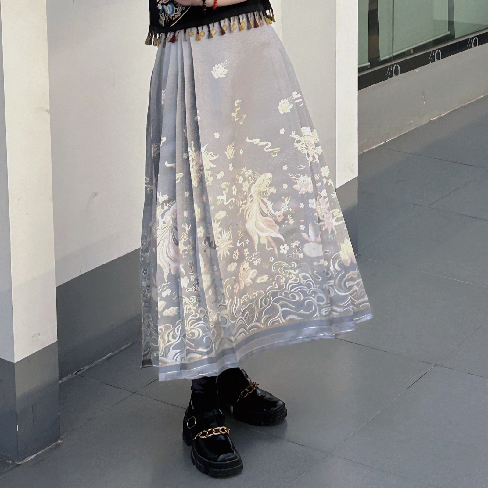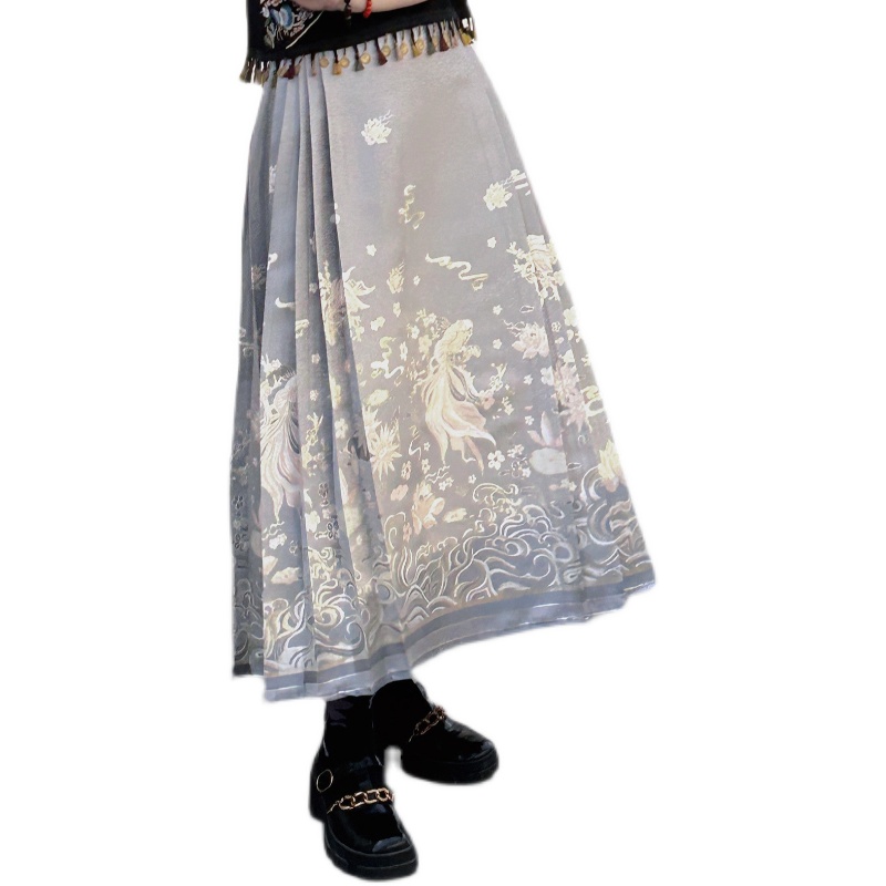 真大魚大小碼微胖M高腰大擺a字復古半身裙長裙裙子改良漢服馬面裙