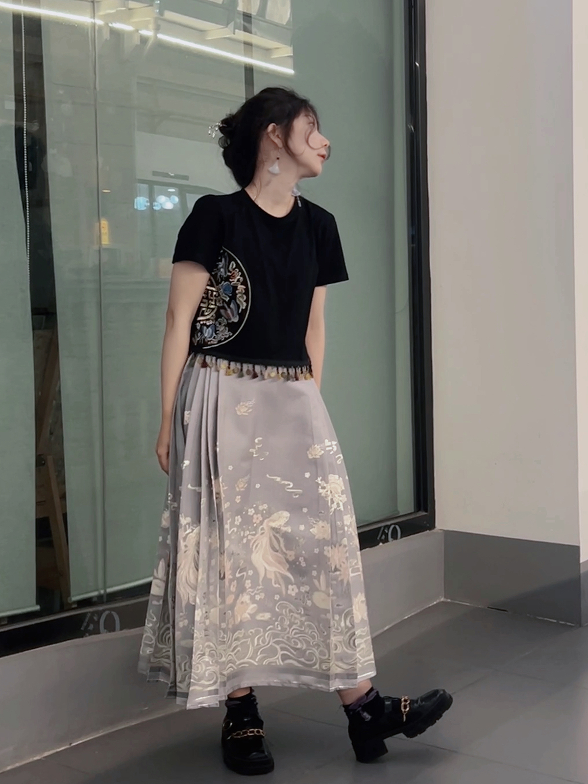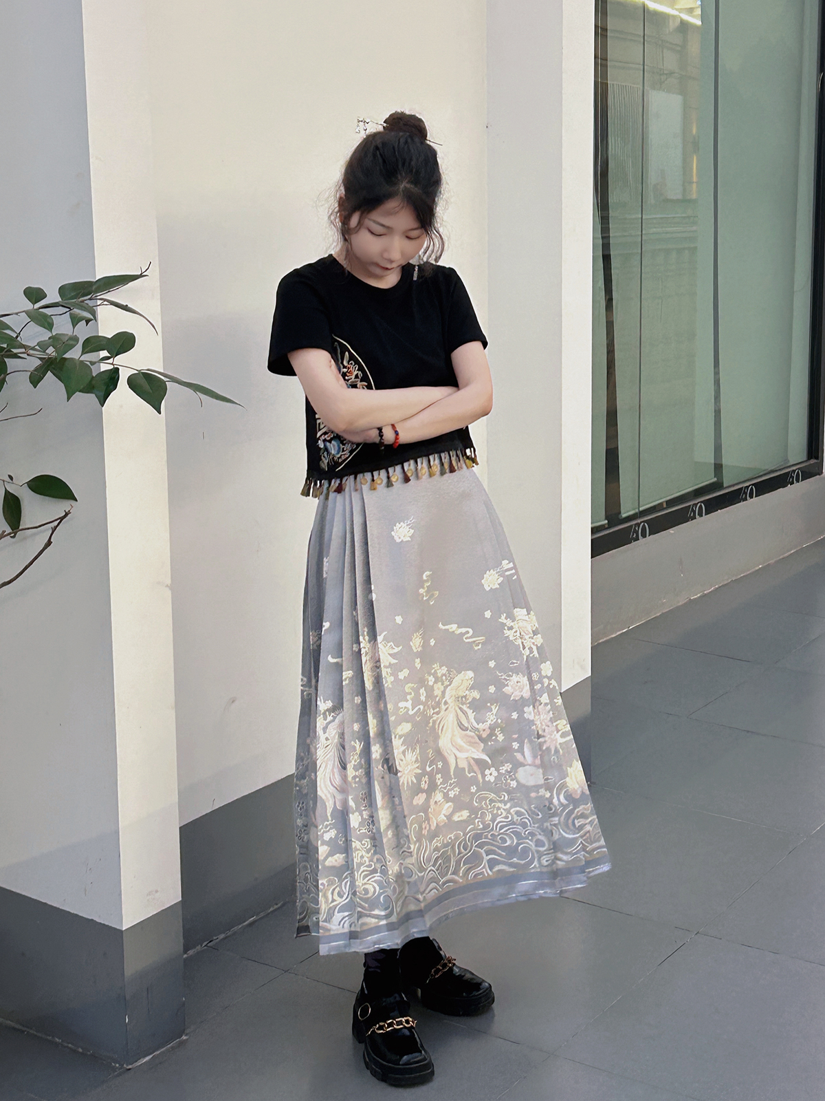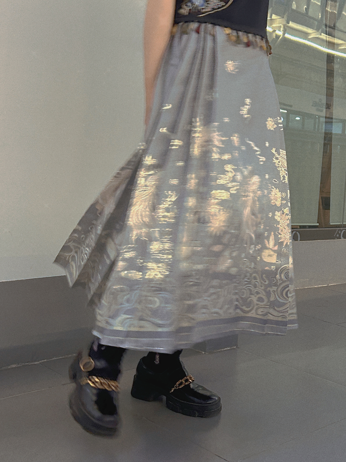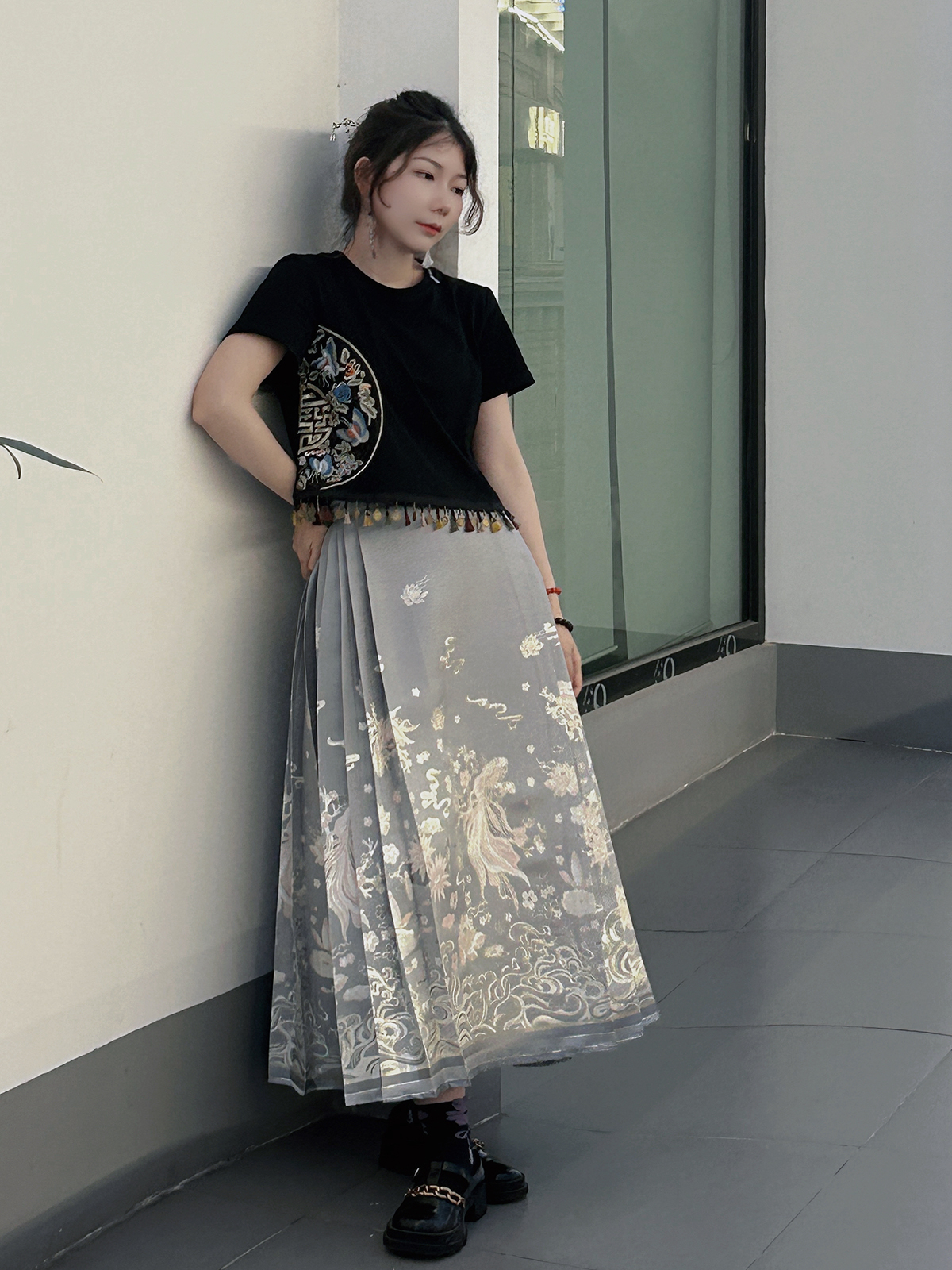 真大魚大小碼微胖M高腰大擺a字復古半身裙長裙裙子改良漢服馬面裙