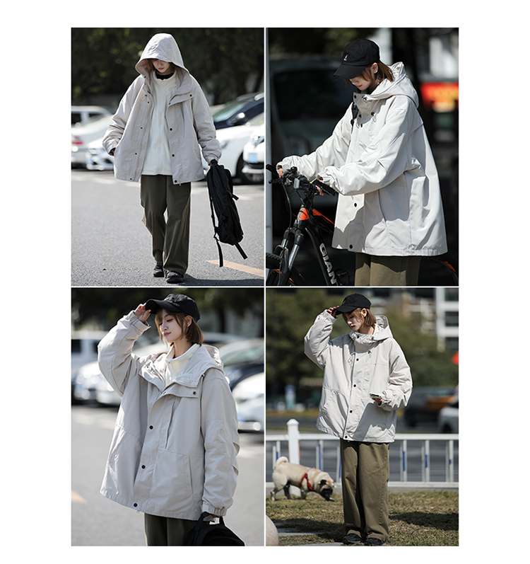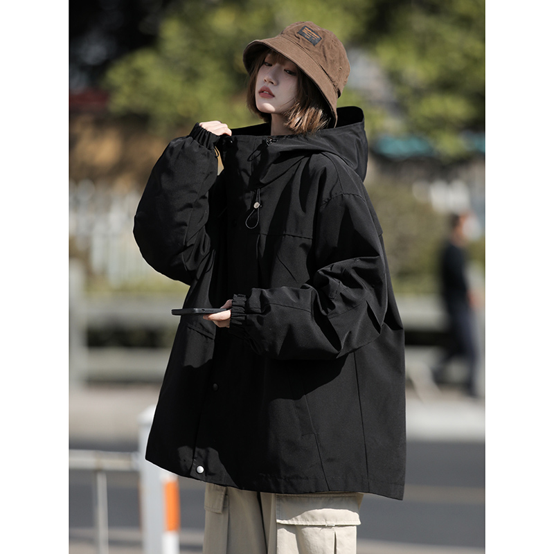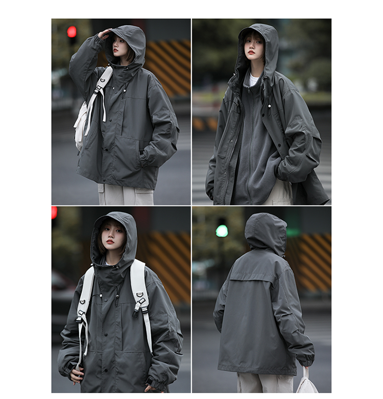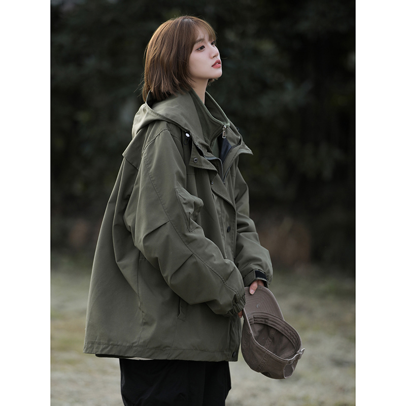 美式機能山系衝鋒衣三合一軍綠色搖粒絨外套女秋冬款加厚工裝夾克