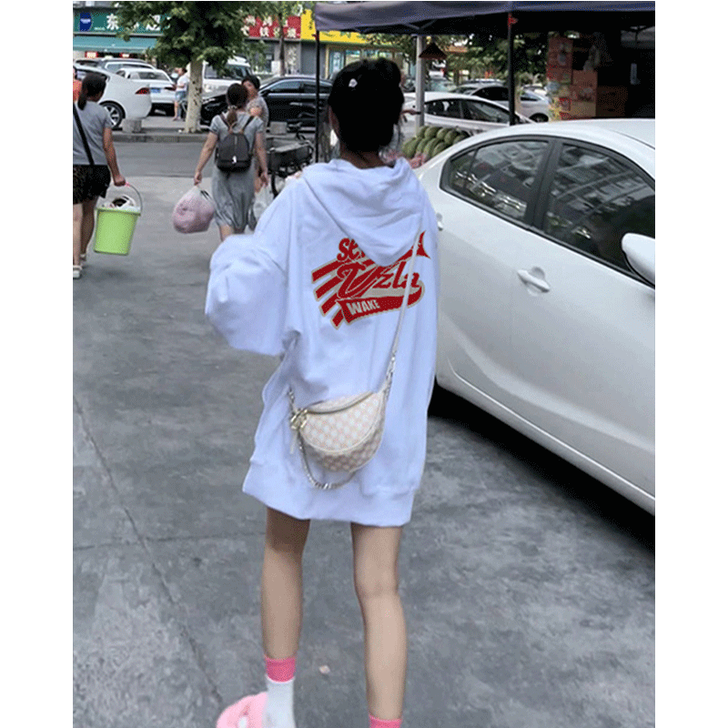美式復古重磅正肩hiohop連帽衫外套白色厚棉T女小眾設計感別致上衣