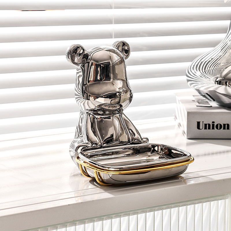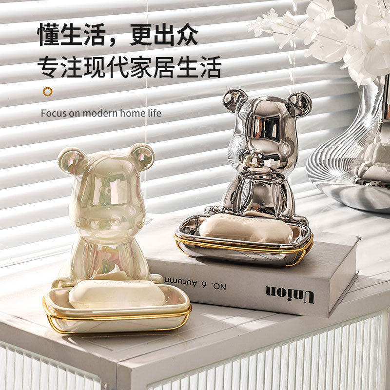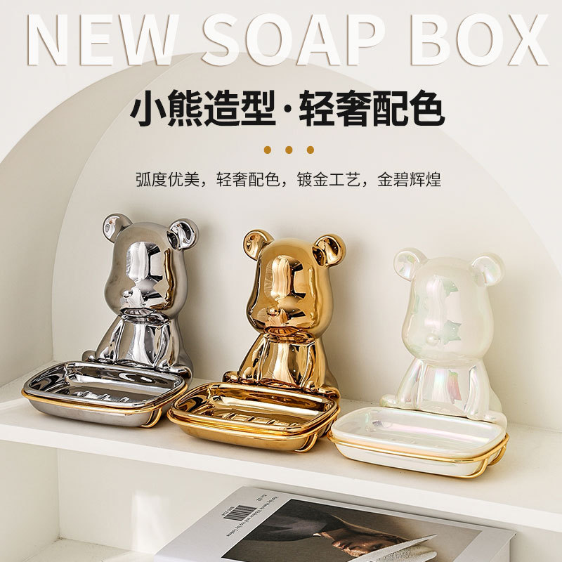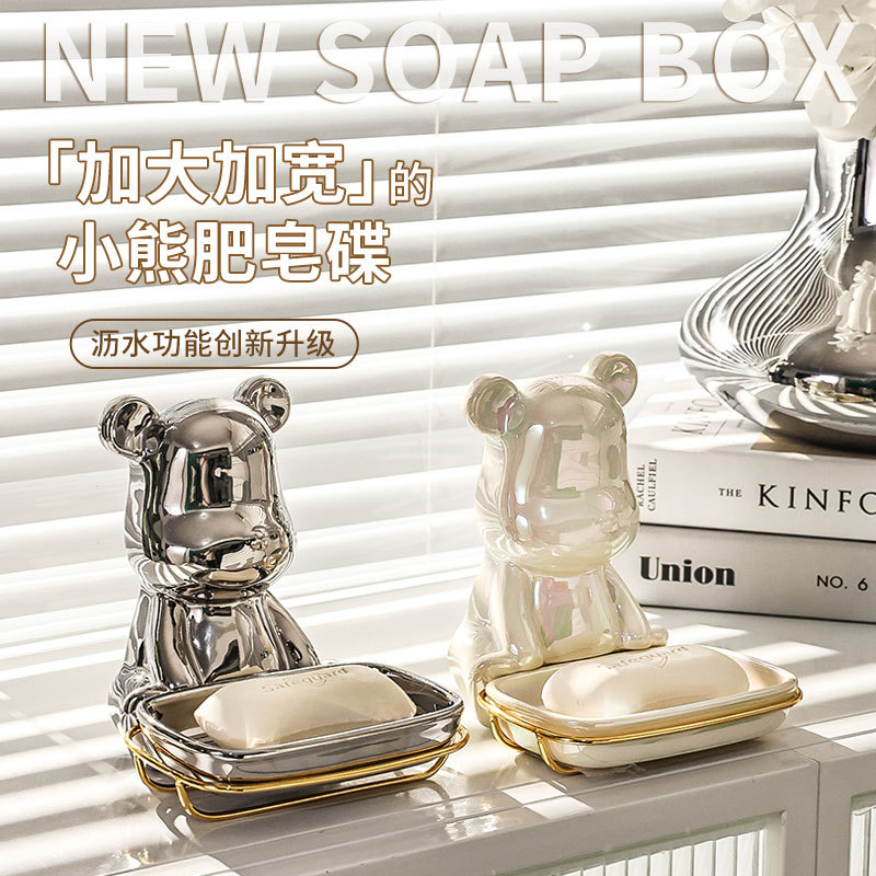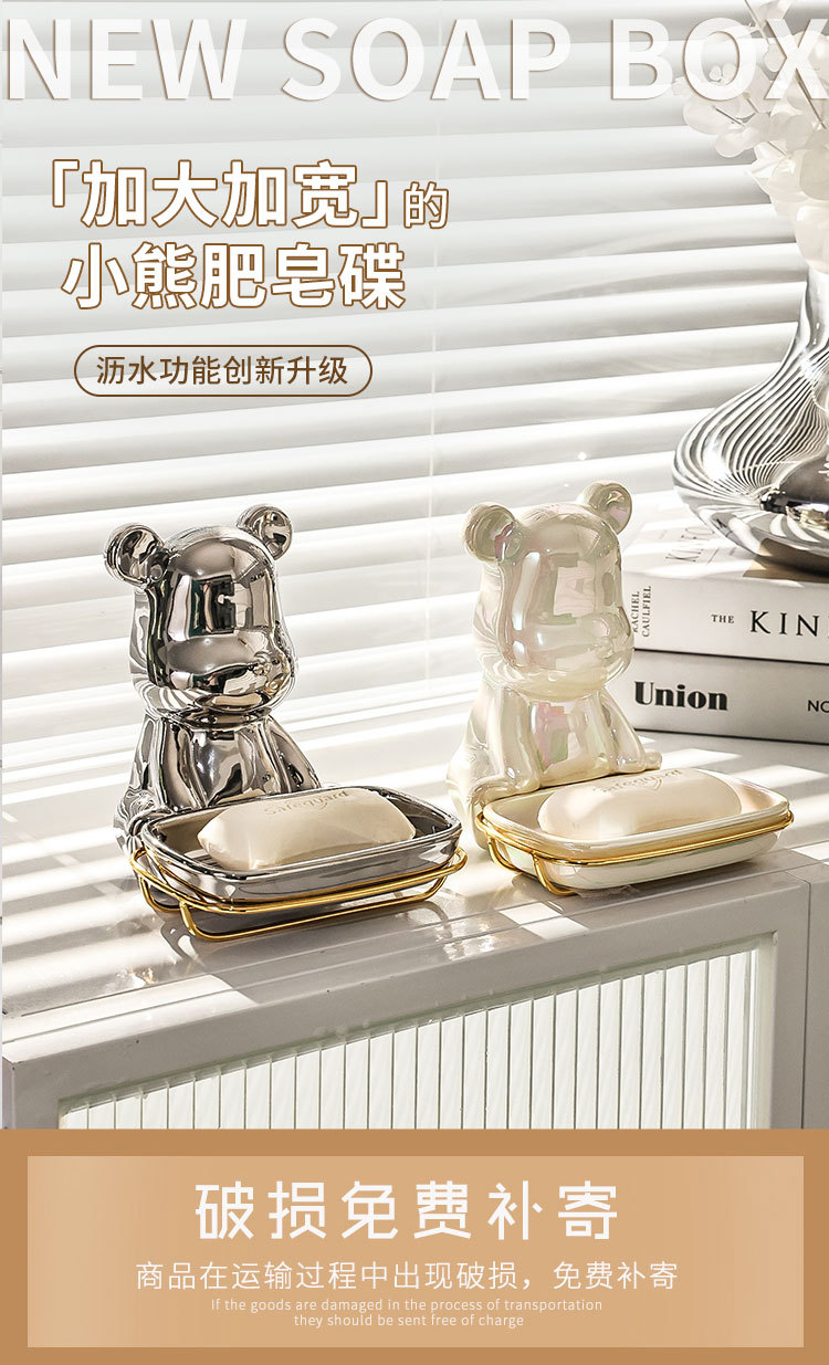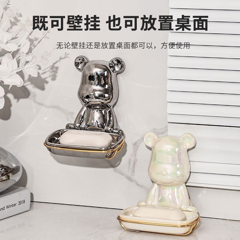 北欧轻奢小熊ins肥皂盒香皂盒皂碟托免打孔收纳卫生间壁挂式家用