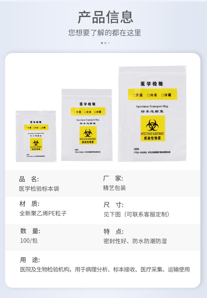 标本袋  样本袋  不保运输袋  核酸测袋  检验袋 生物安全袋  三层