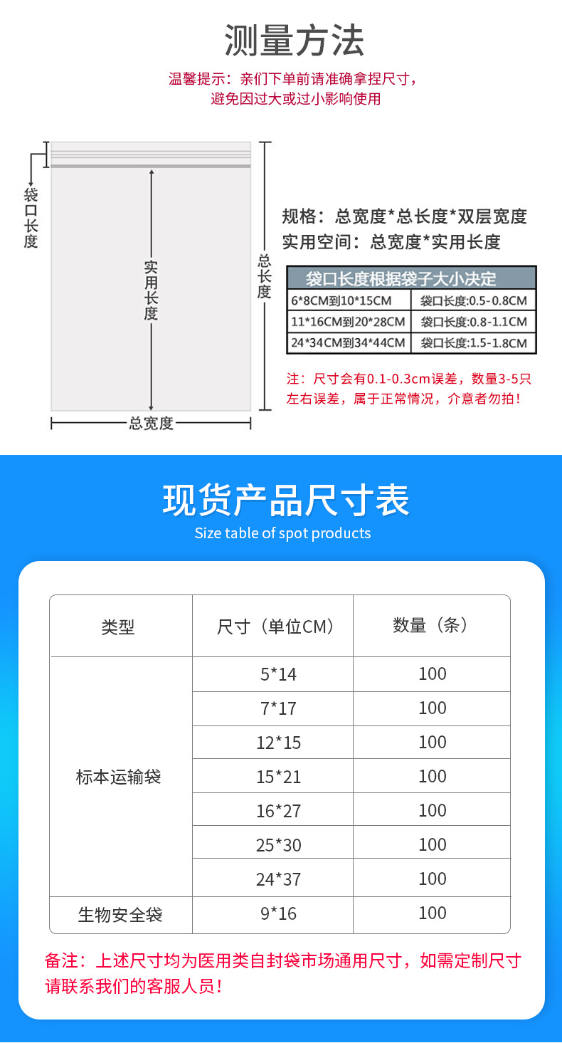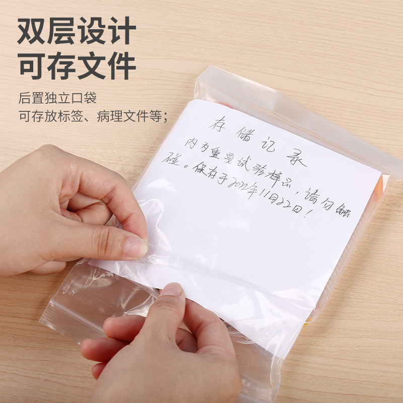 二、本产品为三层的袋子,背面的子代可放置纸质的检验信息;