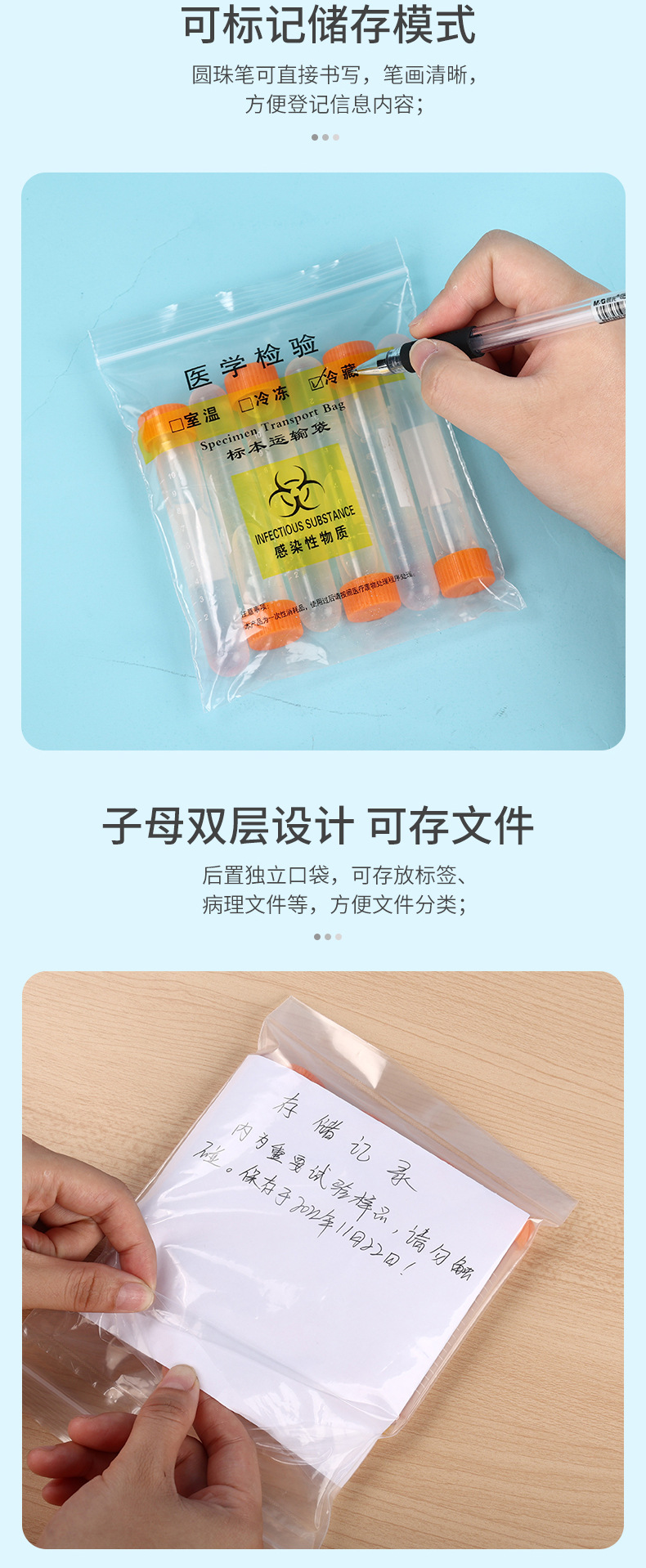 加厚生物安全标本运输袋三层标本采样袋病理袋核酸检测自封子母袋