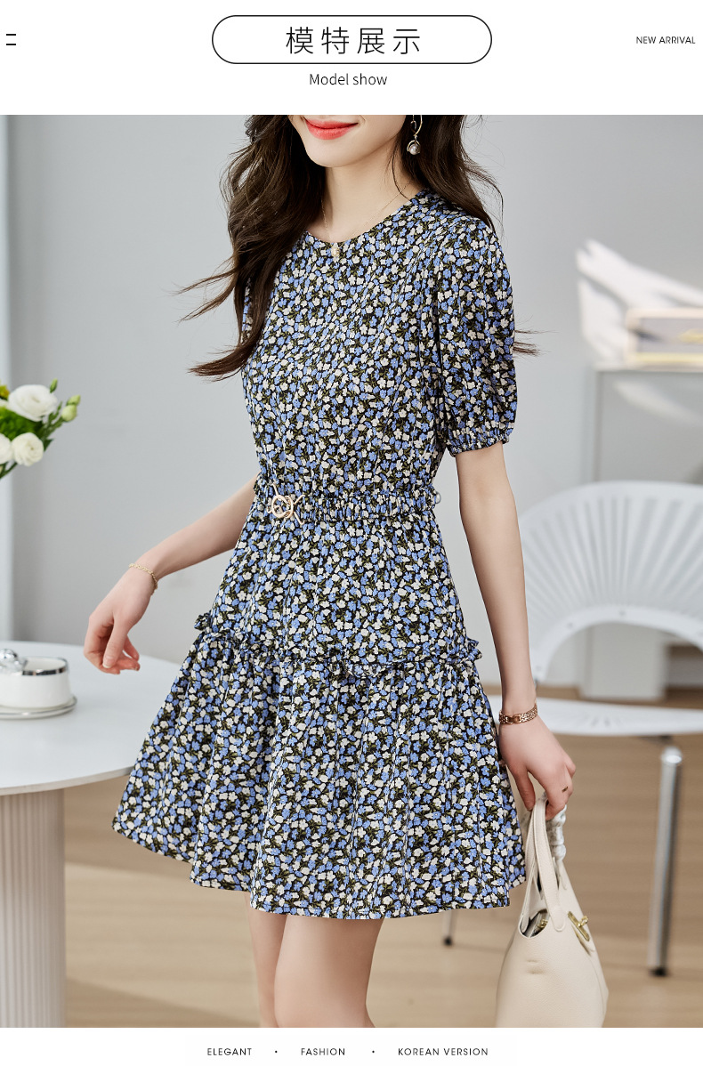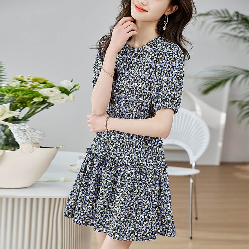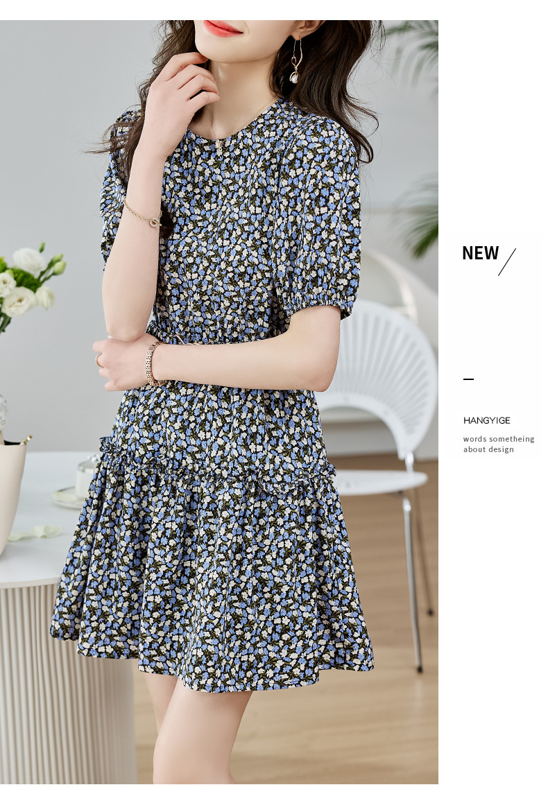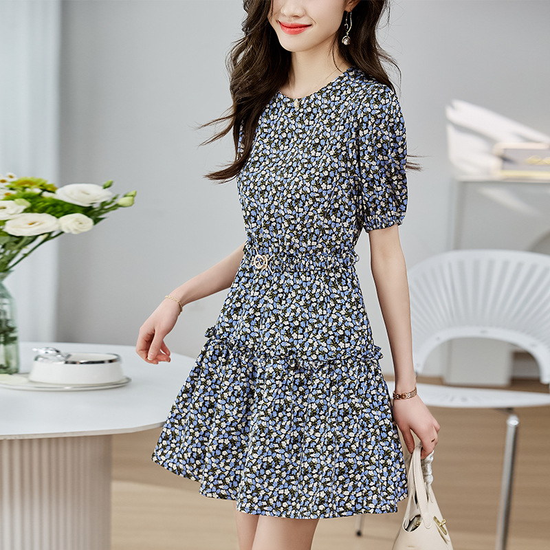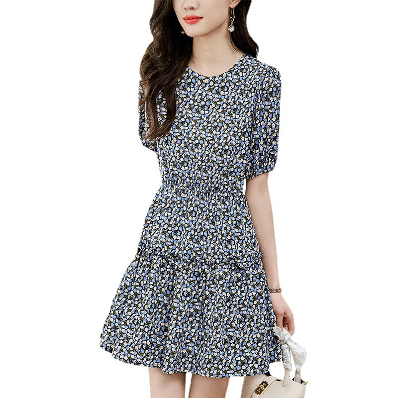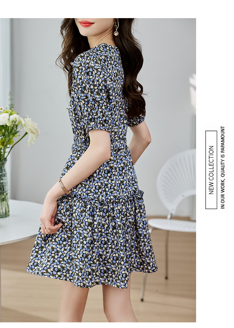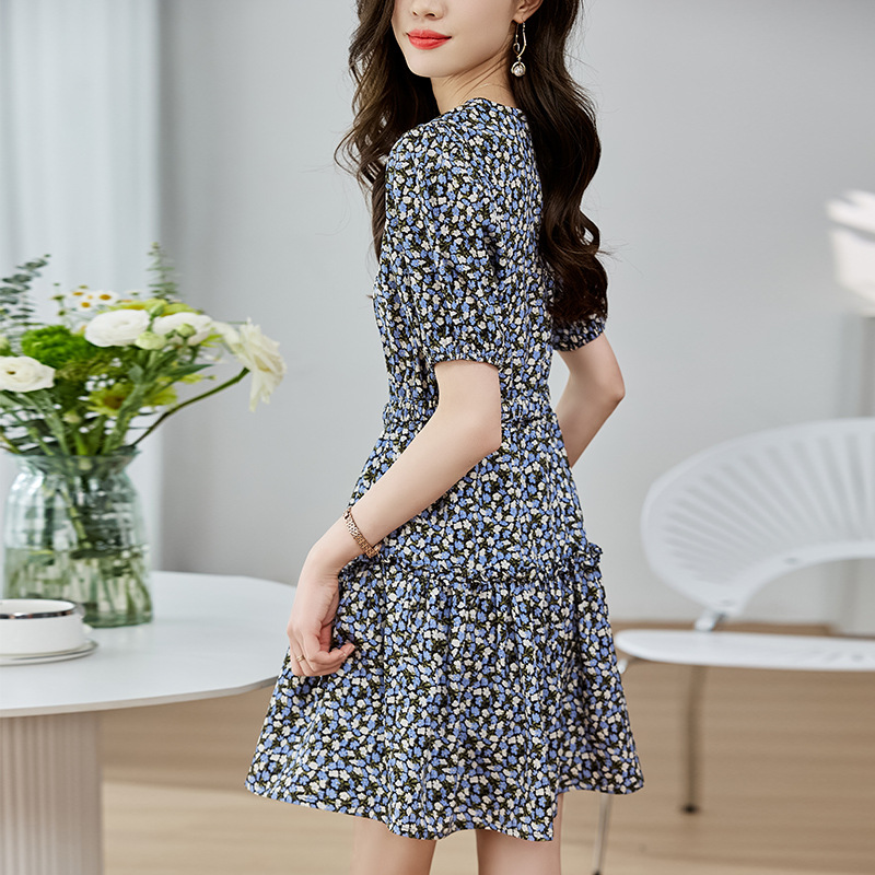 碎花连衣裙女夏季2023新款小个子茶歇法式气质收腰a字裙显瘦裙子