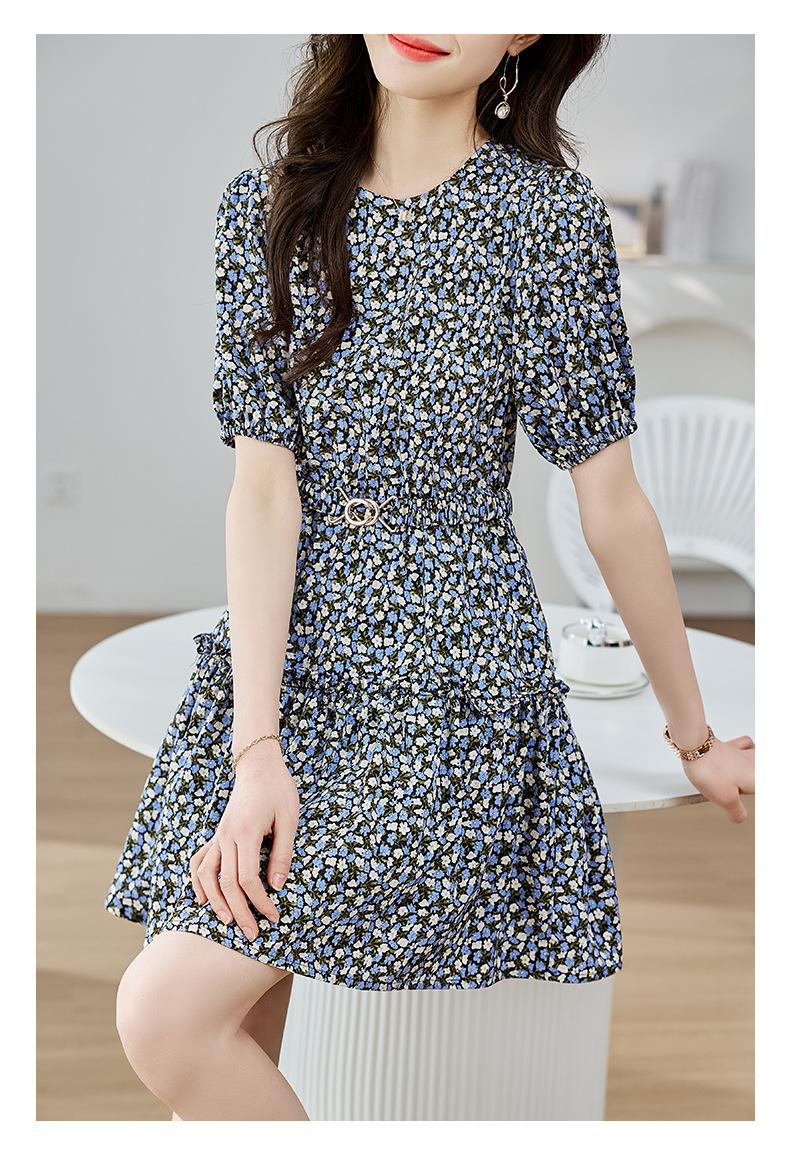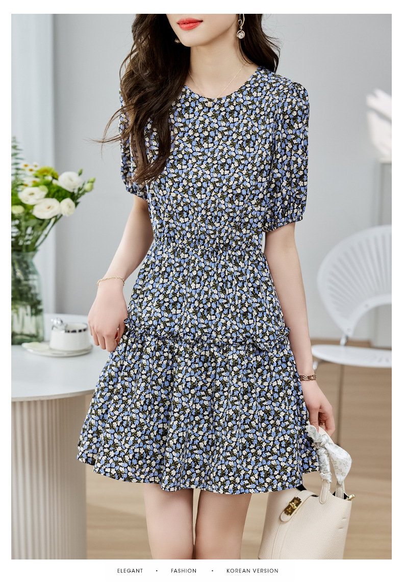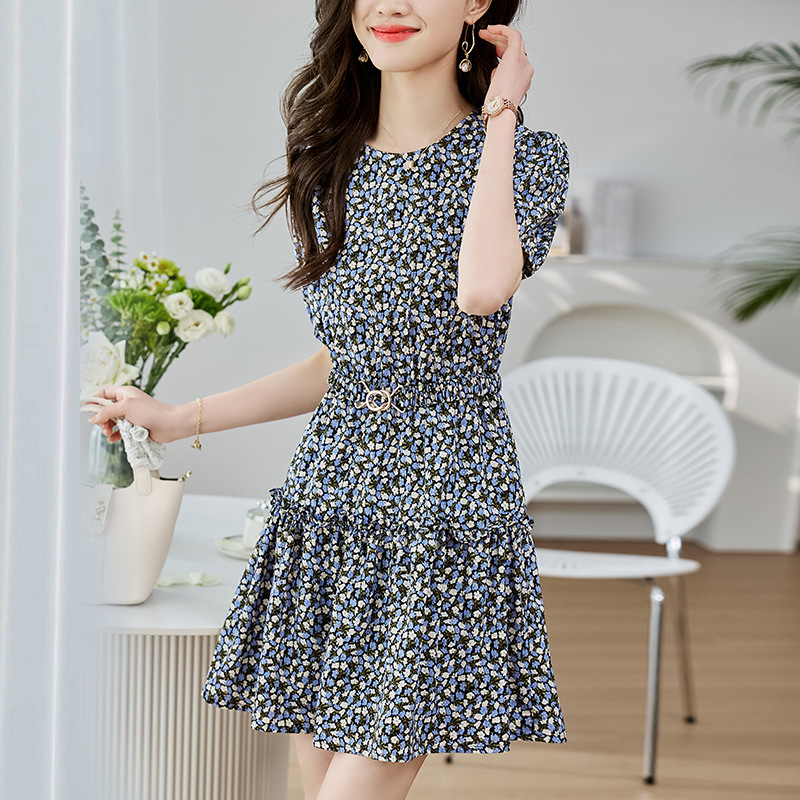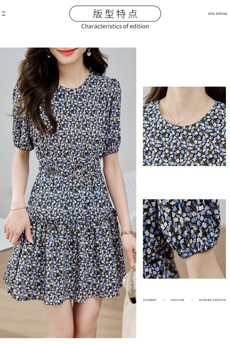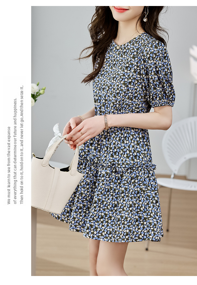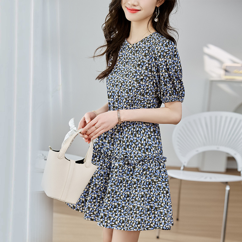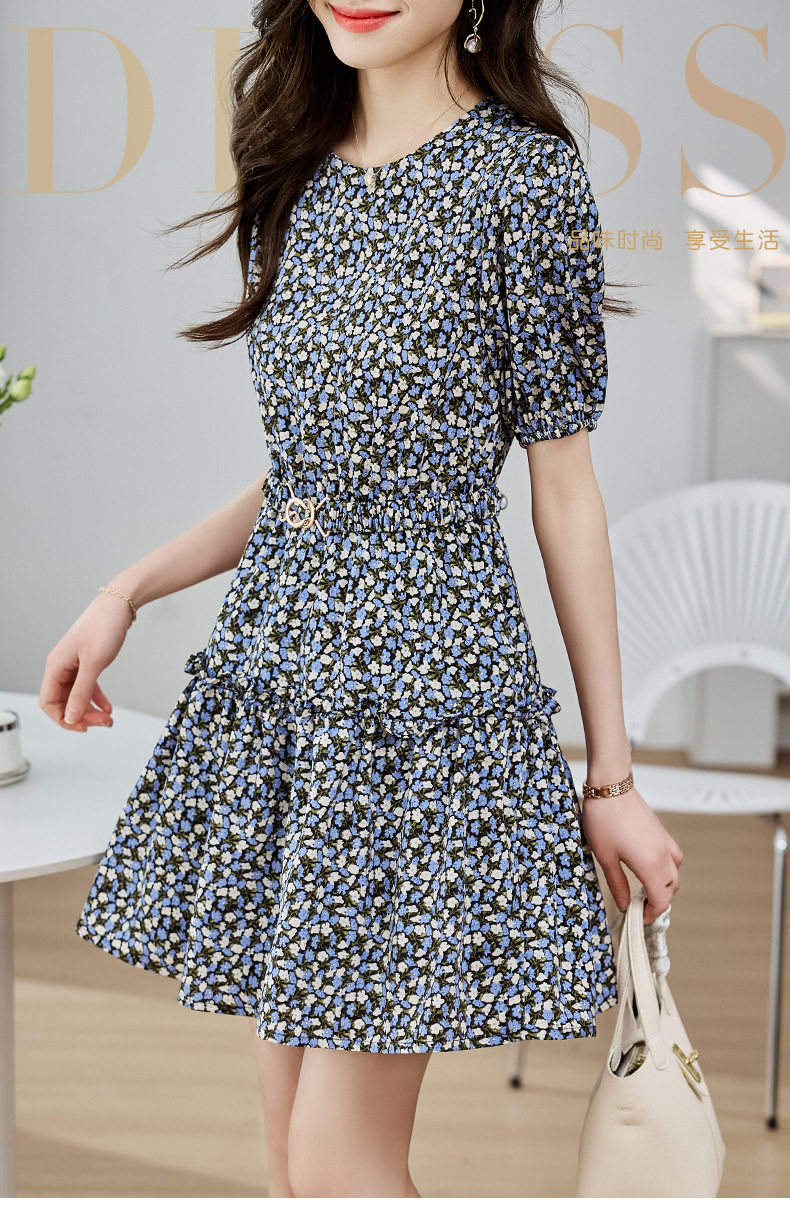 碎花连衣裙女夏季2023新款小个子茶歇法式气质收腰a字裙显瘦裙子