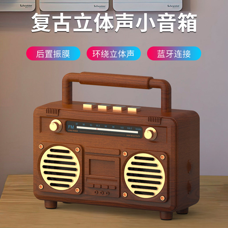 送礼复古蓝牙小音箱无线小型U盘插卡收音机音箱户外携带迷你音响