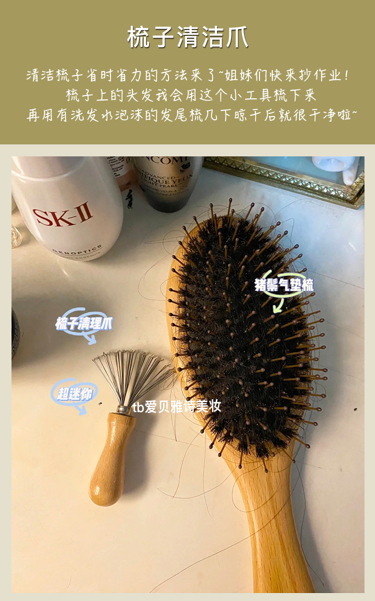 梳子清潔的好幫手!氣囊梳氣墊梳清潔爪清潔刷子頭髮清理神器工具
