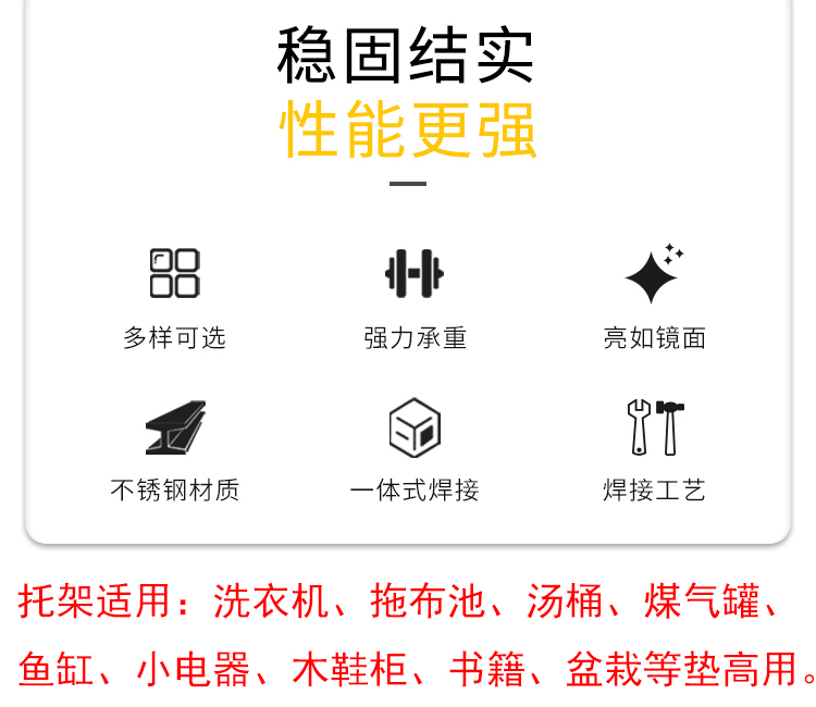 3TBW不锈钢底座通用架子冰箱底座架花盆托架拖布池汤桶鱼缸杂物架