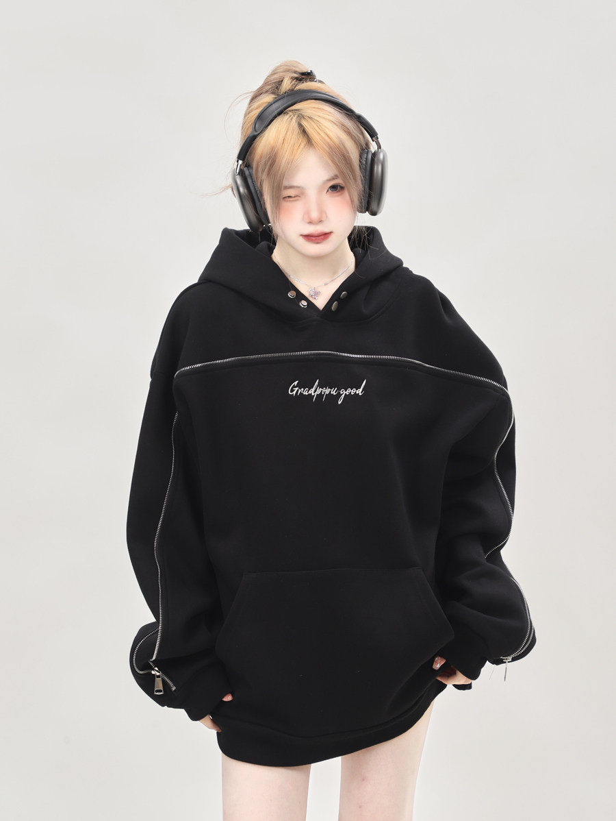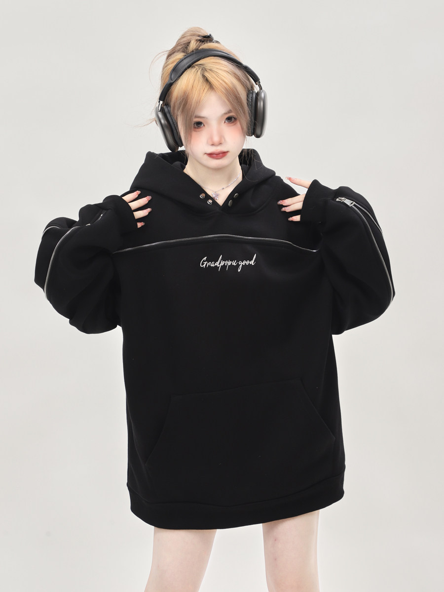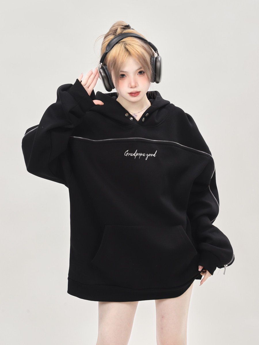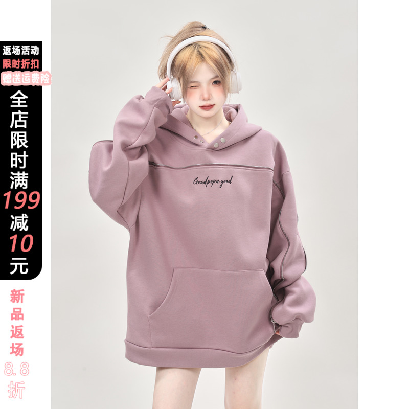 美式小眾oversize重磅連帽運動衫女秋冬2023新款爆款上衣設計感小眾