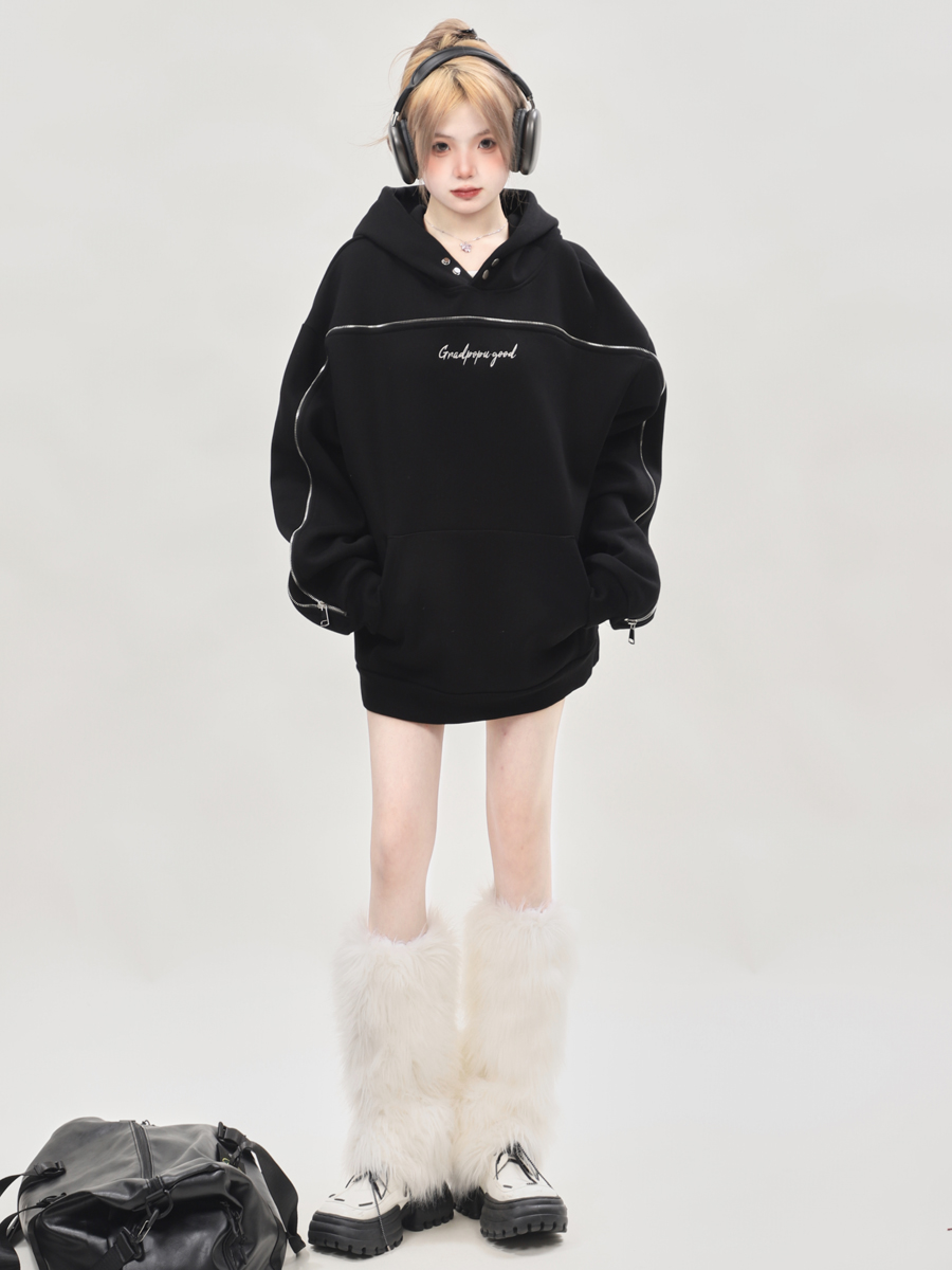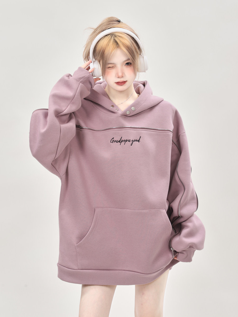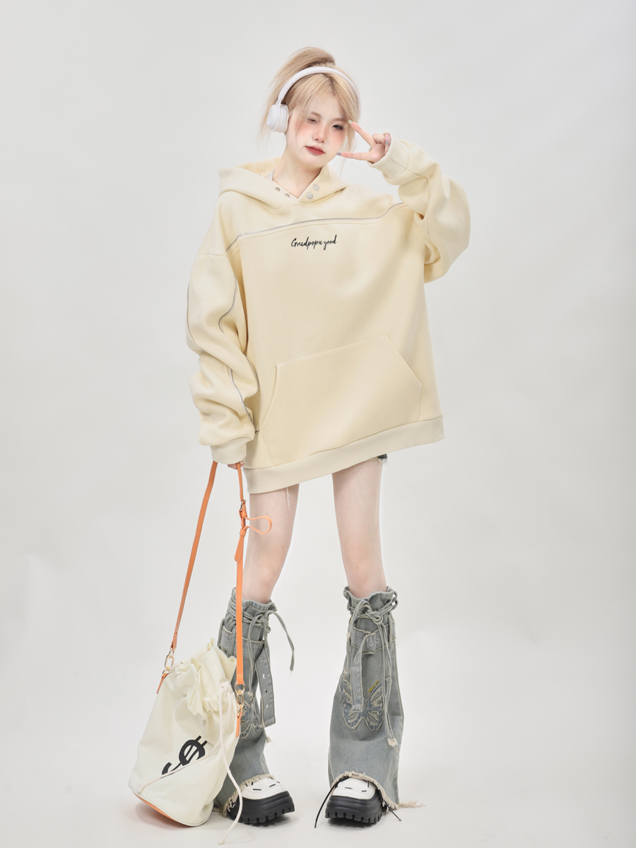 美式小眾oversize重磅連帽運動衫女秋冬2023新款爆款上衣設計感小眾
