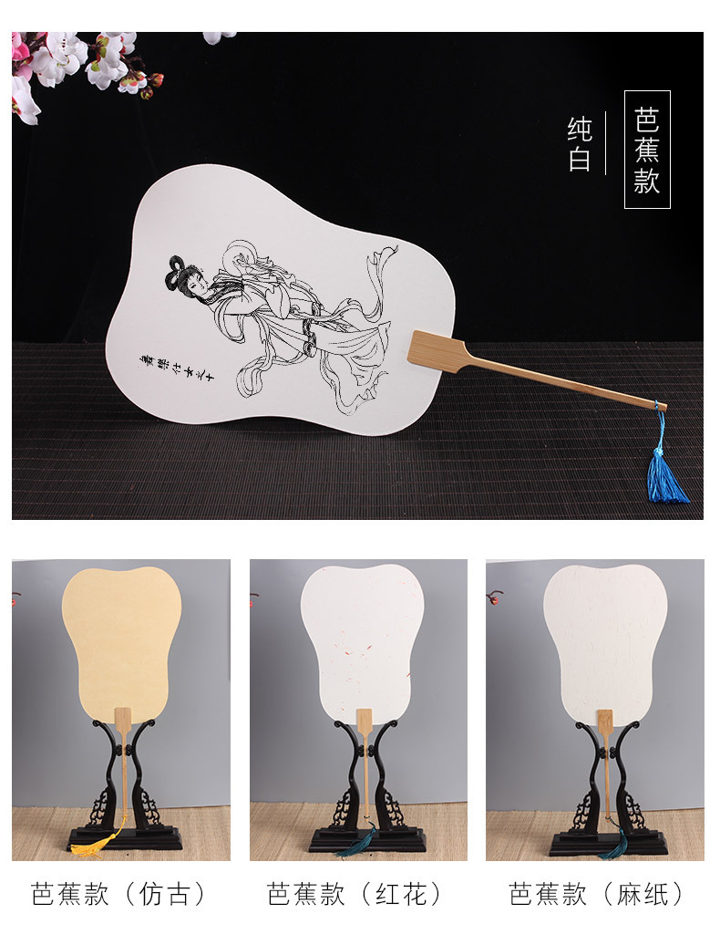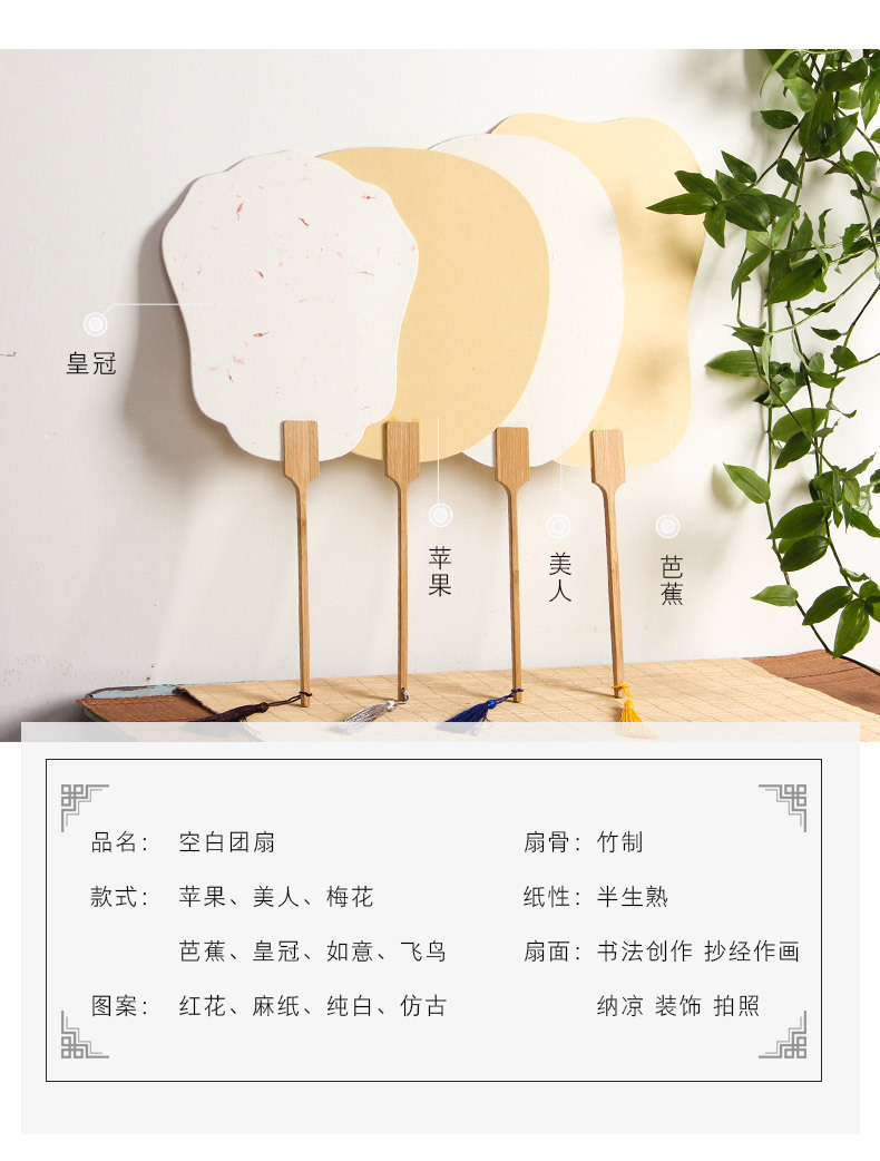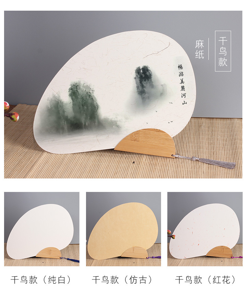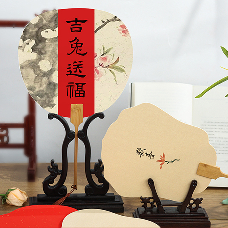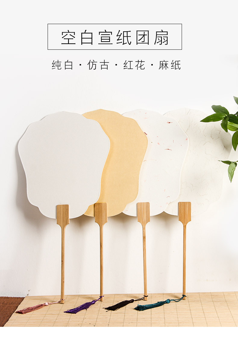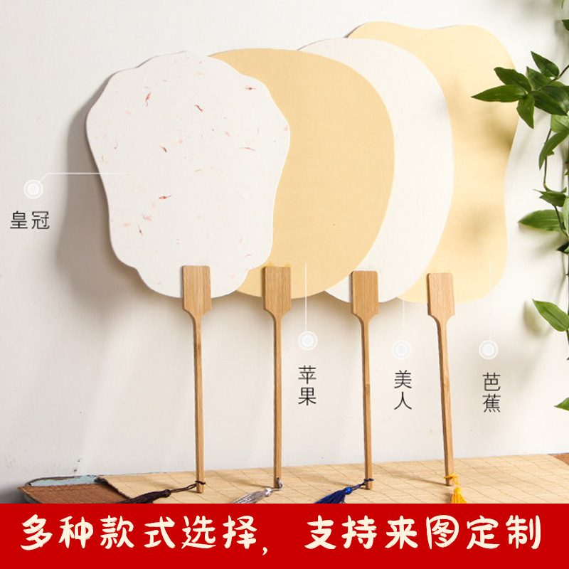 团扇宣纸双面扇空白加厚卡纸半生熟diy儿童手绘书法古风扇子批发