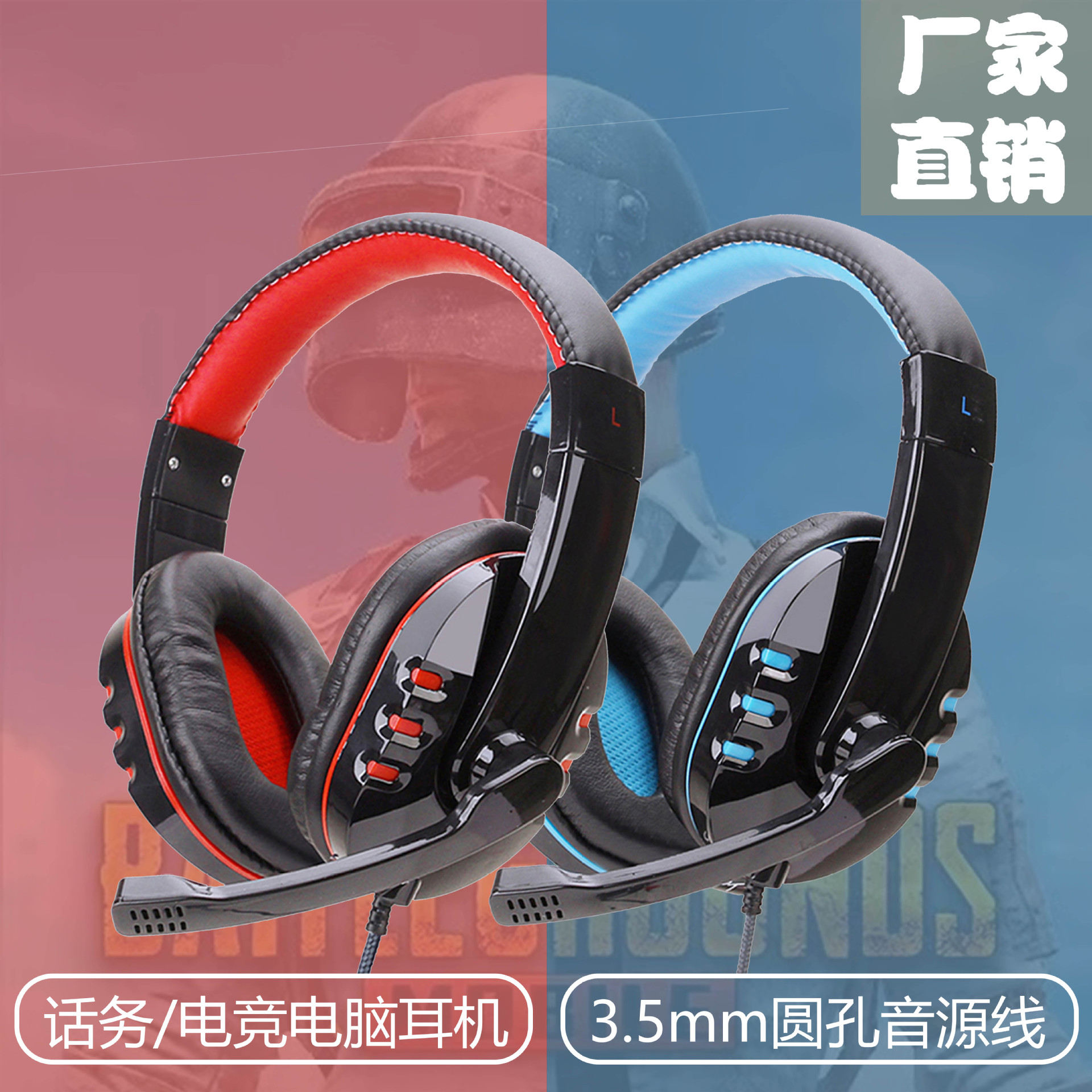 工厂直销H系列722电脑游戏双孔网吧耳麦耳机电竞吃鸡带麦通话通用