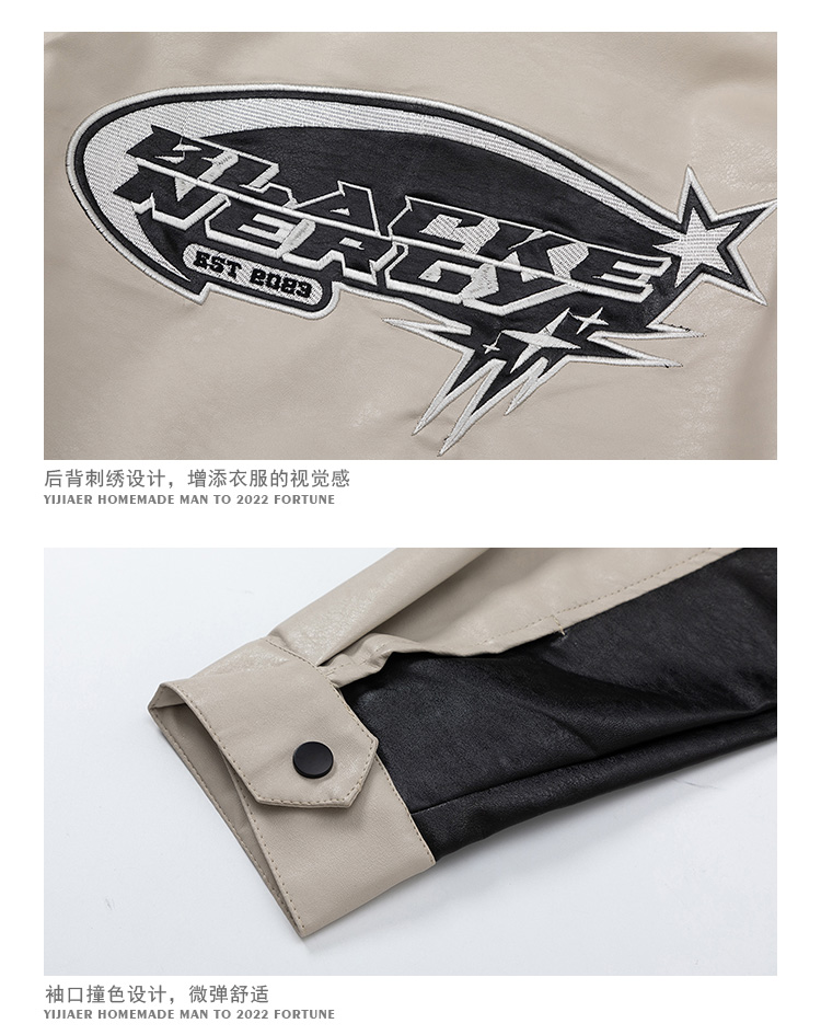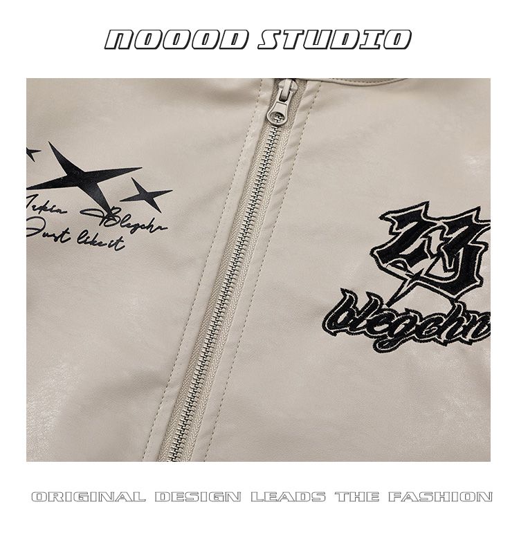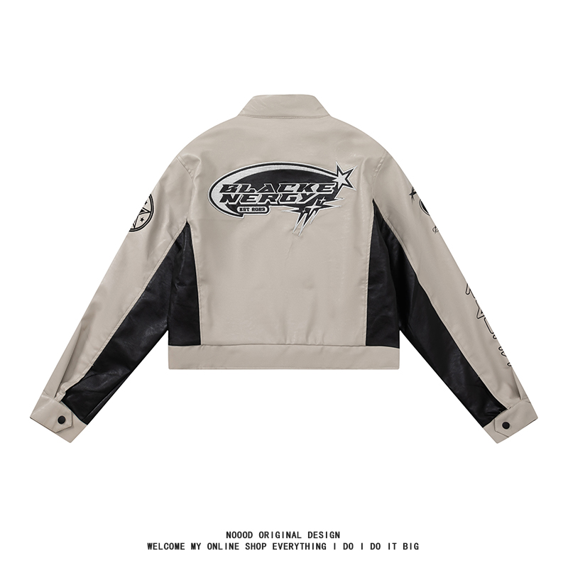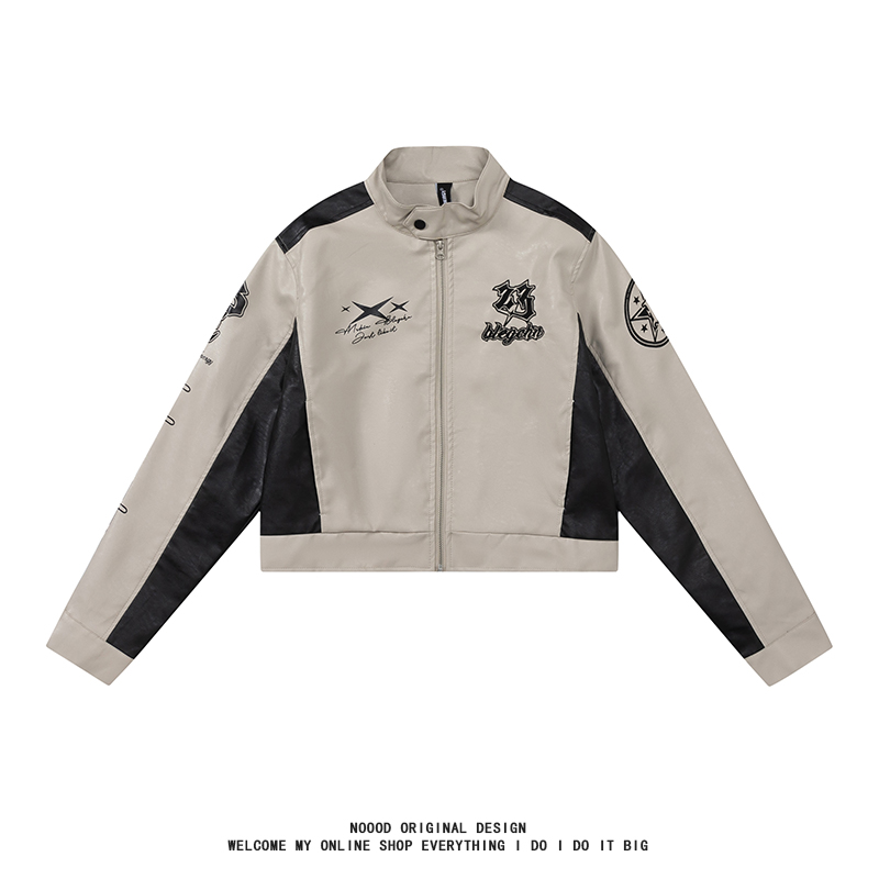 NOOOD 美式復古機車辣妹朋克皮衣短外套女春秋款設計感賽車服夾克