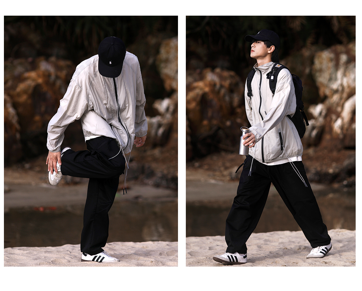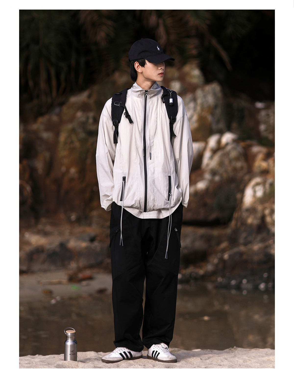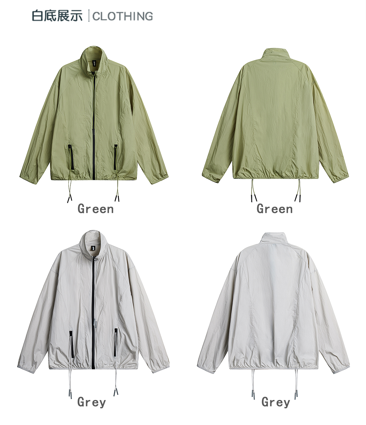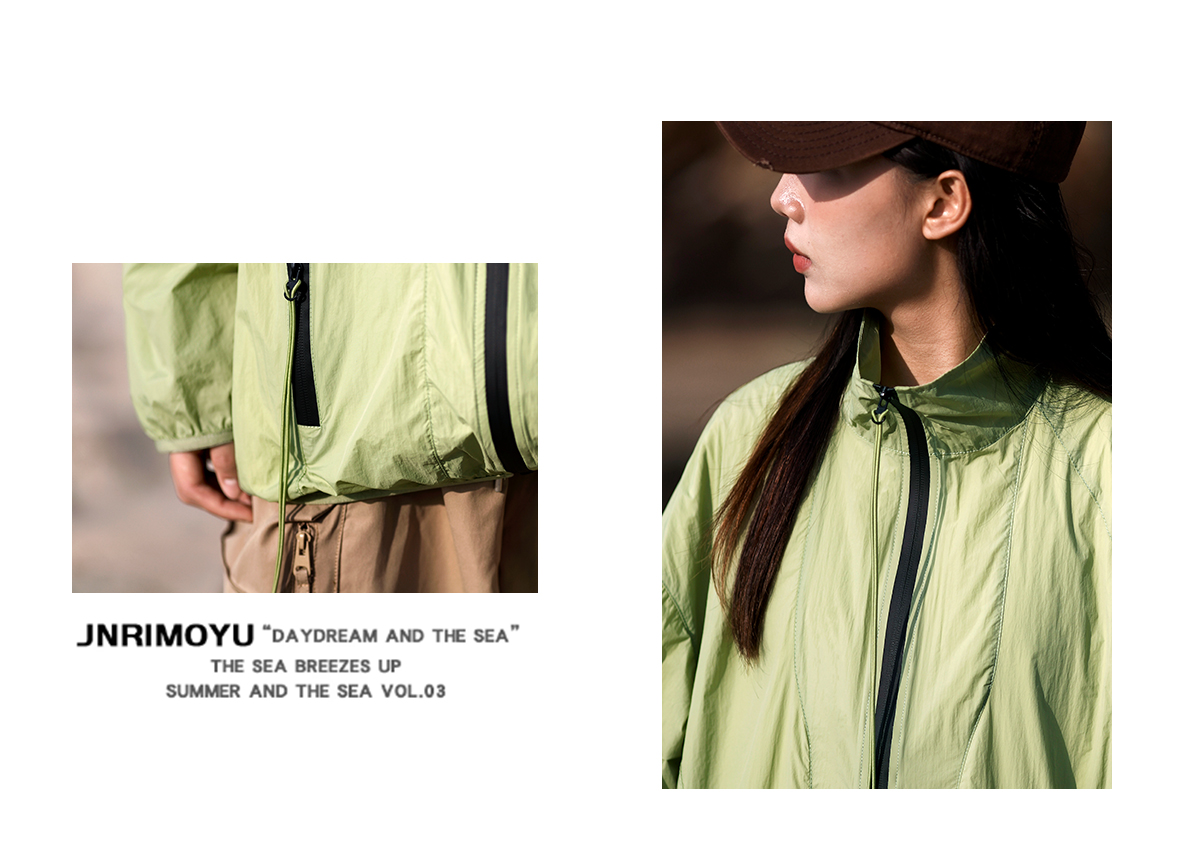 JNRIMOYU 日系夏季防曬服男款純色抗UVUPF+50拉鍊防曬服男