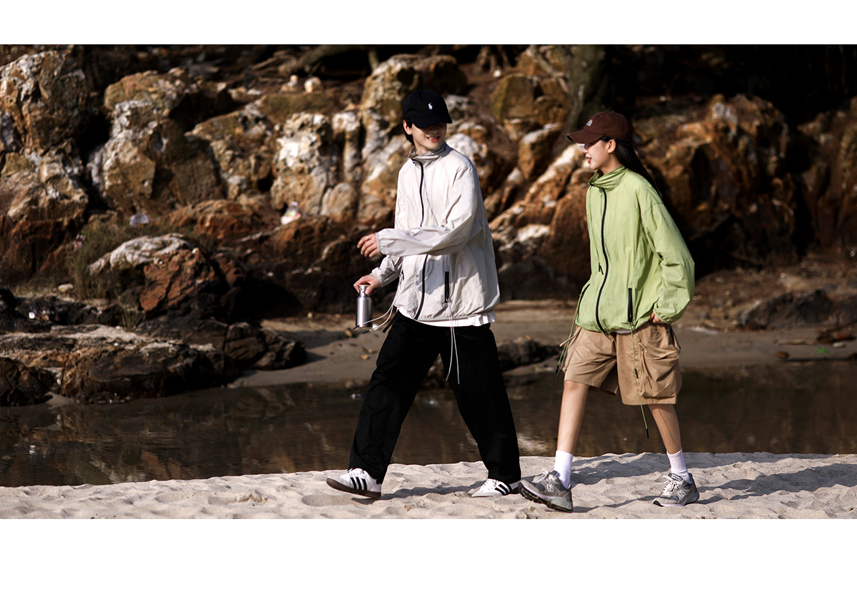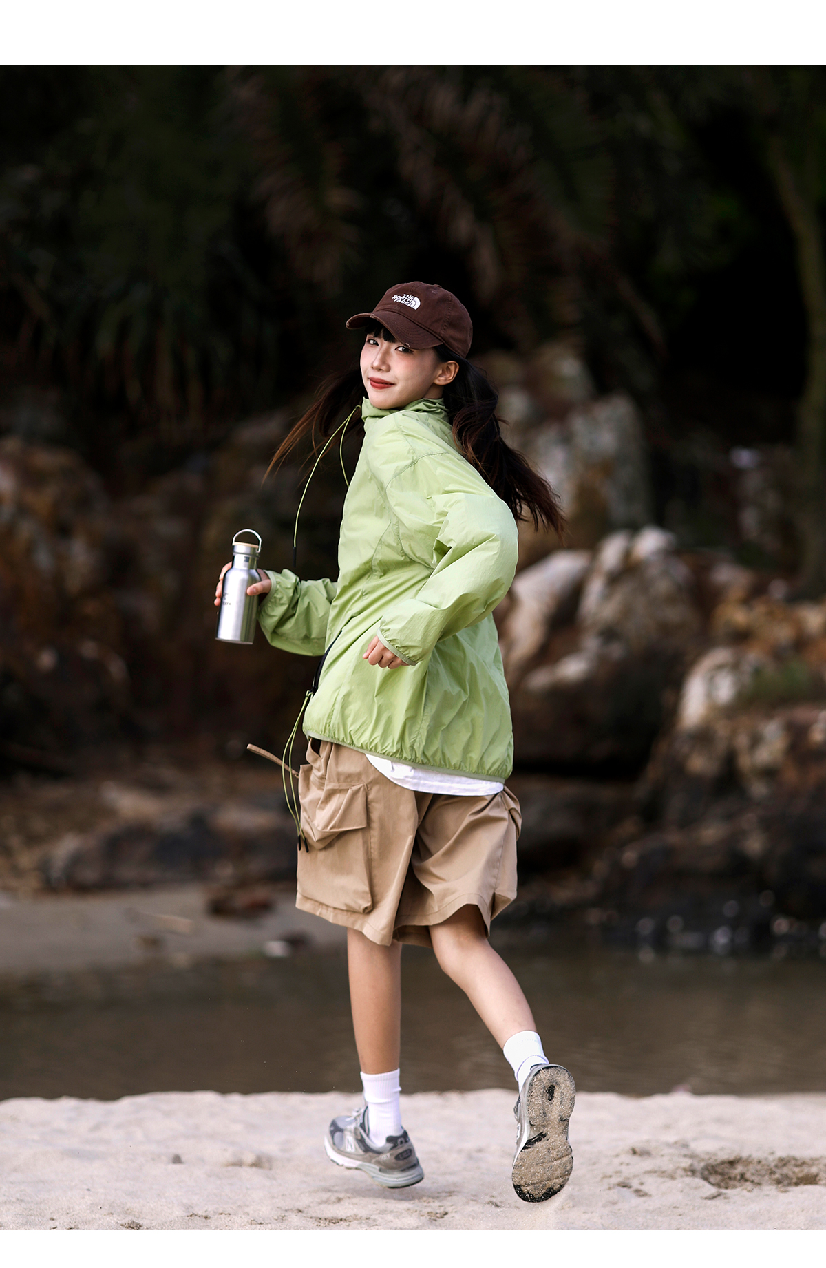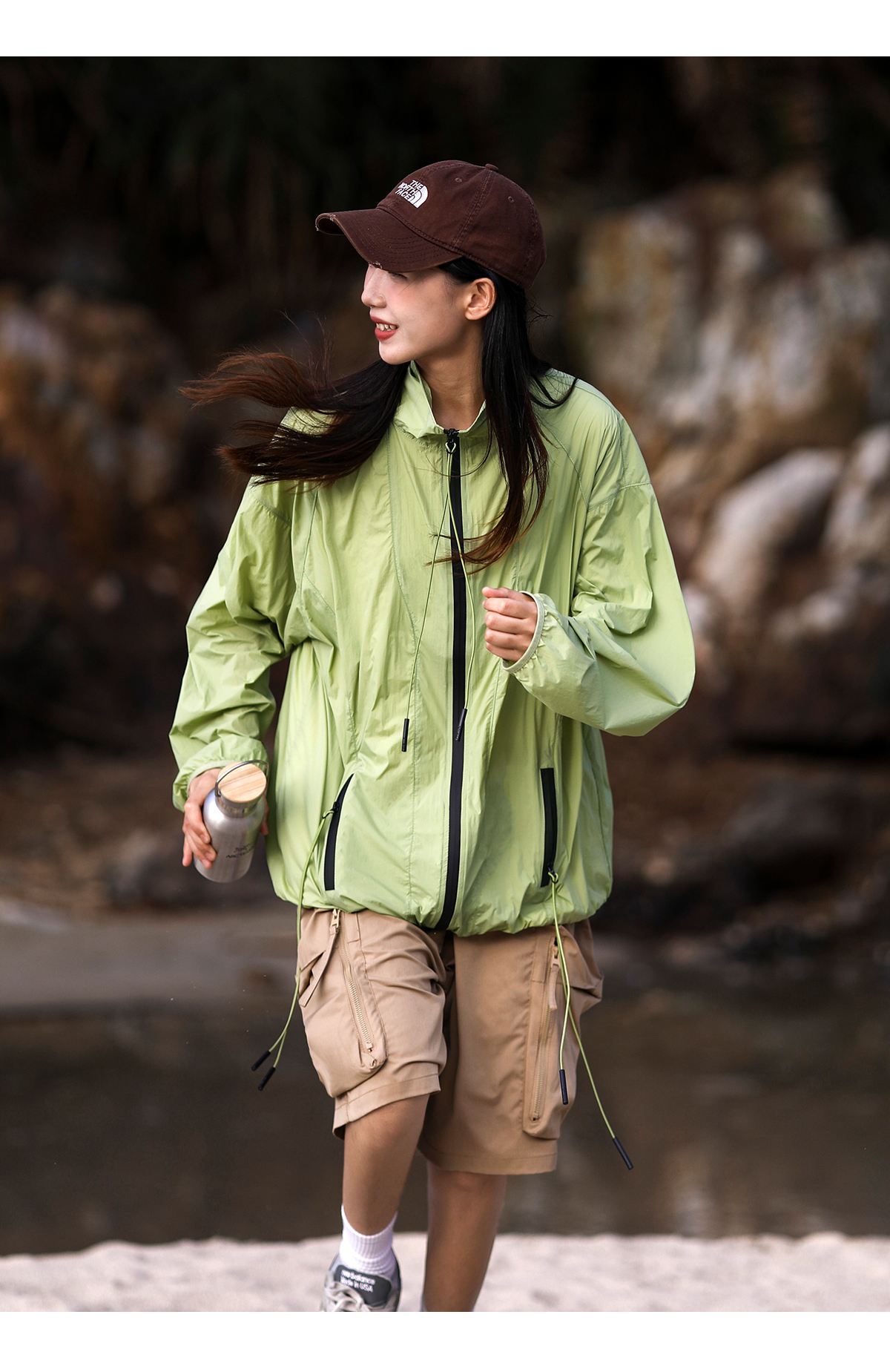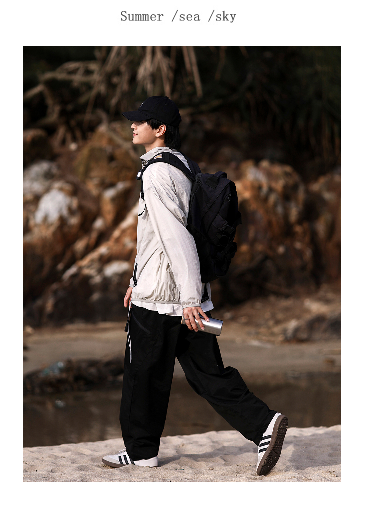 JNRIMOYU 日系夏季防曬服男款純色抗UVUPF+50拉鍊防曬服男