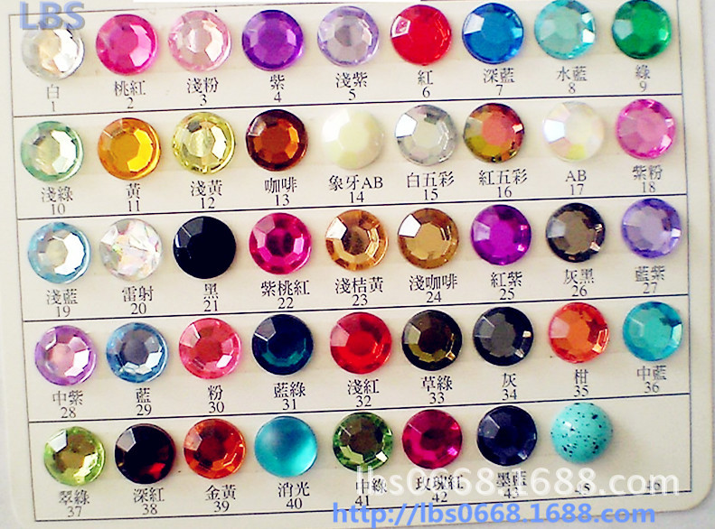 质量;我司是台湾压克力钻,(生产在台湾的)可以先向我司取样品,我司以提供的样品为标准供货。色彩请参考我司色彩卡!(电脑显示器与实物也许会有色差,请以实物为标准)
